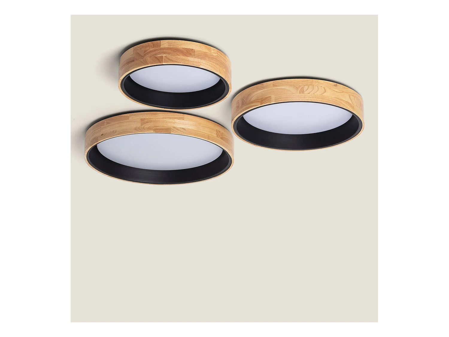 Plafoniera LED 18W Circolare Legno Ø320 mm CCT Selezionabile Semi-Dari Nero