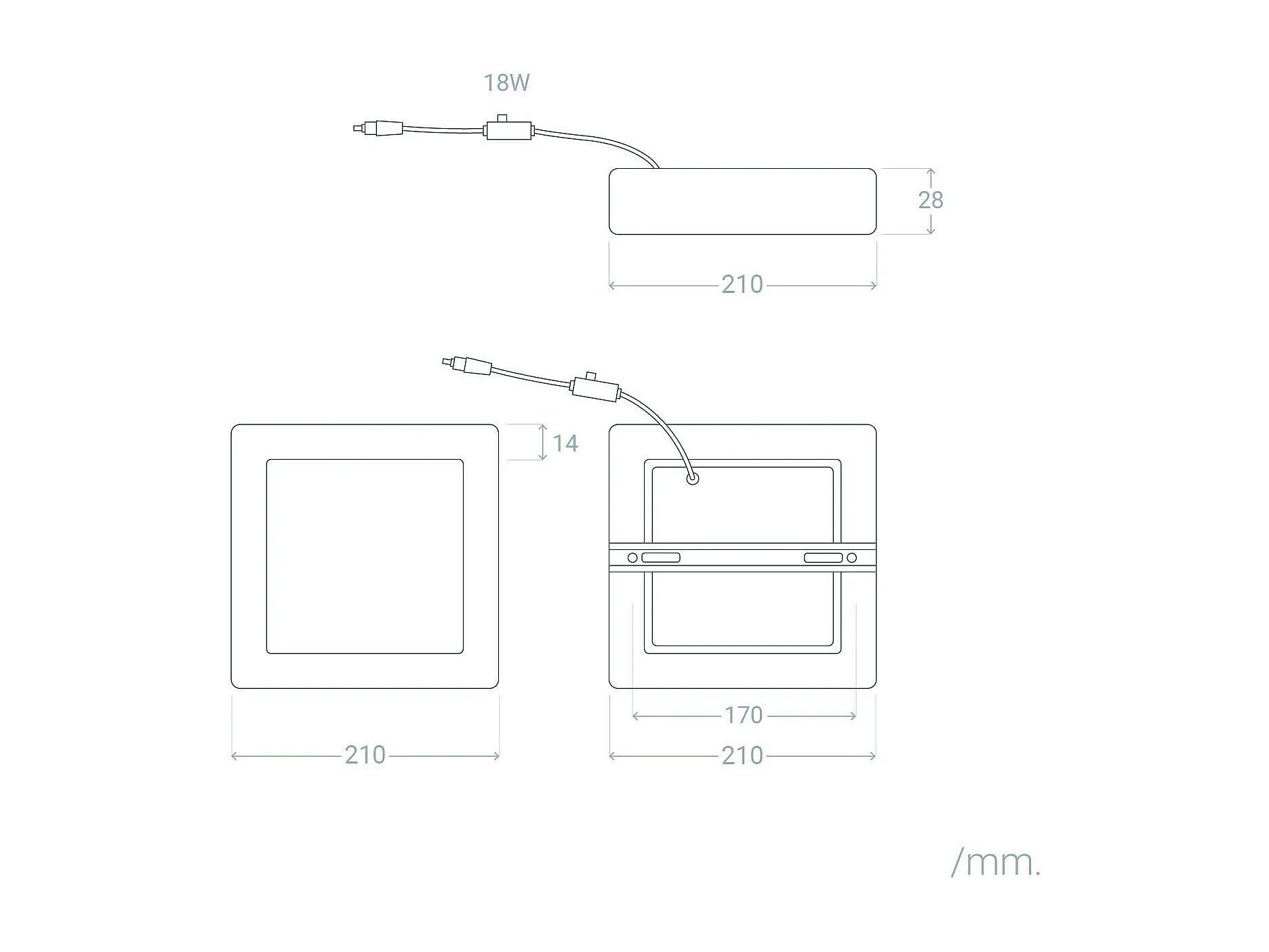 Plafoniera LED 18W Quadrata Aluminio 210x210 mm Slim CCT Selezionabile Galán SwitchDimm Nero