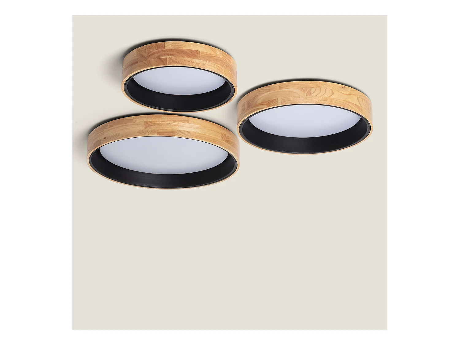 Plafoniera LED 20W Circolare Legno Ø470 mm CCT Selezionabile Dari Nero