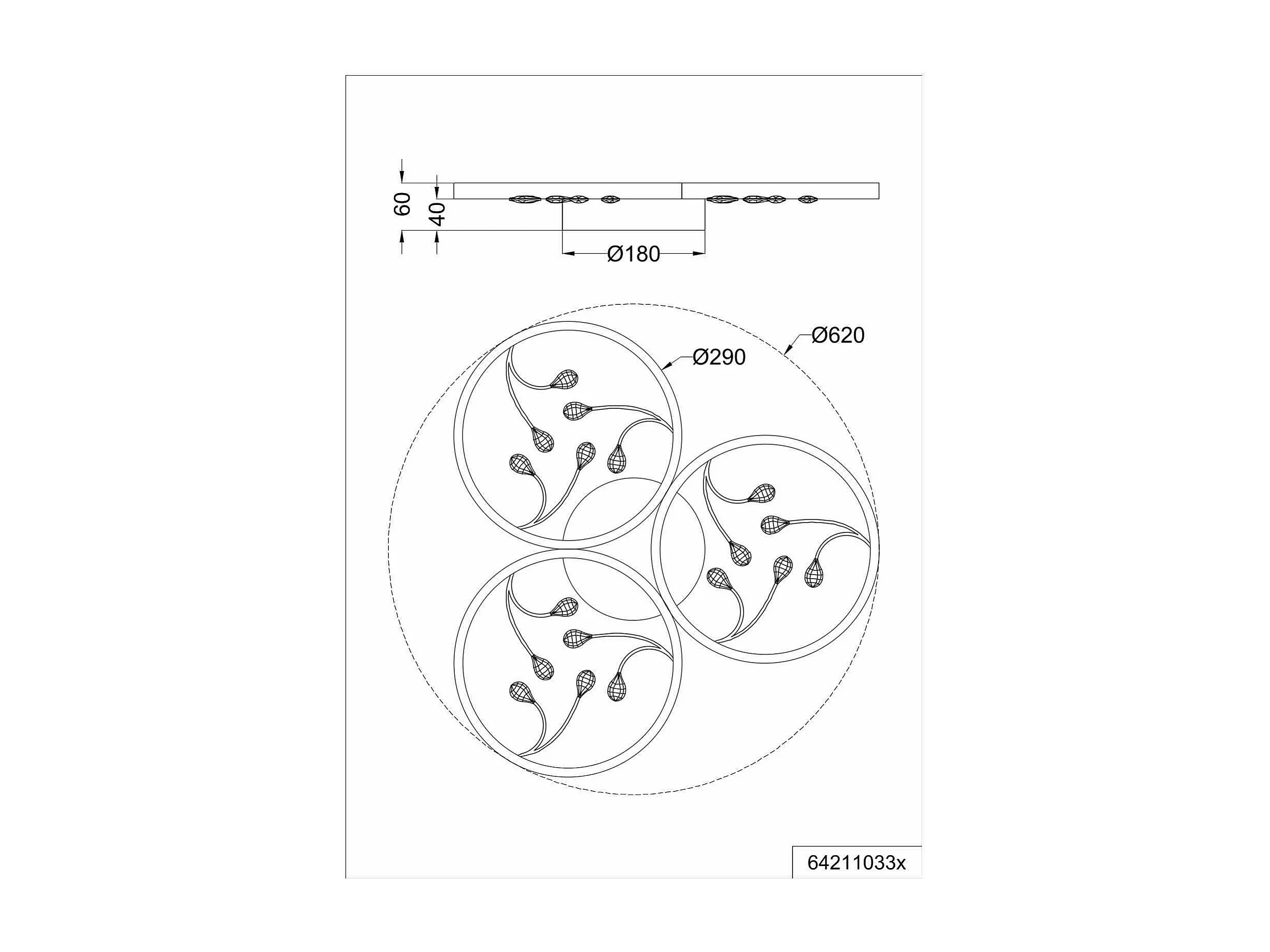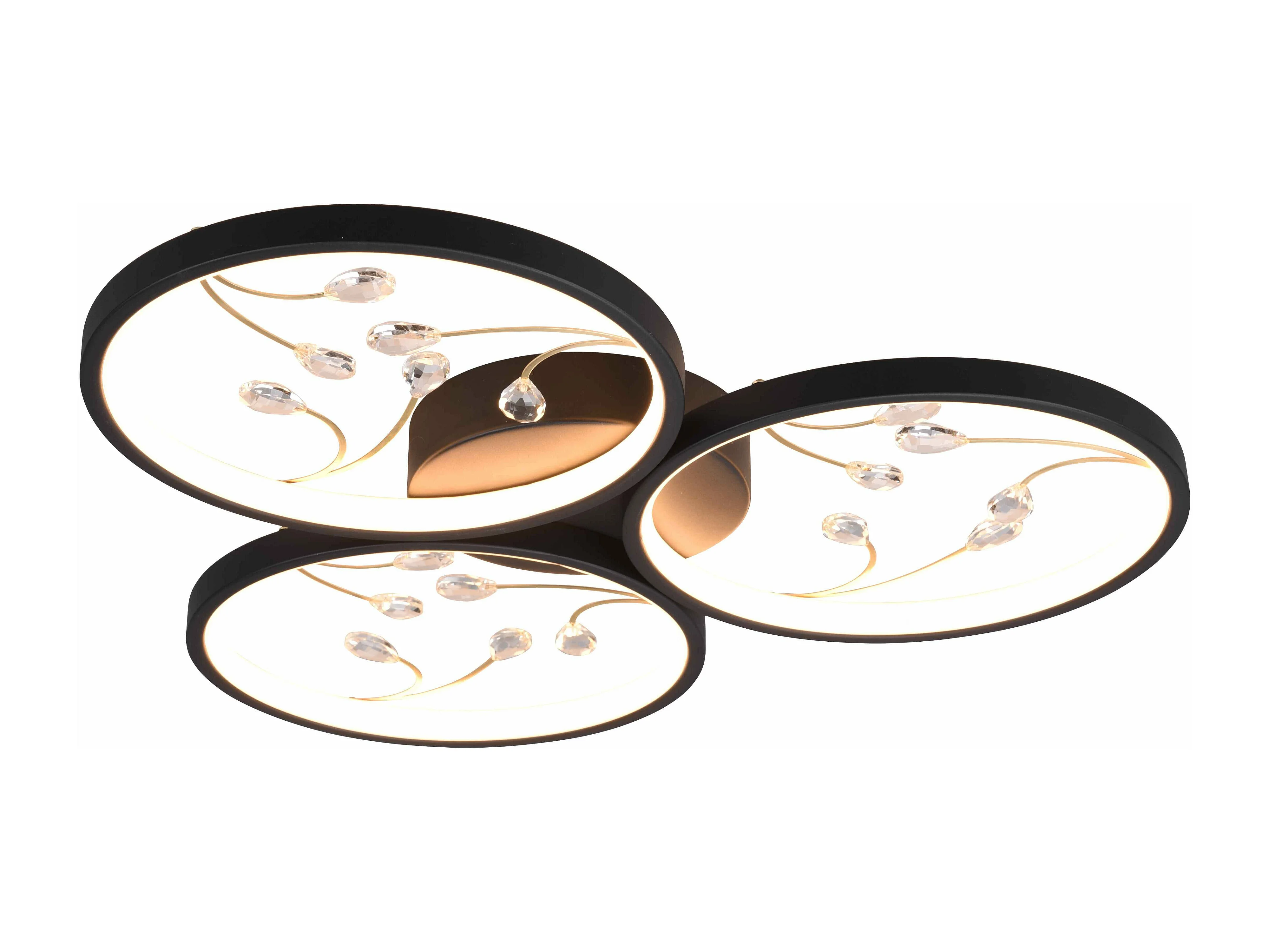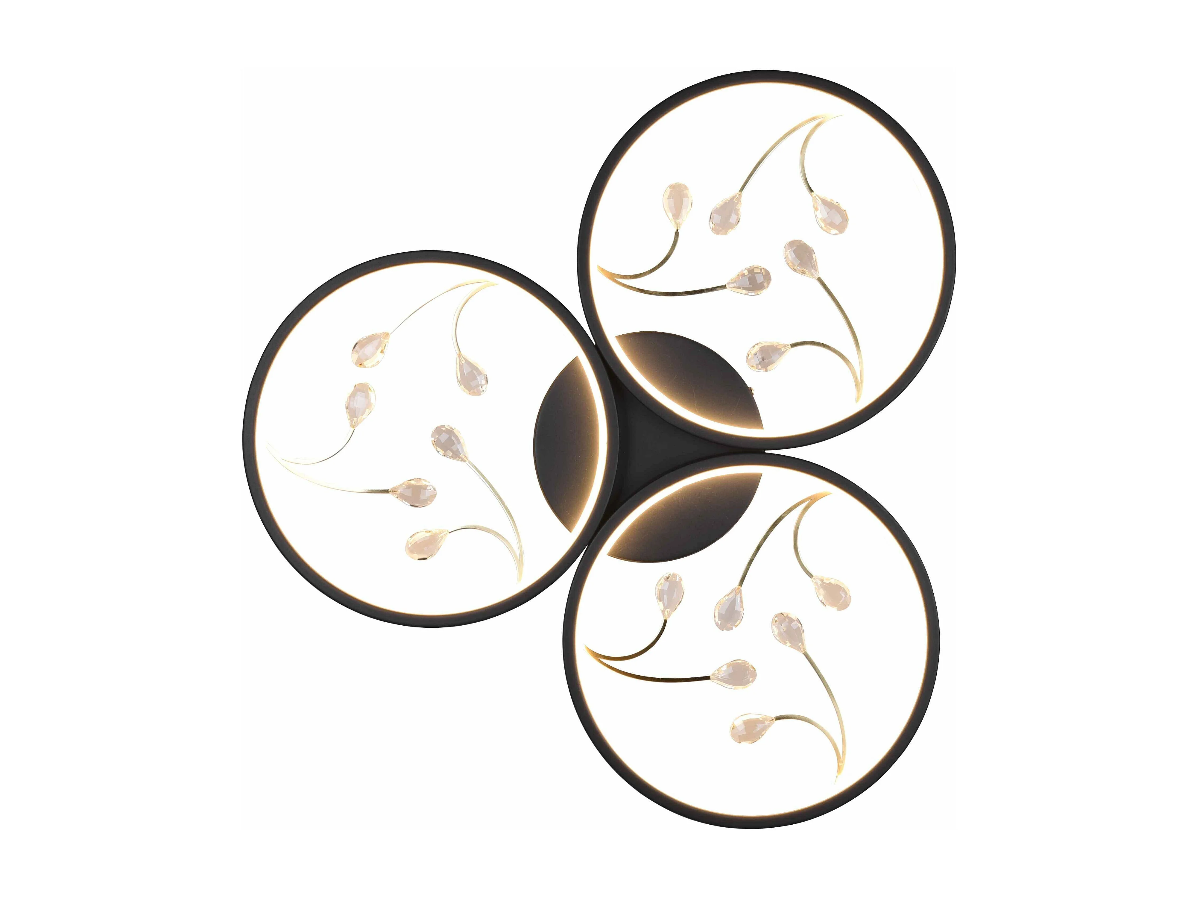 Plafoniera LED 3 cerchi con decori, matallo, nero, D 62 cm, Groovy