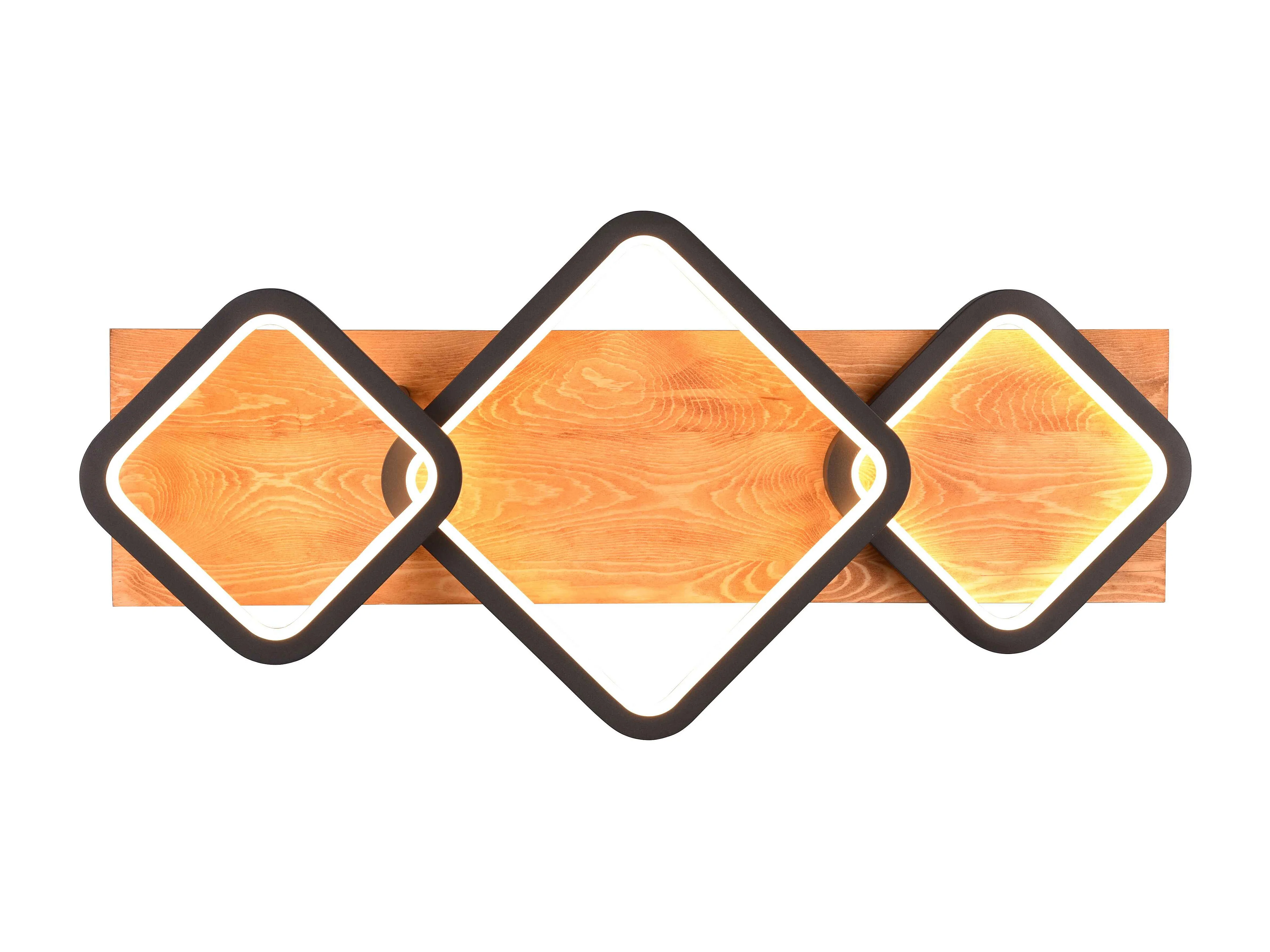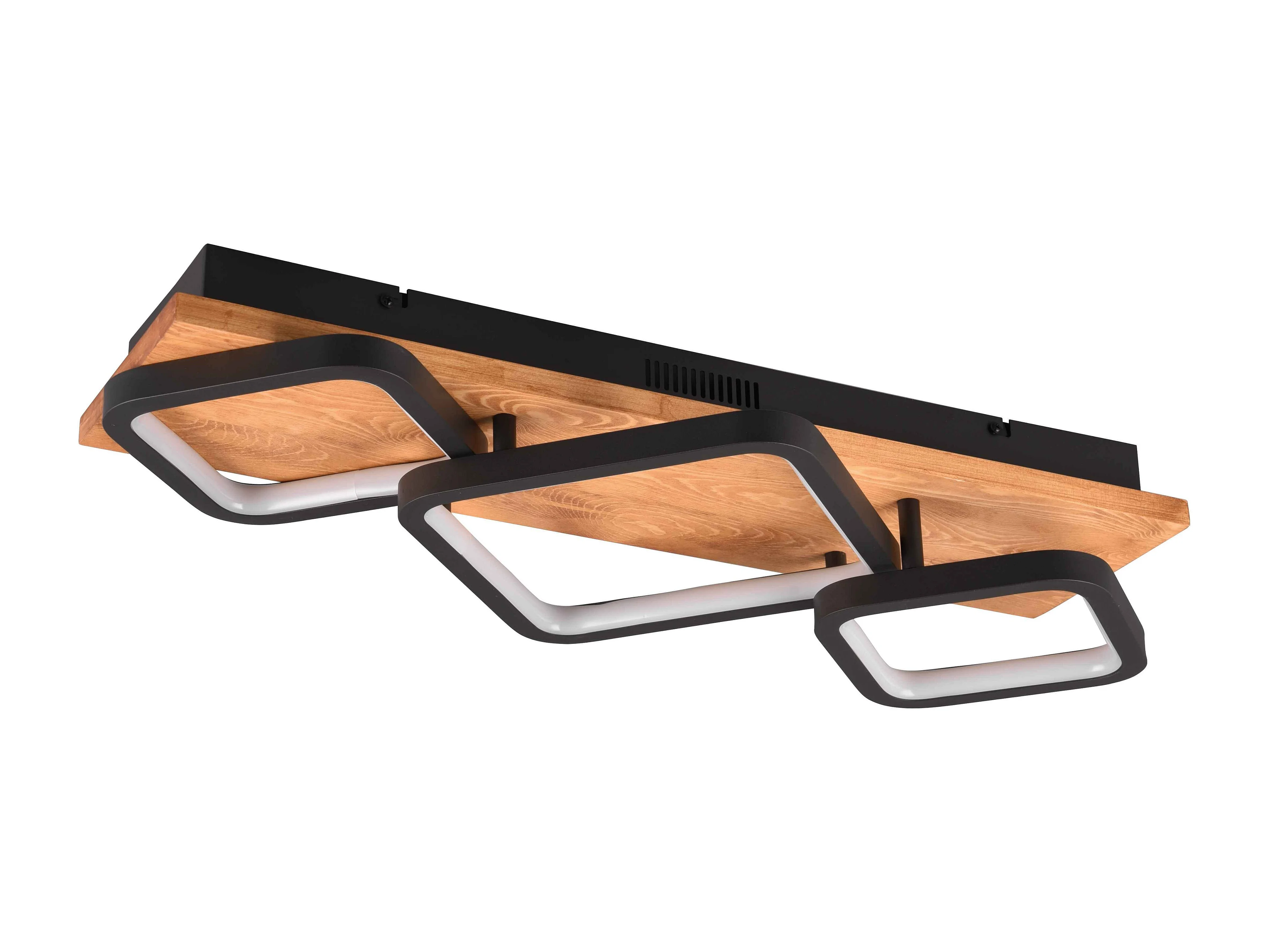 Plafoniera LED 3 quadrati, base in legno, nero, L 67 cm, Rama