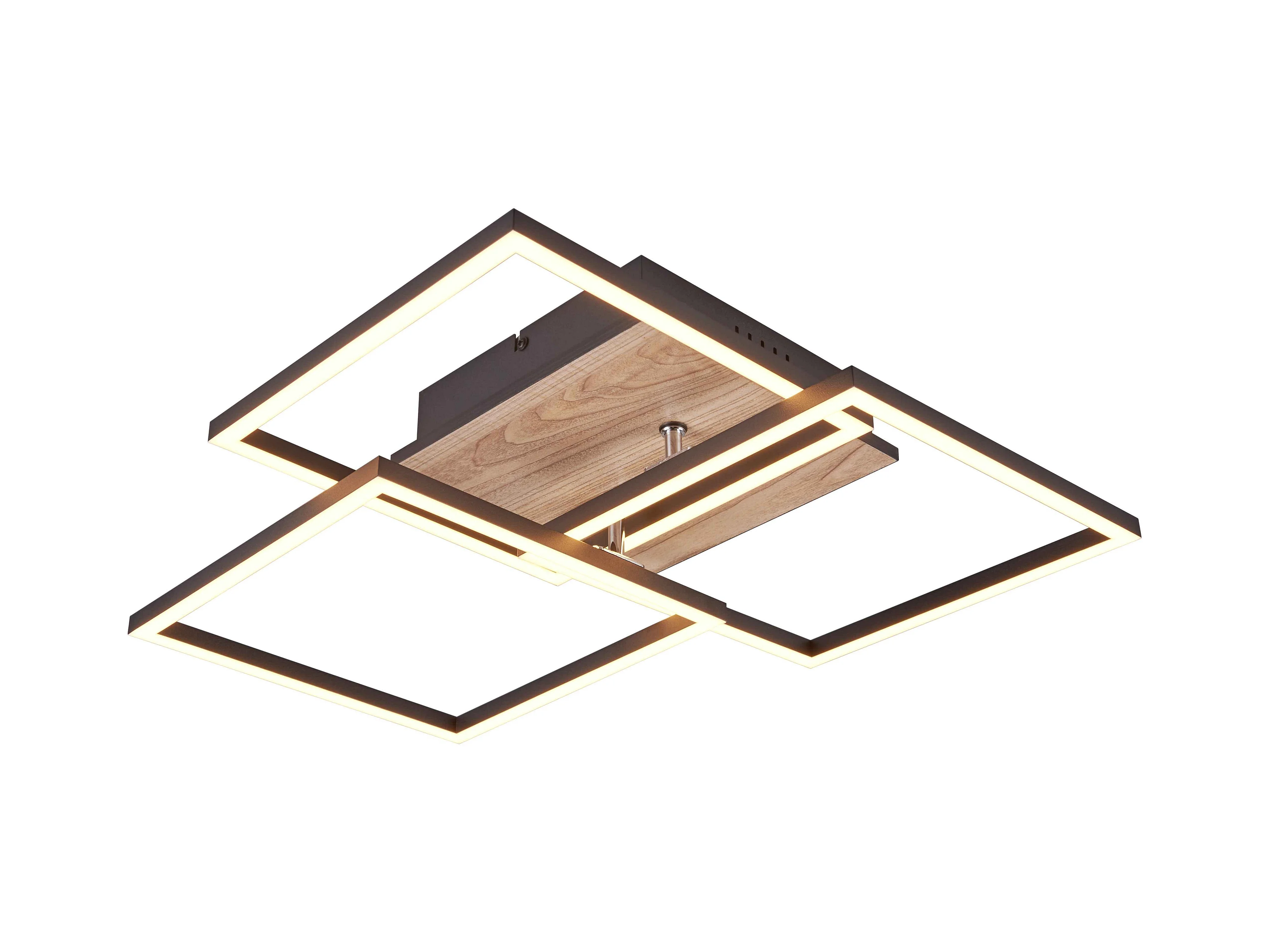 Plafoniera LED 3 quadrati, metallo, nero e legno, L 39 cm, Mobile