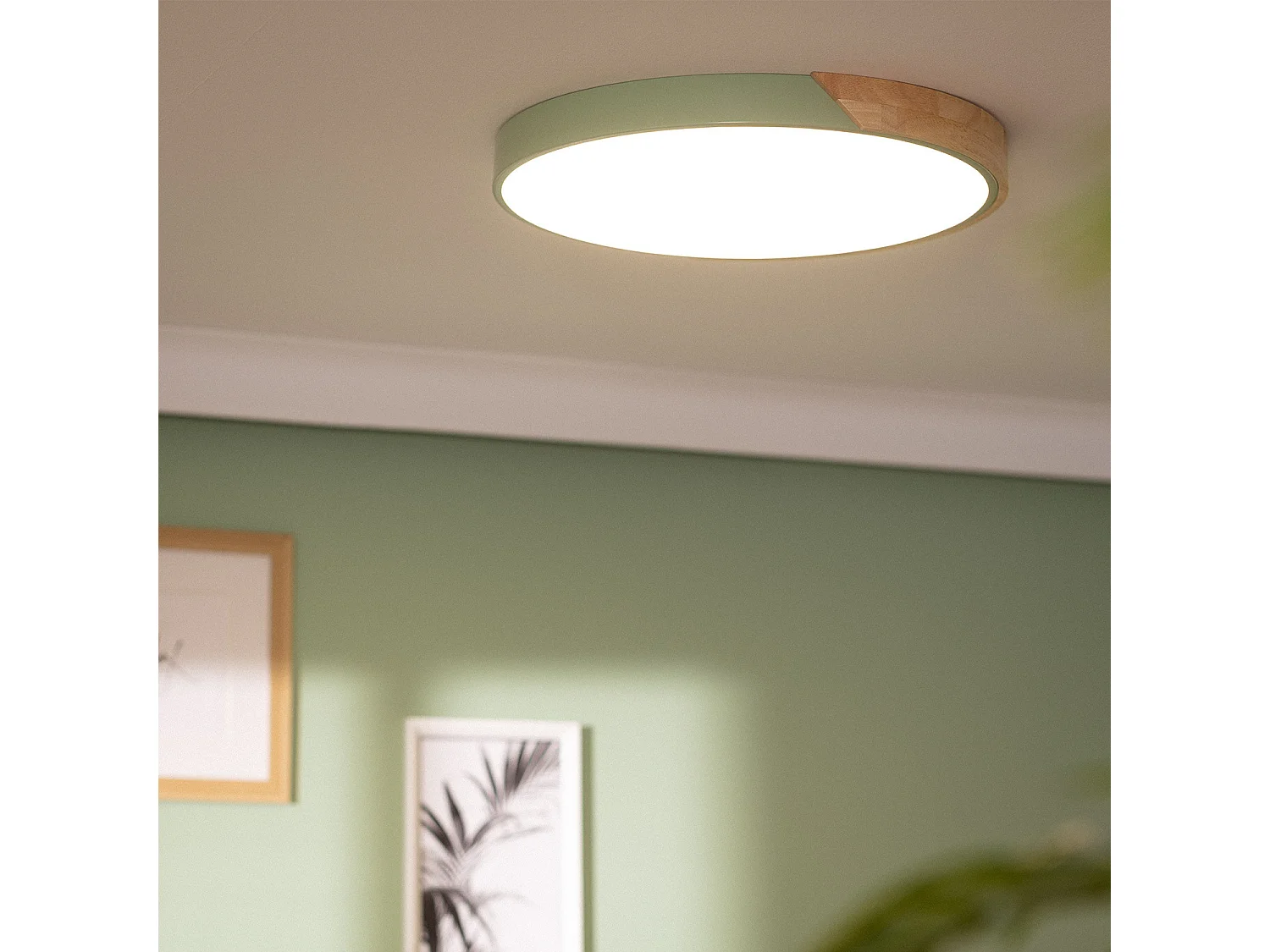 Plafoniera LED 36W Circolare Legno Ø500 mm CCT Selezionabile Semi-Dari Verde