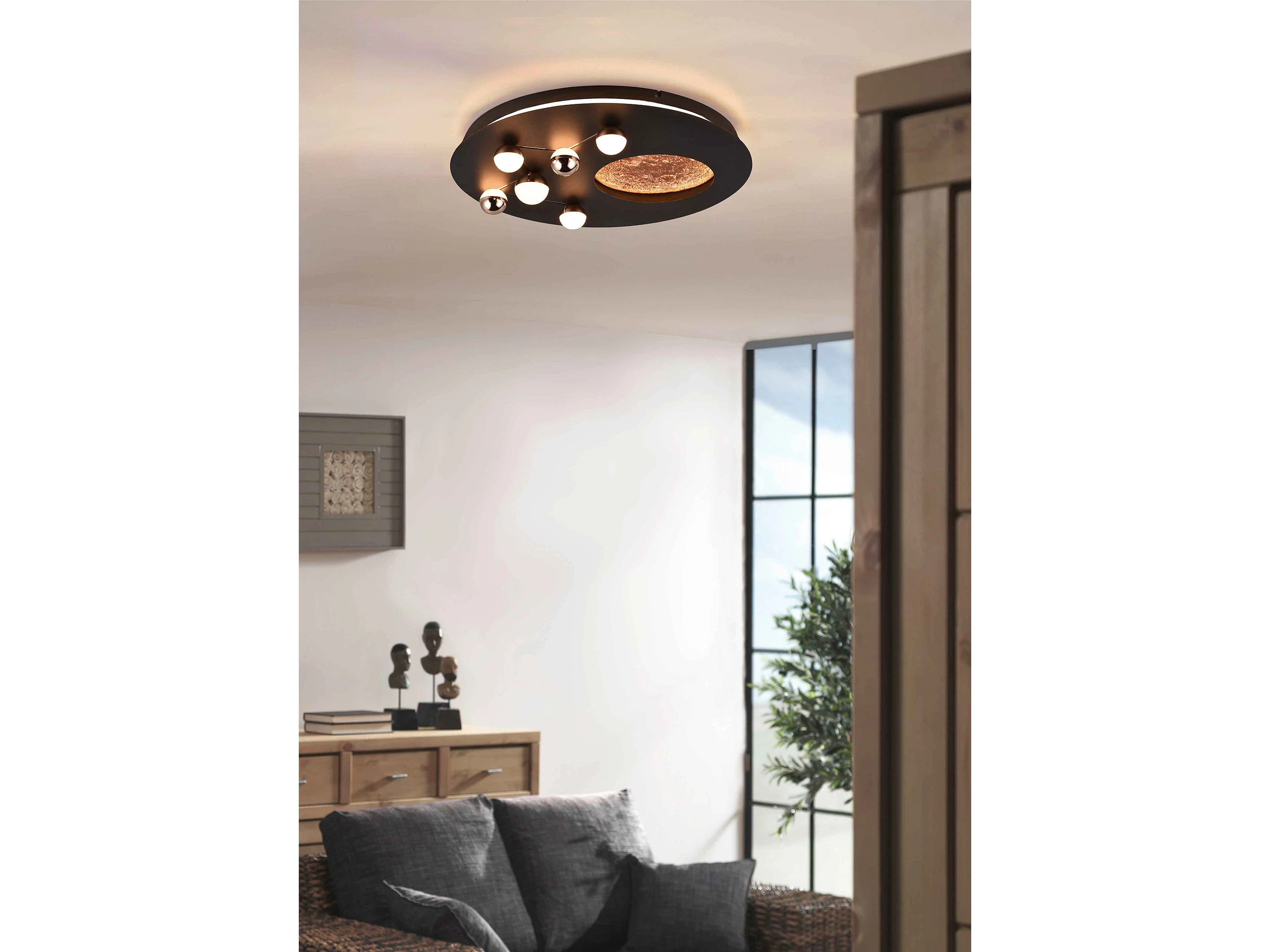 Plafoniera LED effetto lunare, metallo, nero e caffè, D 50 cm, Zodiac