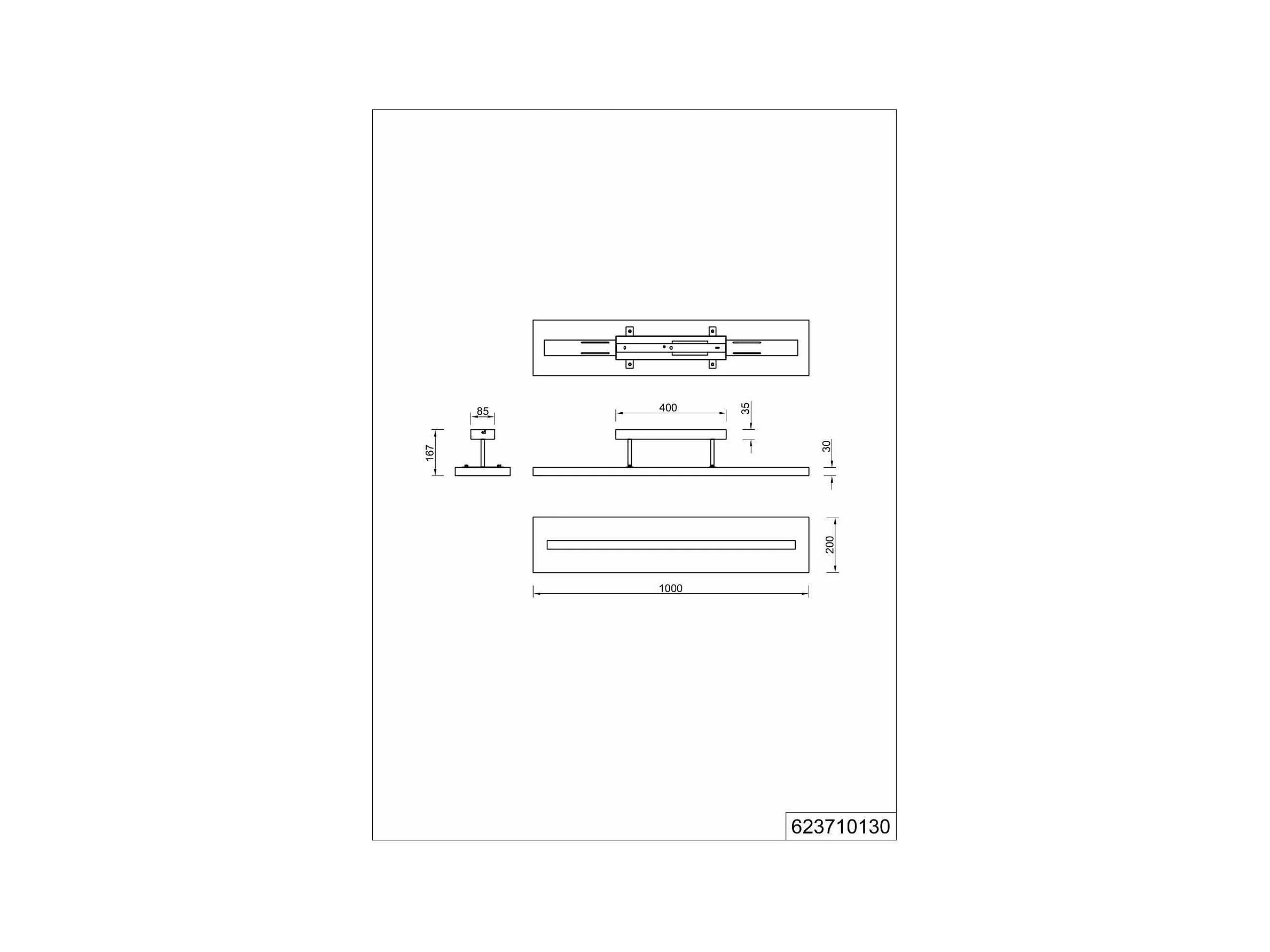 Barra 3 faretti, legno e vetri bianchi, L 45 cm, Assam