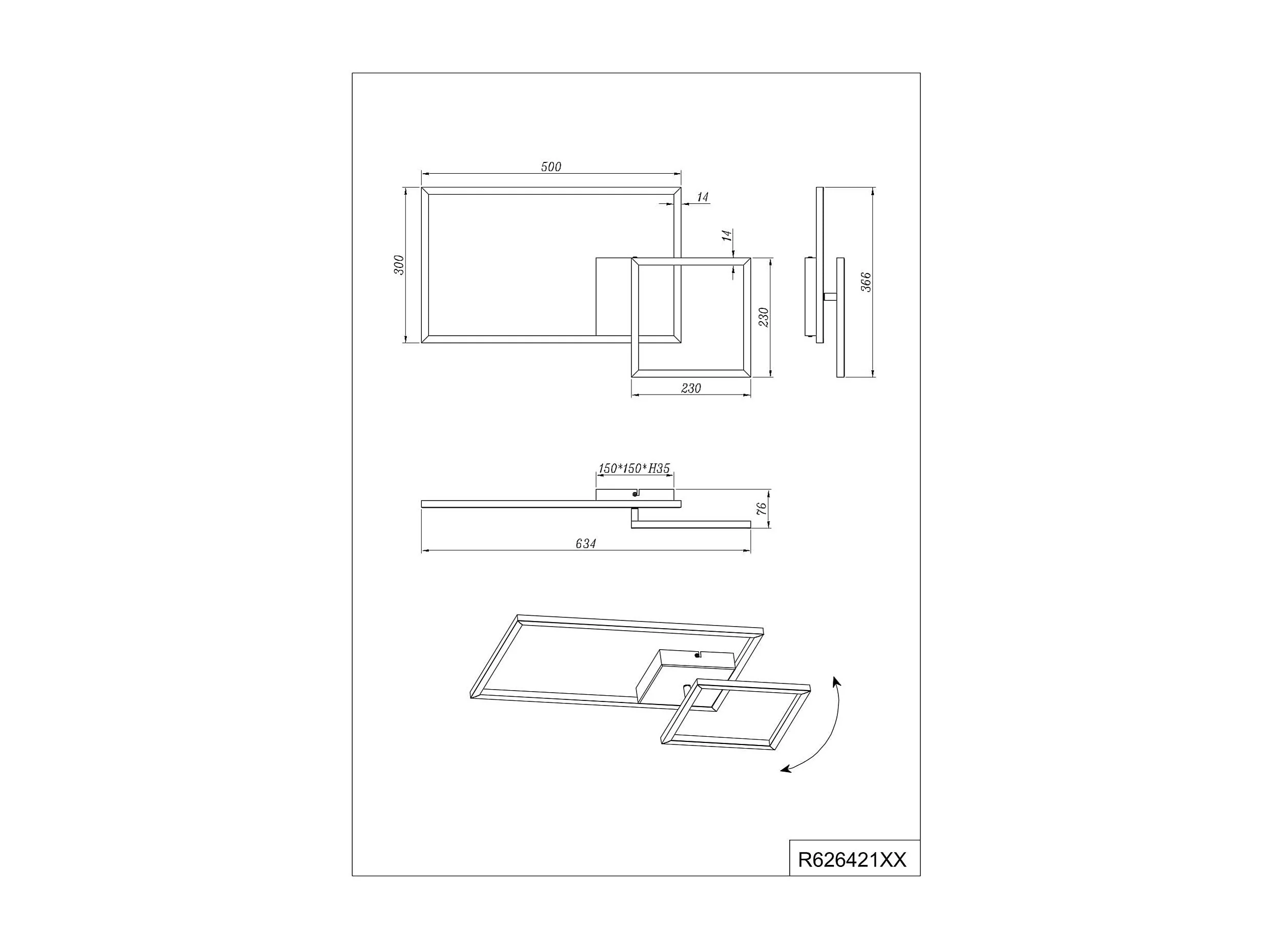 Plafoniera LED doppio quadrato, metallo, nero, L 57 cm, Venida