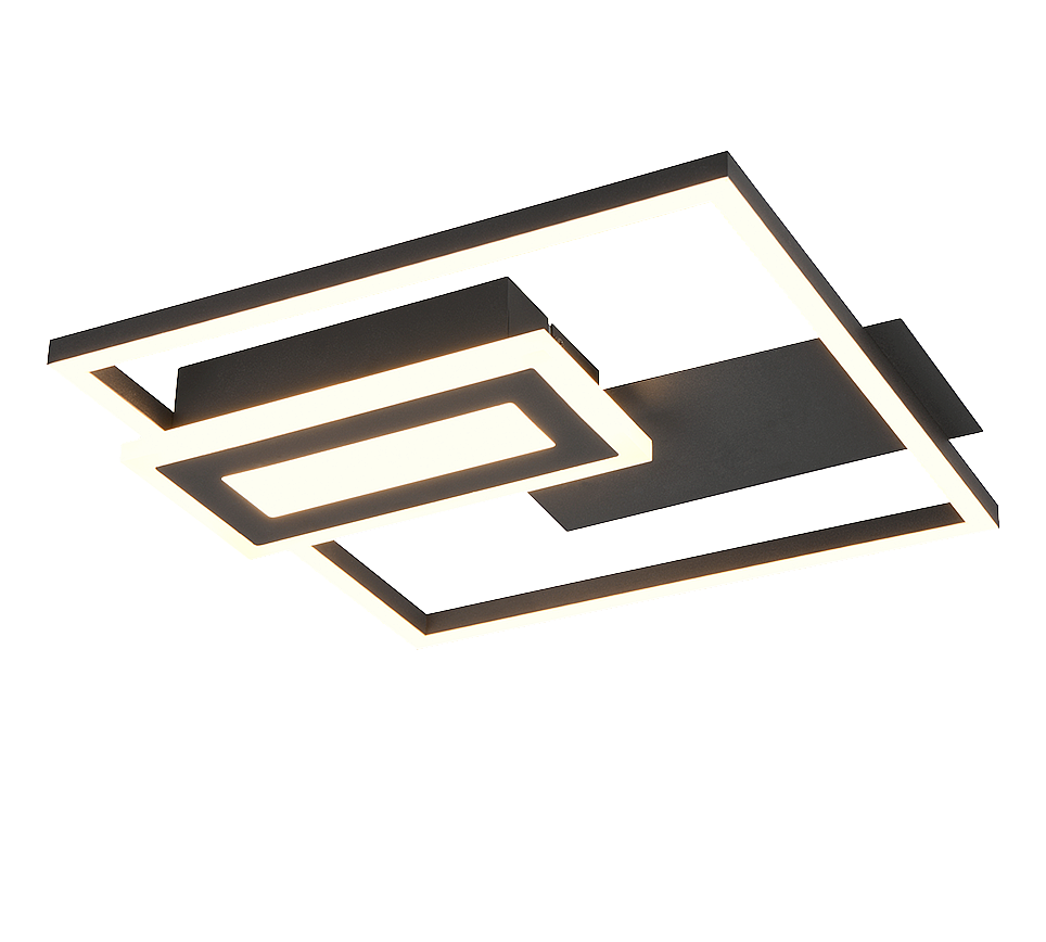 Plafoniera LED doppio quadrato, metallo, nero, L 57 cm, Venida
