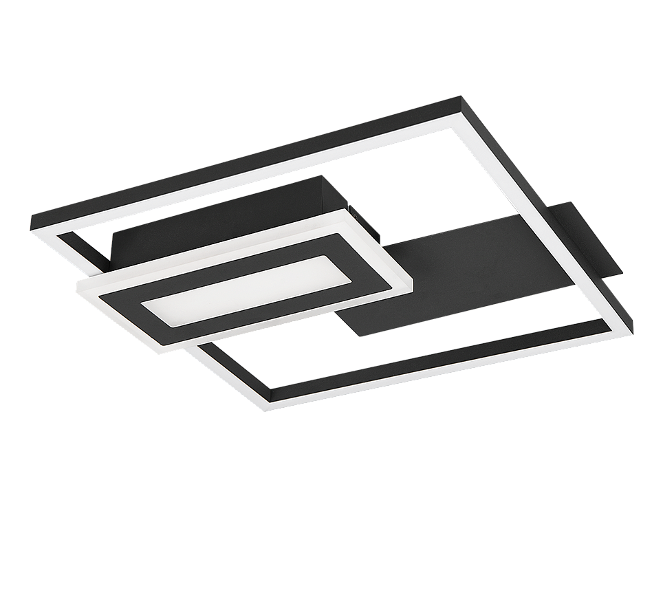 Plafoniera LED, metallo, nero opaco, 46x46x6 cm, Fontana