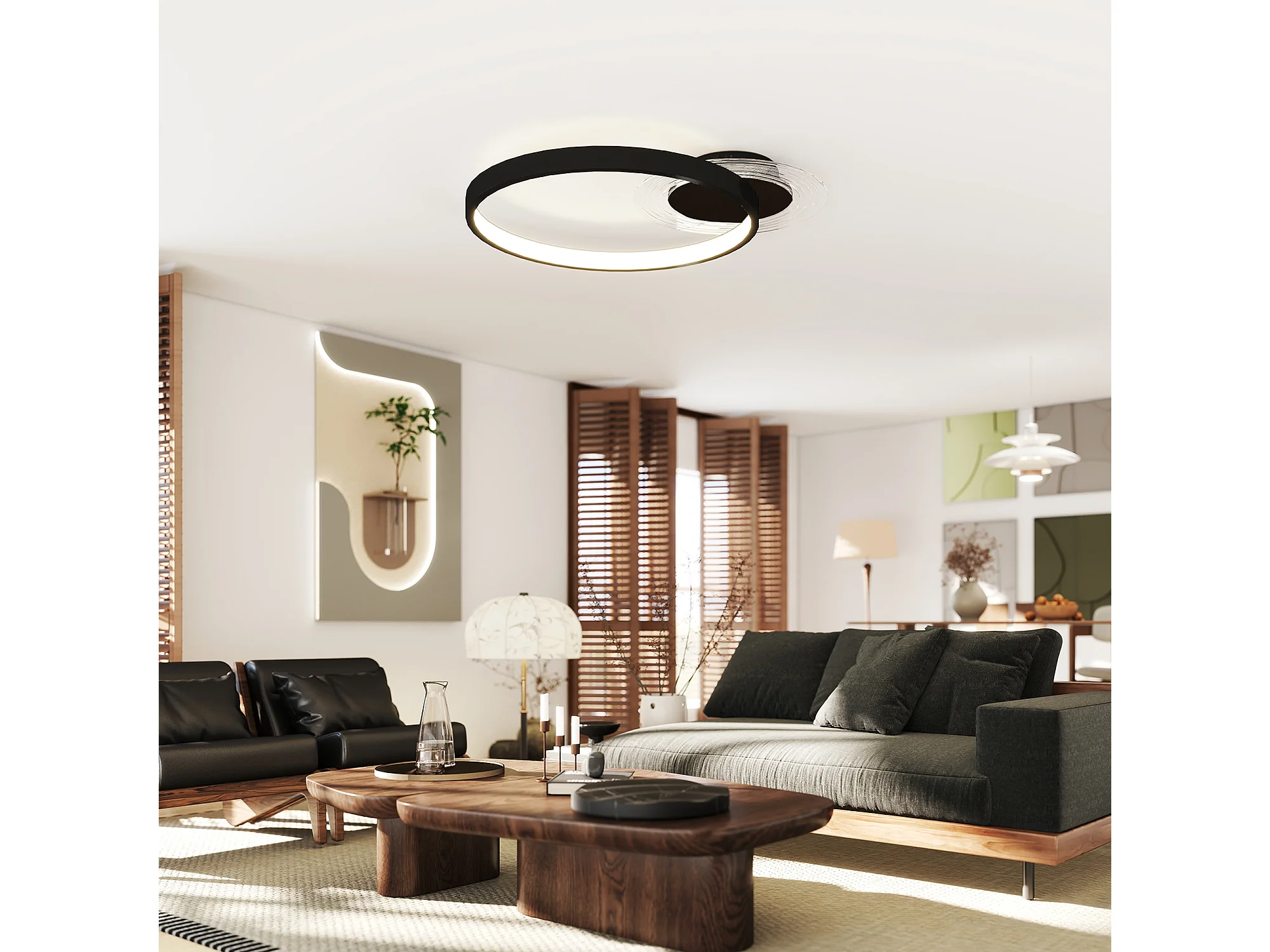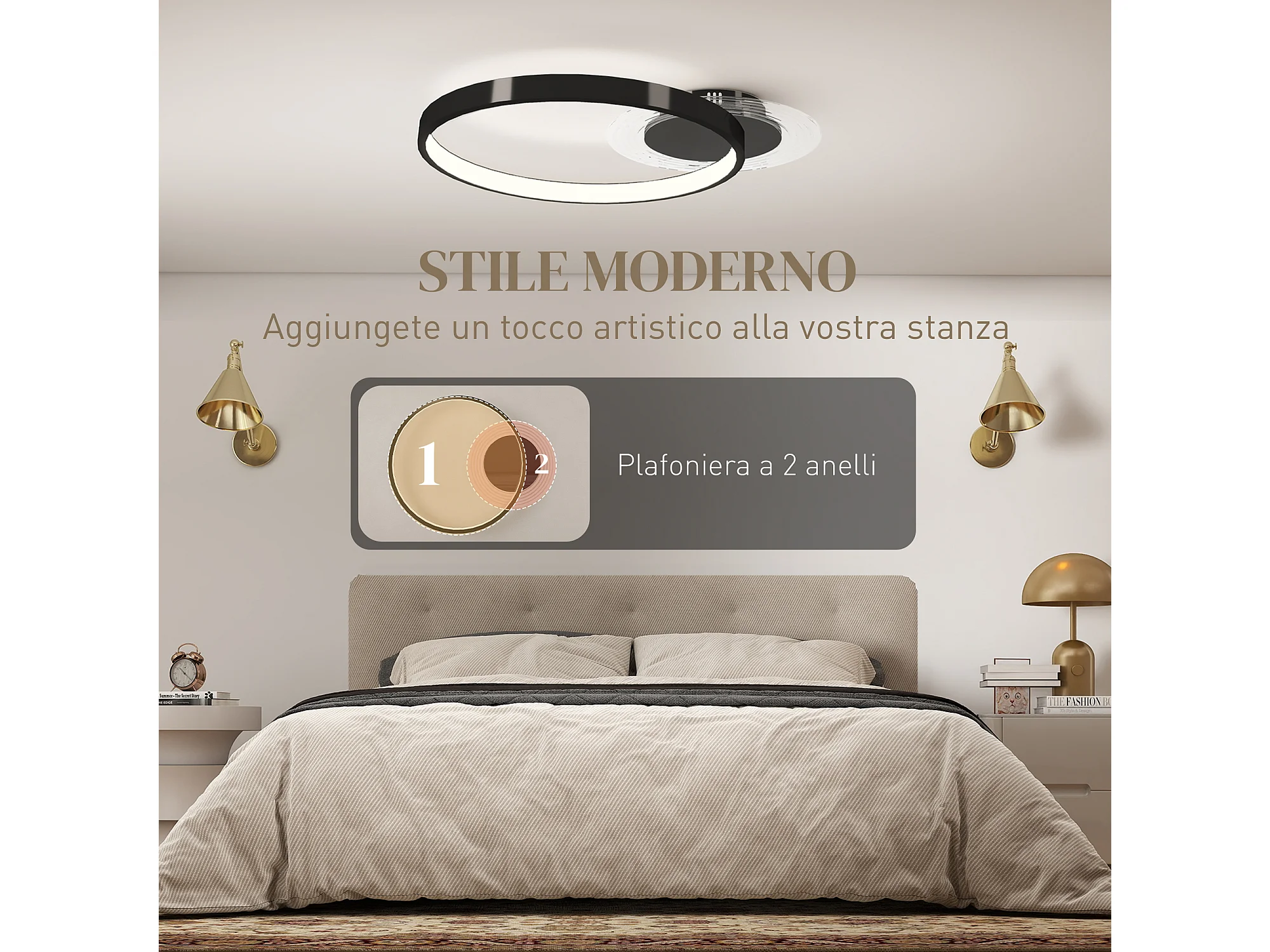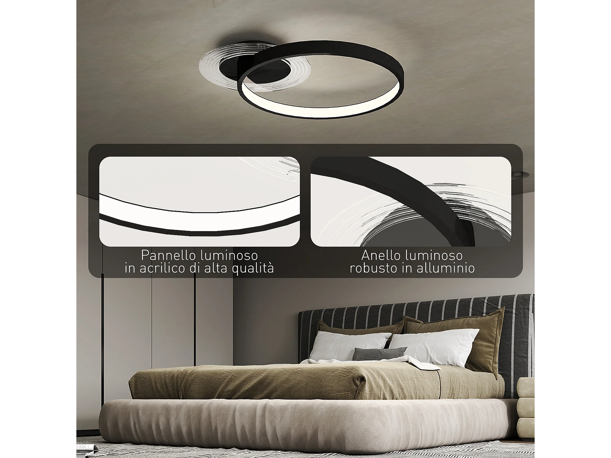 Plafoniera led moderna a 2 anelli con luminosità regolabile nero