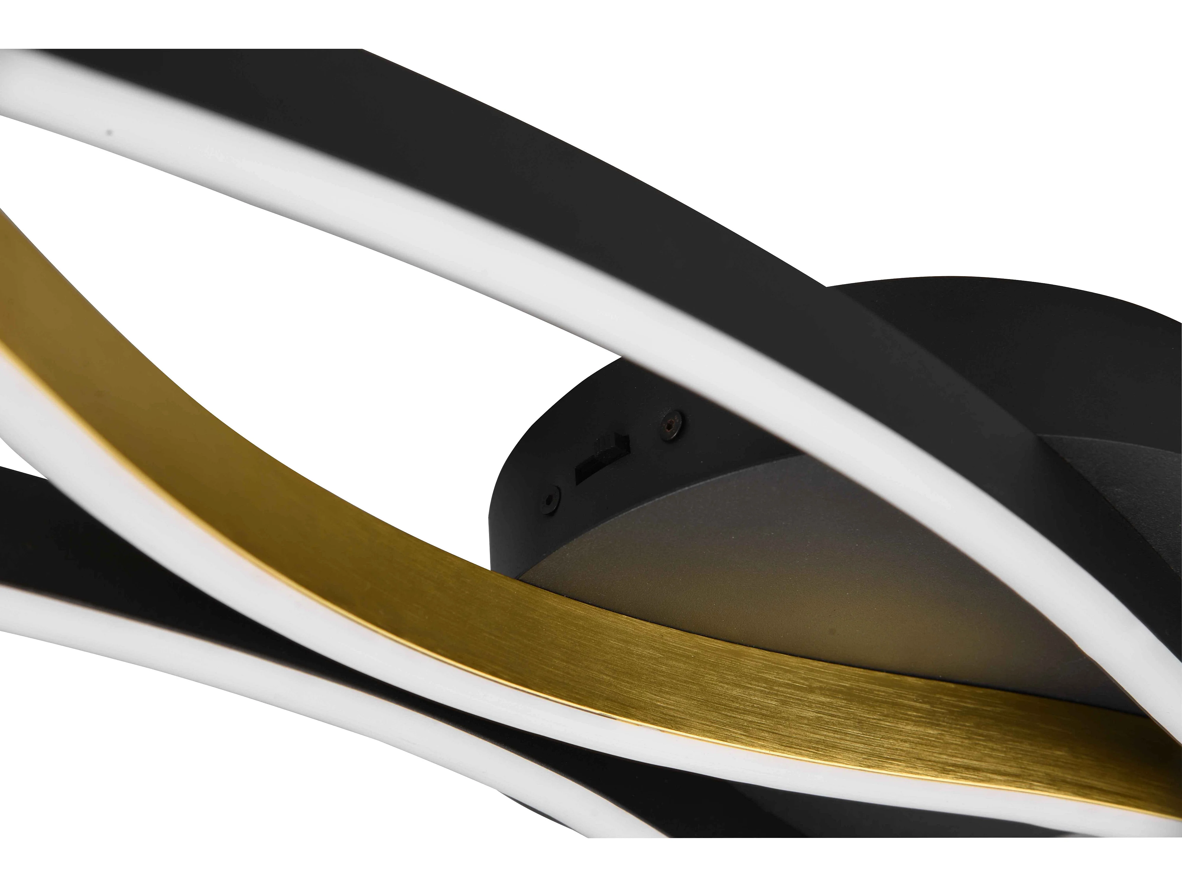 Plafoniera LED ondulata, metallo, ottone e nero, L 108 cm, Blaze