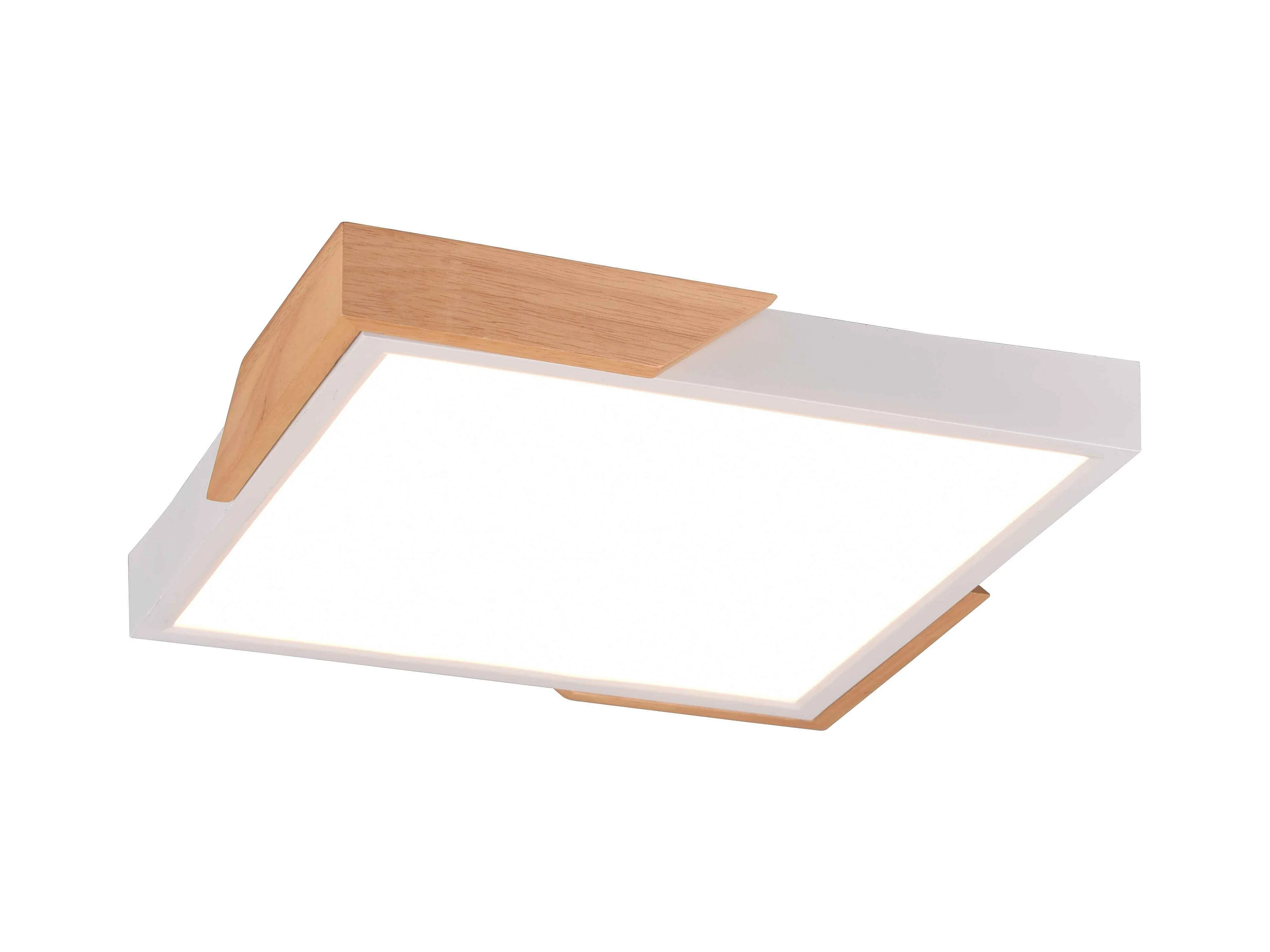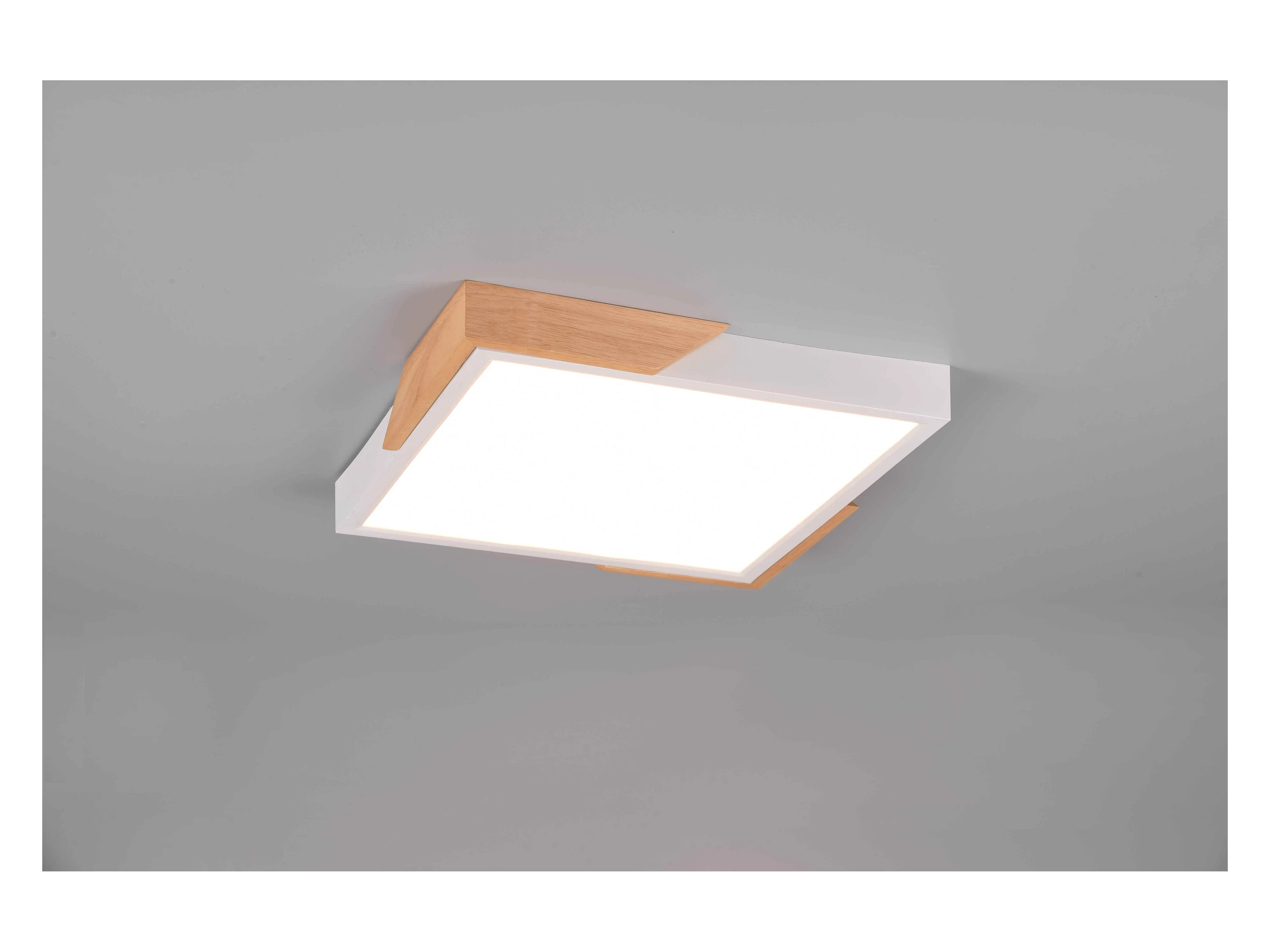 Plafoniera LED quadrata, plastica e legno, bianco, L 31 cm, Meta