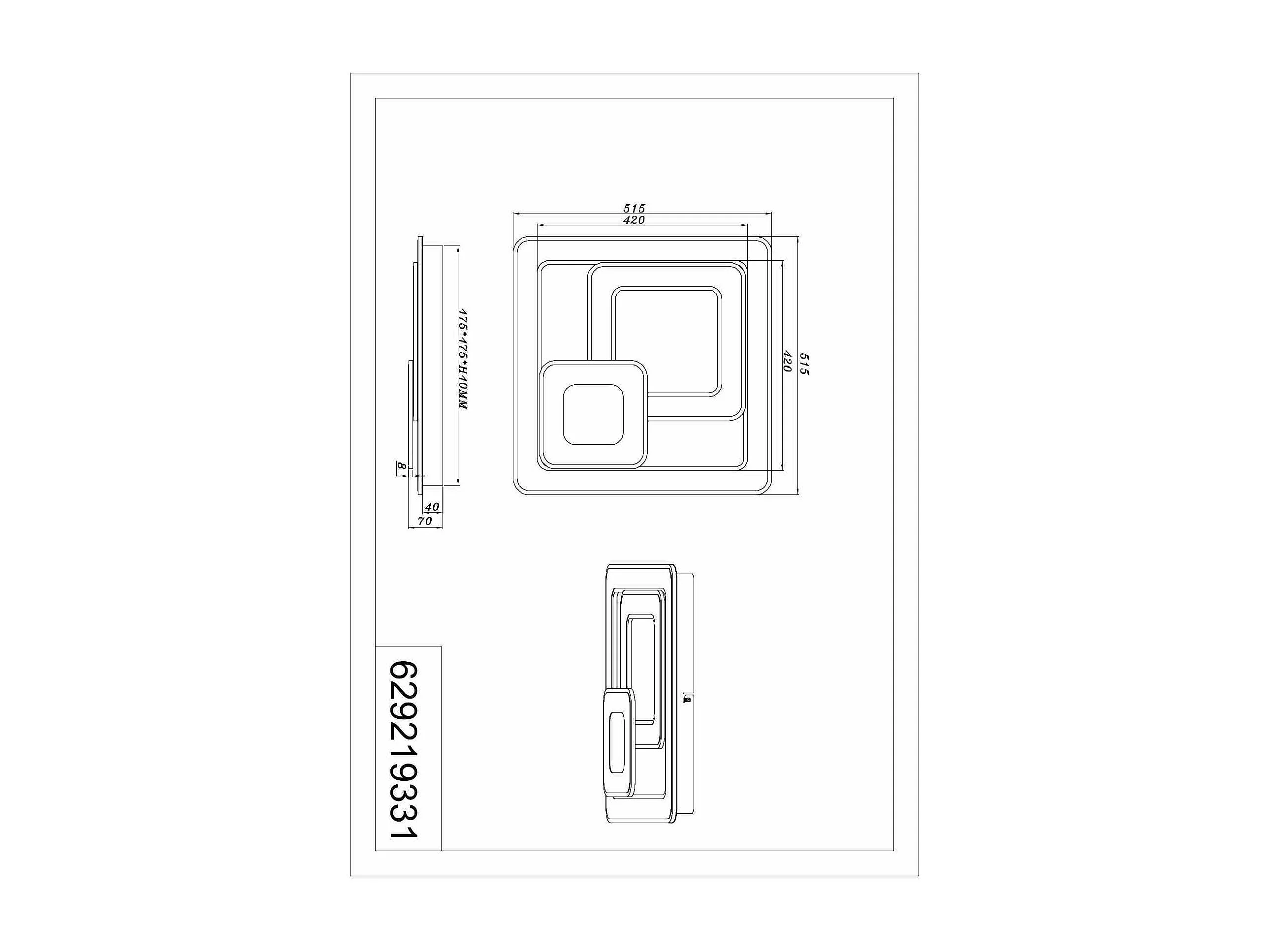 Plafoniera LED 3 quadrati, metallo, bianco, L 39 cm, Mobile