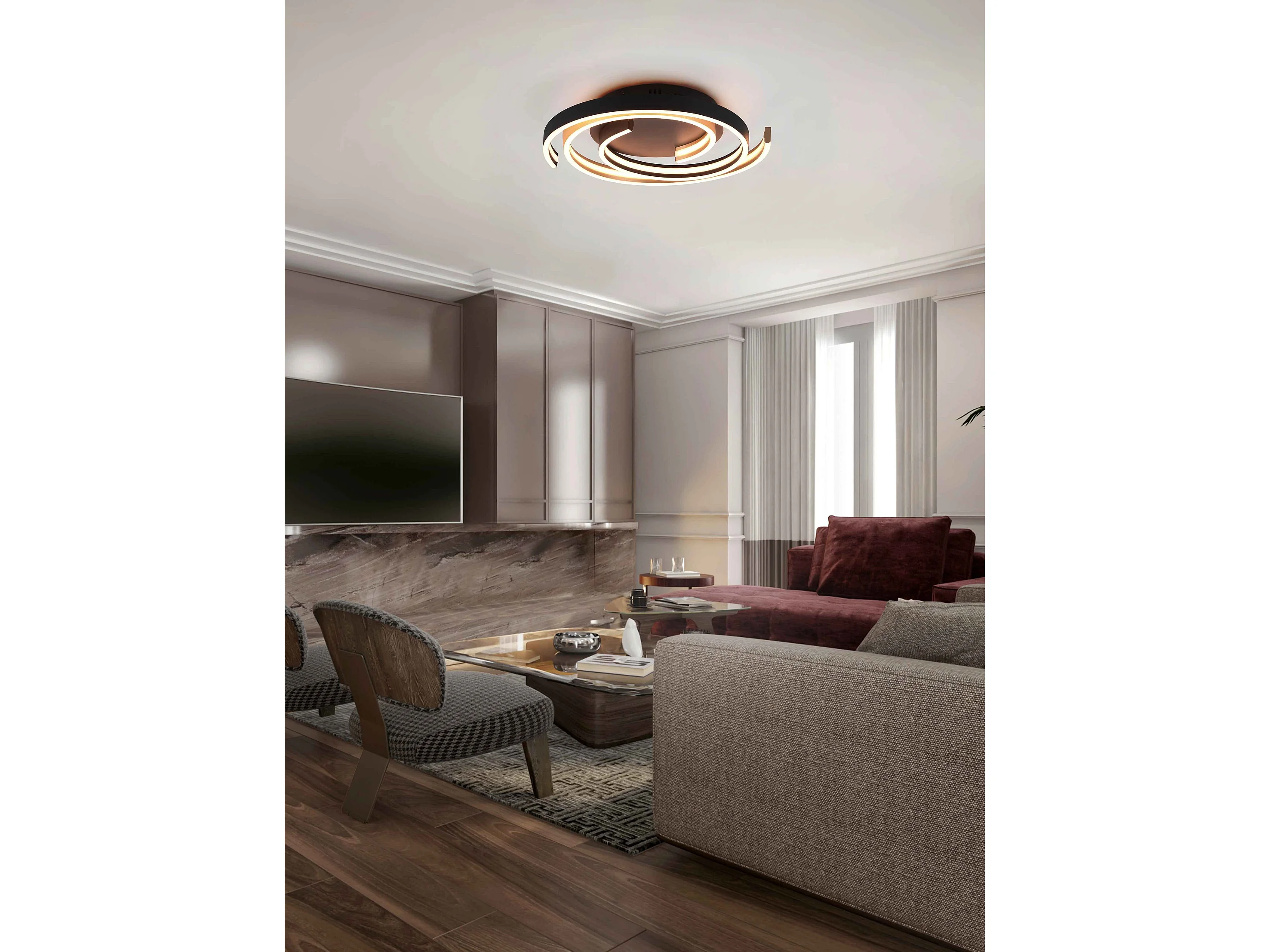 Plafoniera LED effetto lunare, metallo, nero e caffè, D 50 cm, Zodiac