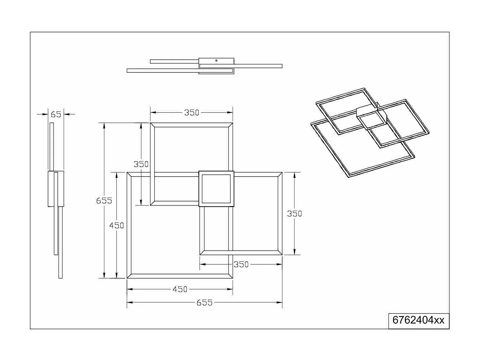 Plafoniera LED triplo quadrato, metallo, bianco, 65x65 cm, Hydra