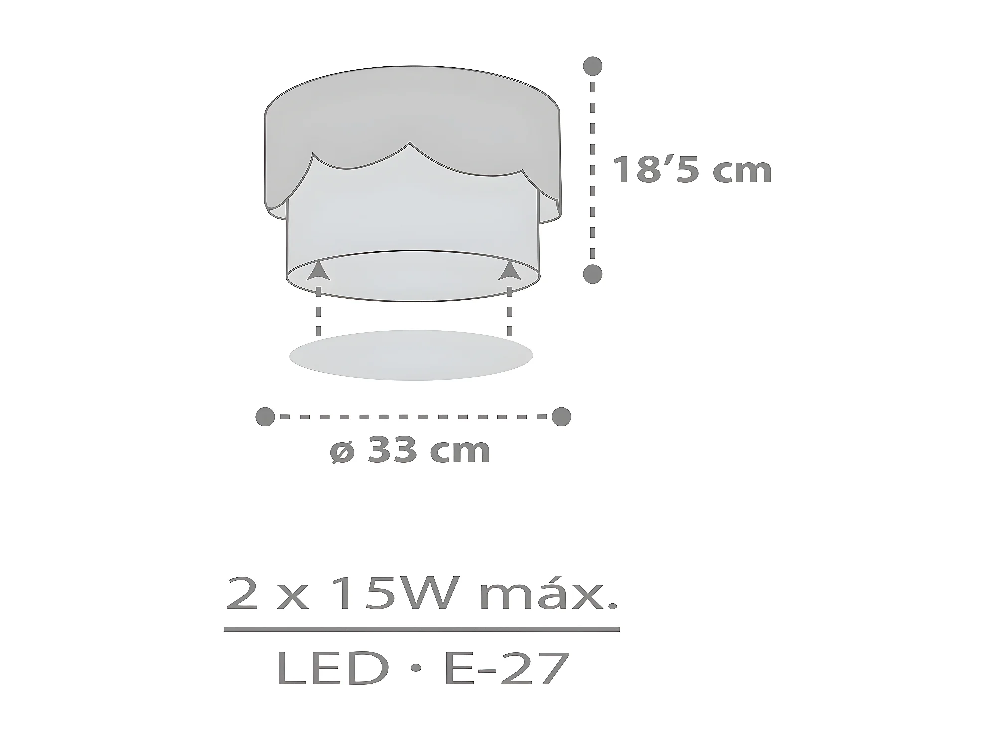 Sollux ARENA - Plafoniera rotonda a filo 2 luci argento, attacco E27