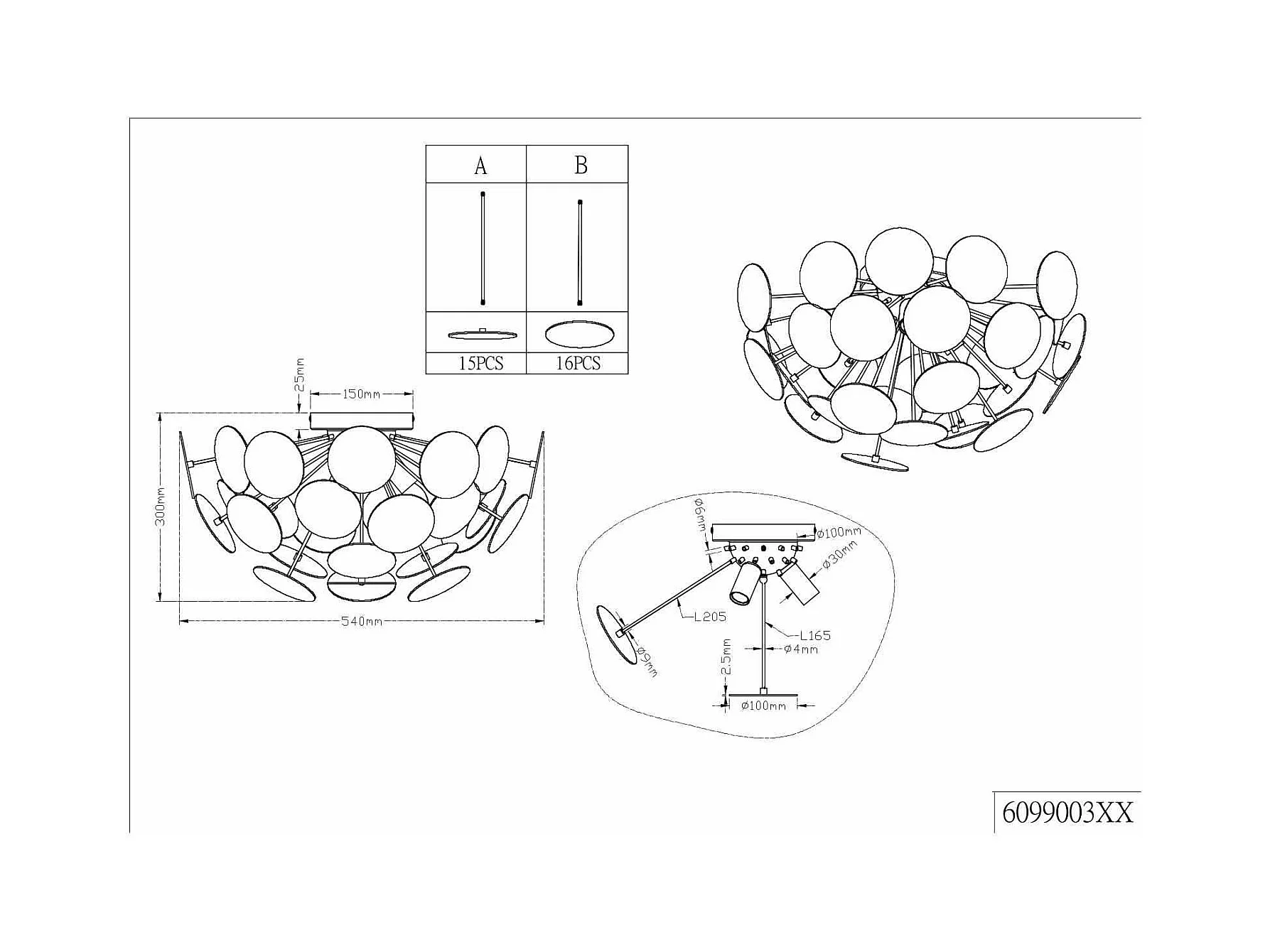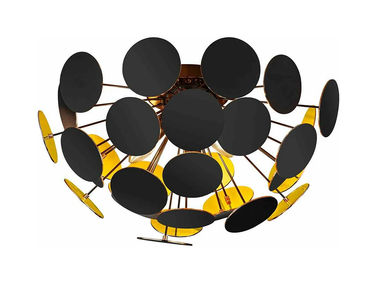 Plafoniera sfera tondi, metallo, nero opaco e oro, D 54 cm, Discalgo