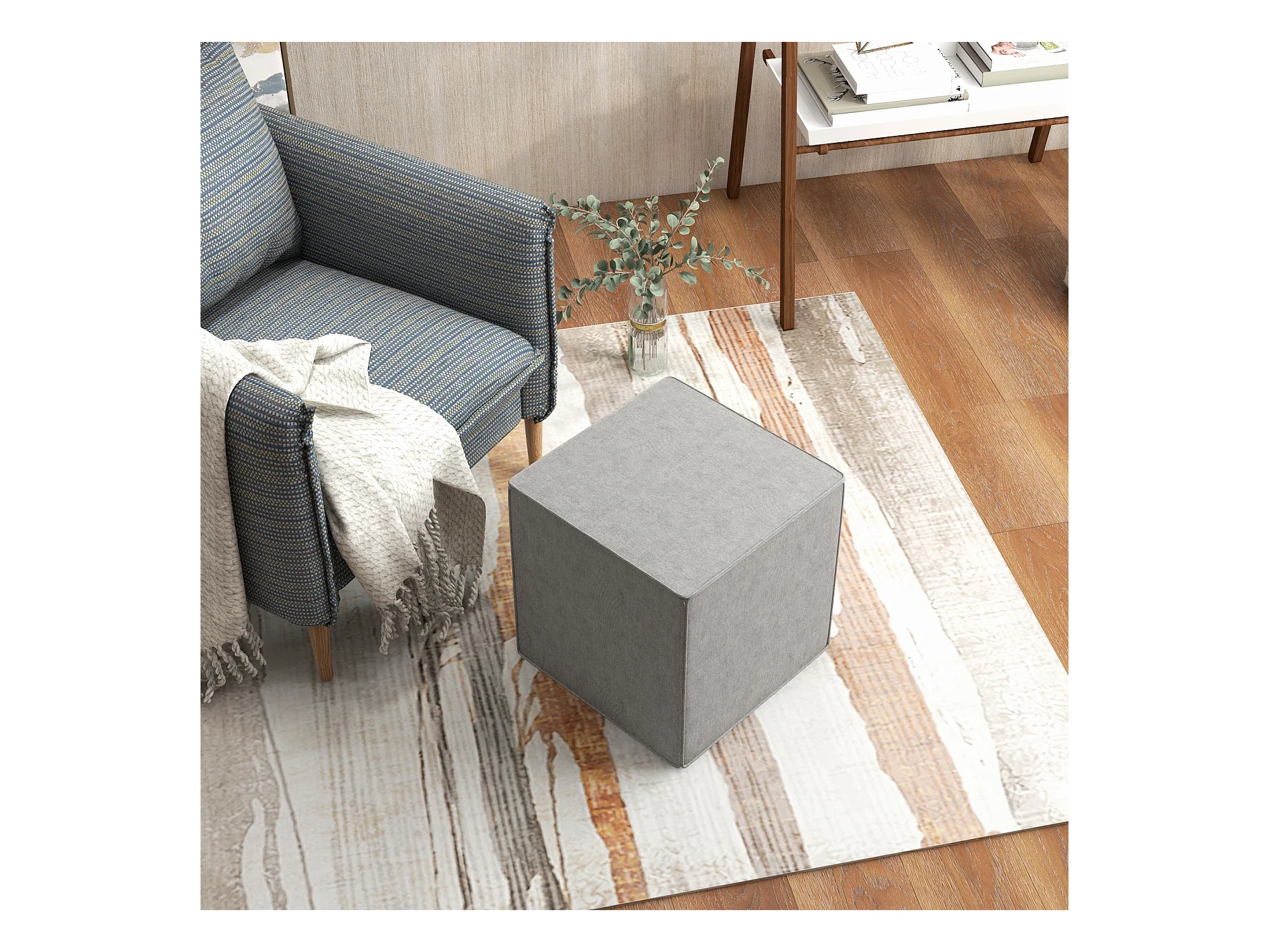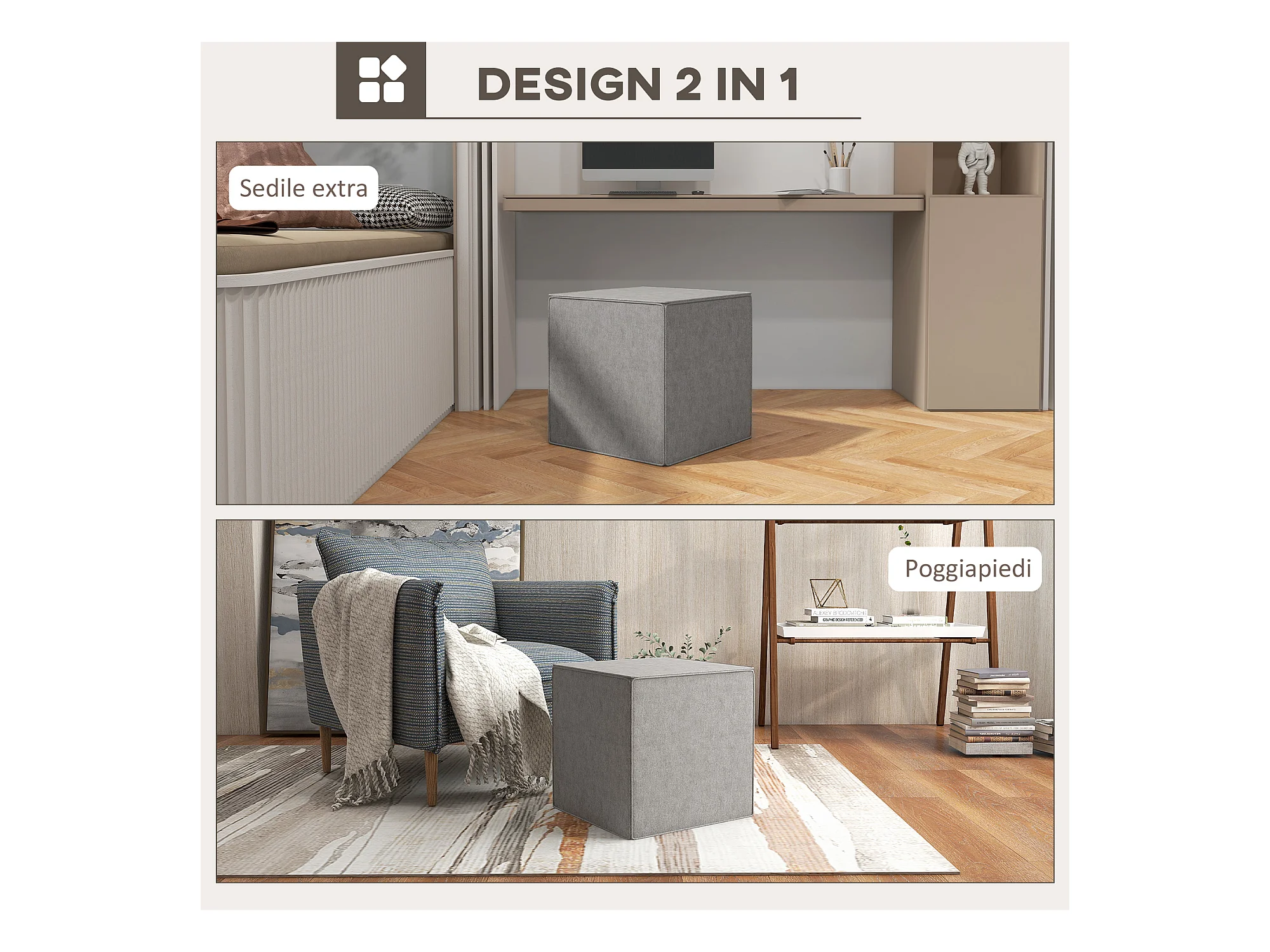 Pouf poggiapiedi in tessuto effetto lino imbottito 40x30x24 cm grigio