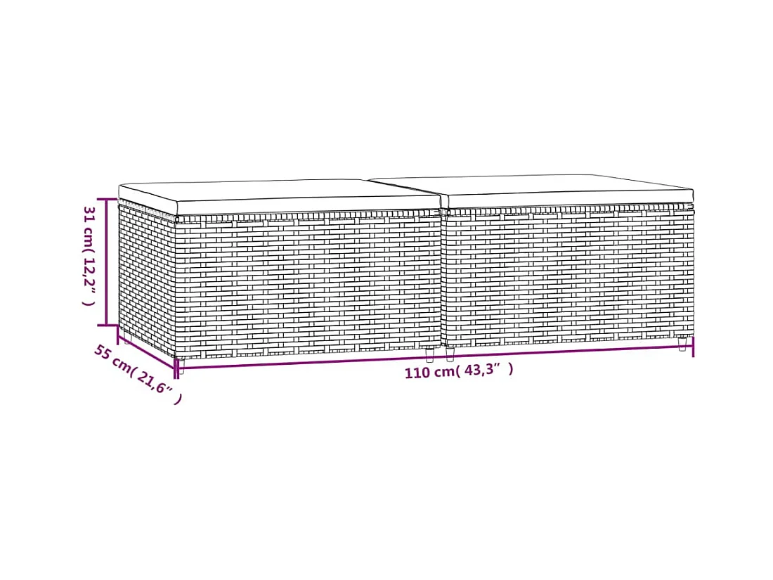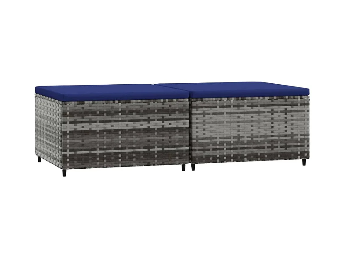 Poggiapiedi da Giardino con Cuscini 2 pz in Polyrattan Grigio