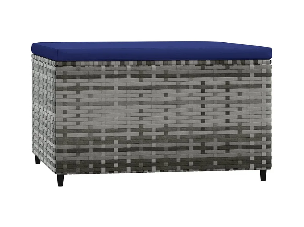 Poggiapiedi da Giardino con Cuscino in Polyrattan Grigio