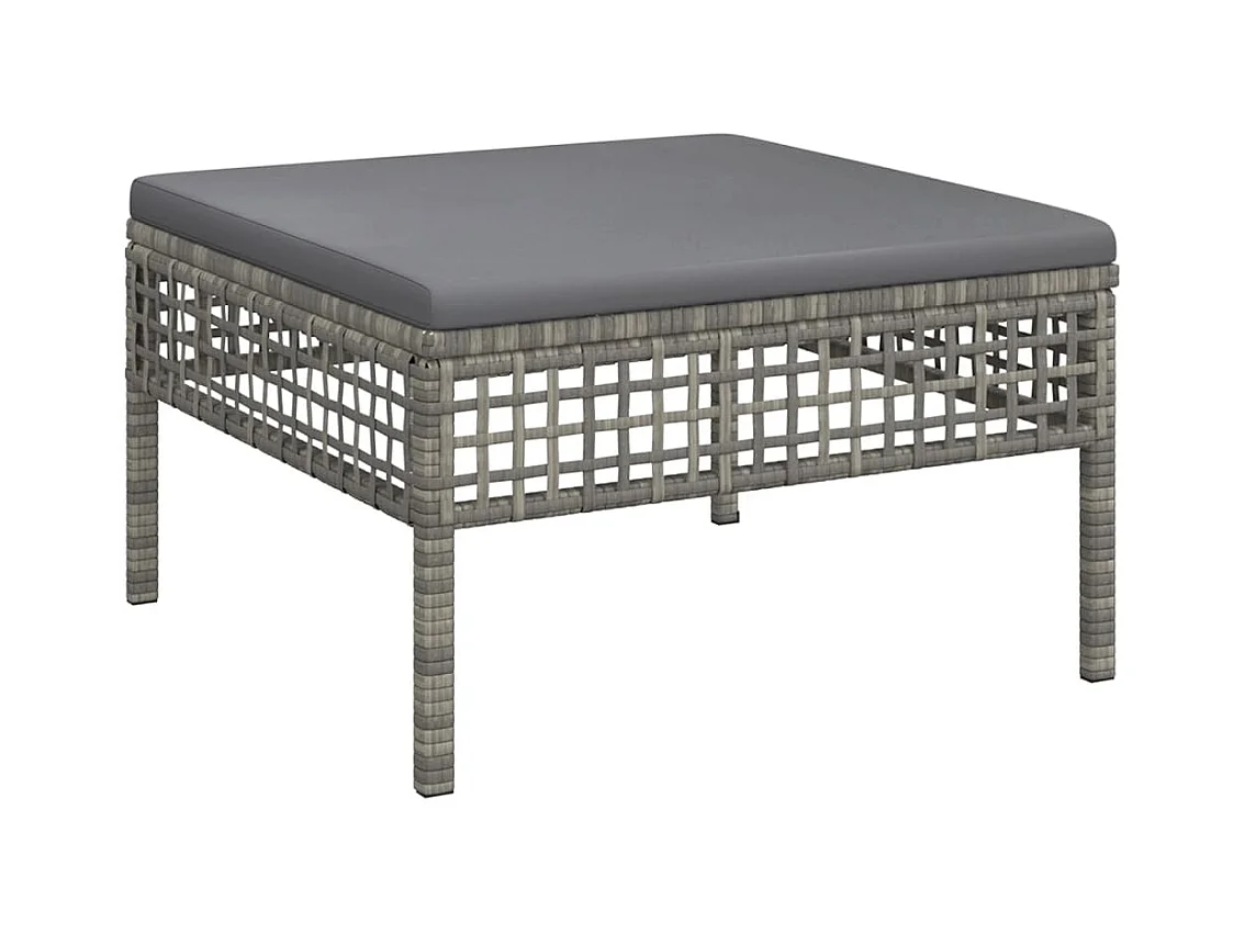 Poggiapiedi da Giardino con Cuscino in Polyrattan Grigio