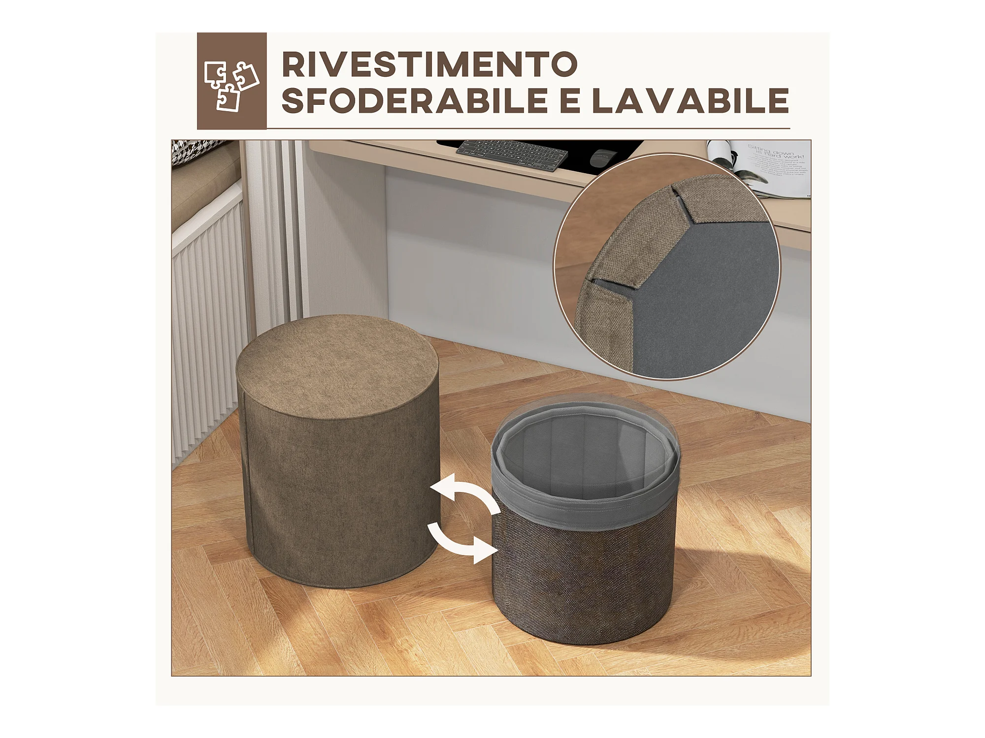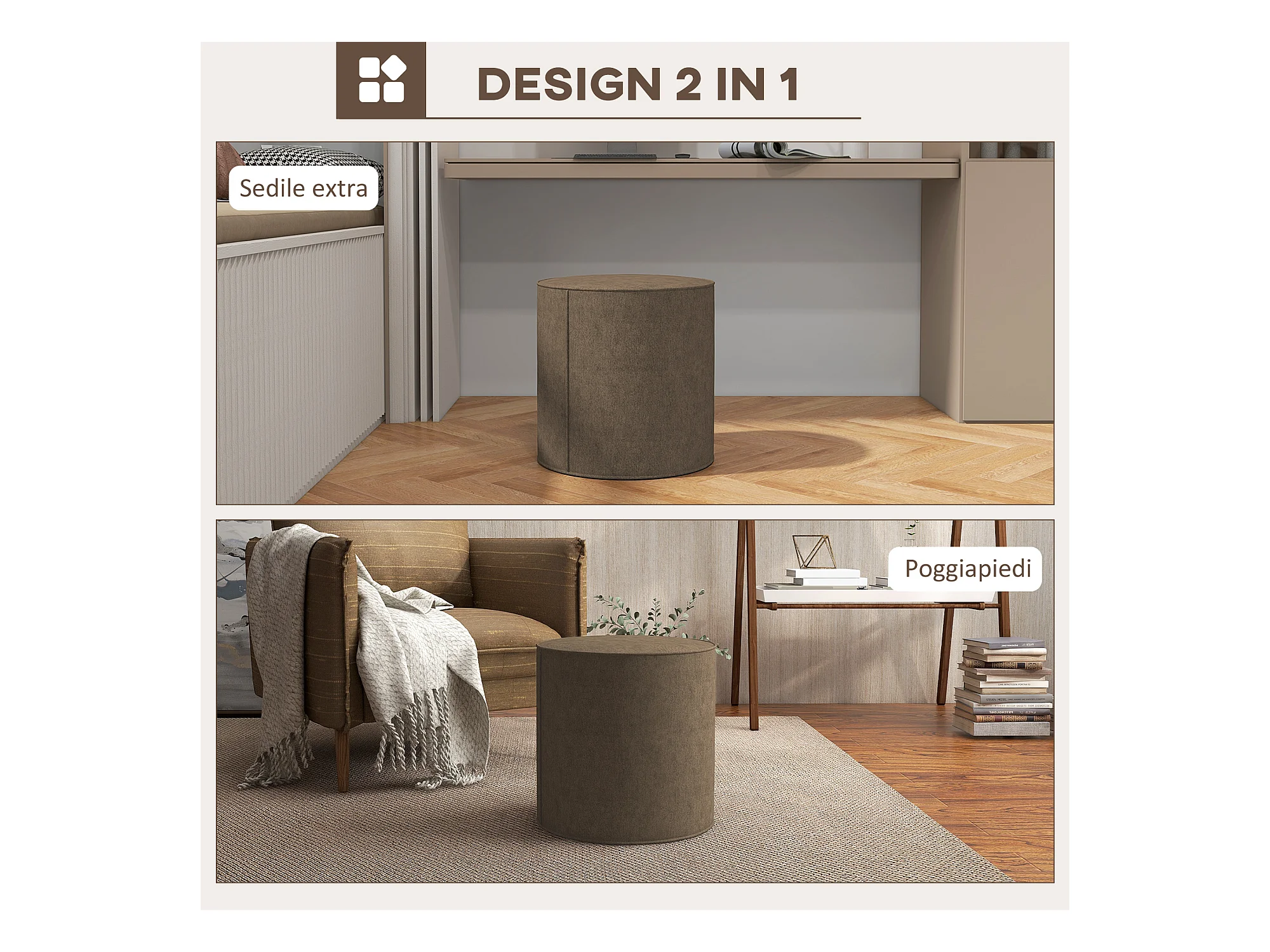 Pouf poggiapiedi imbottito con rivestimento in tessuto marrone
