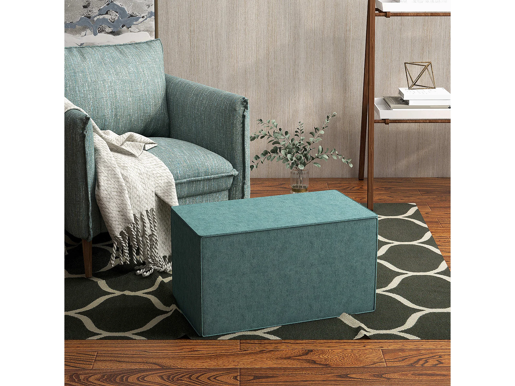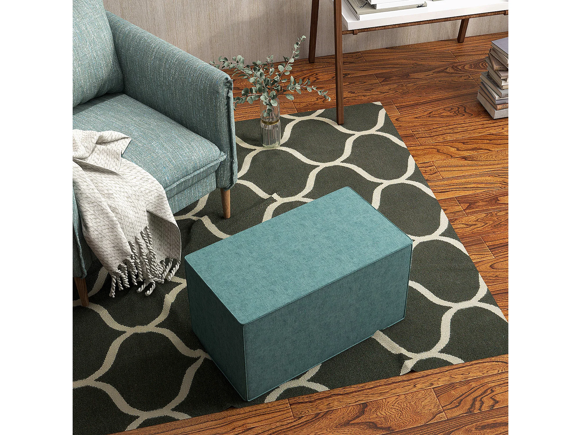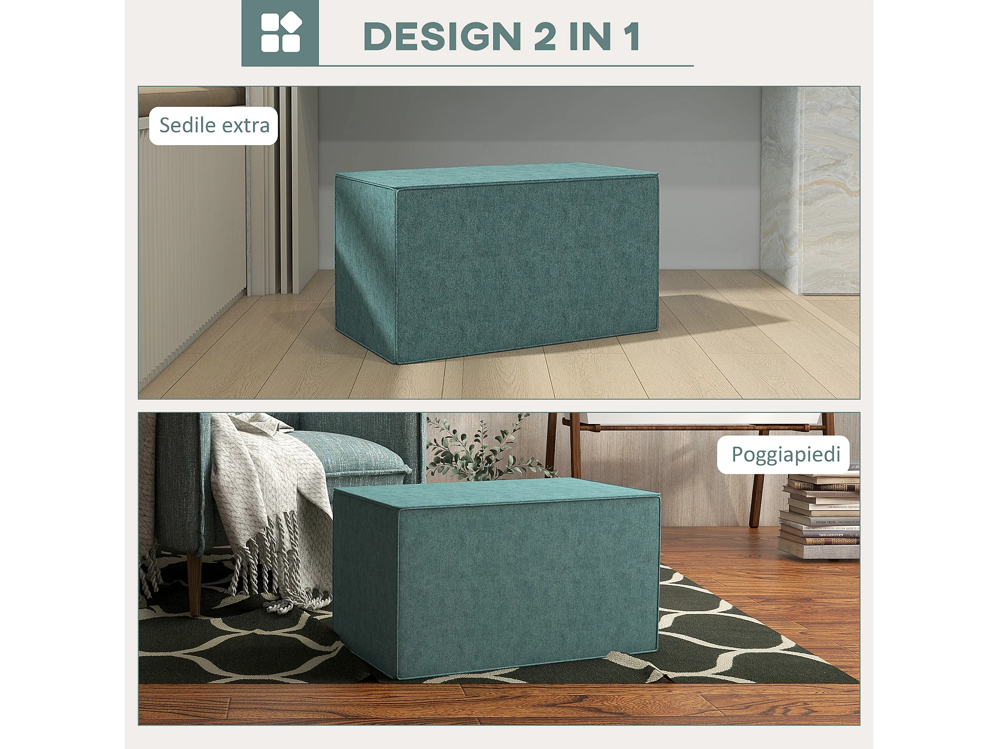 Poggiapiedi imbottito con rivestimento in tessuto effetto lino verde
