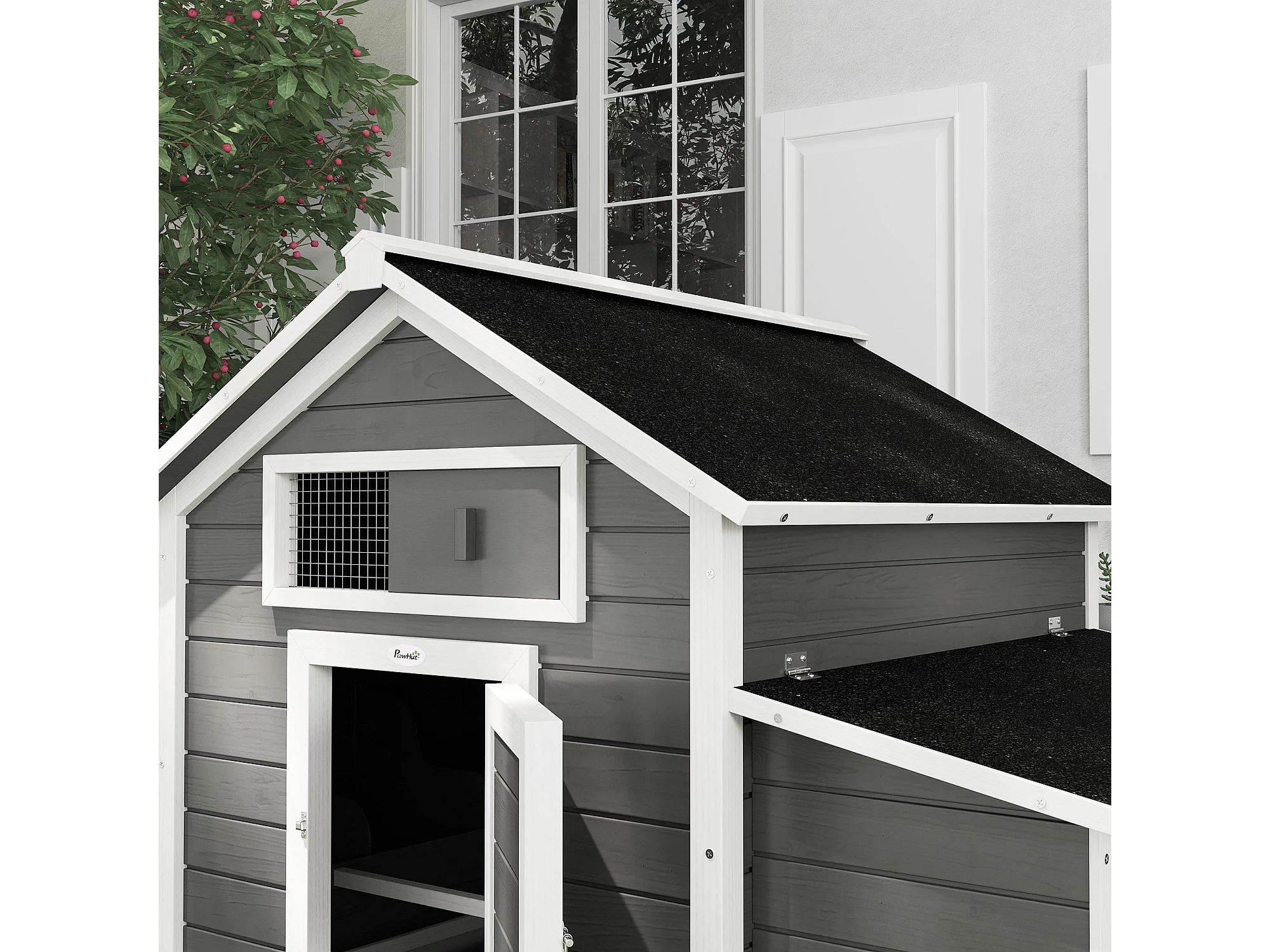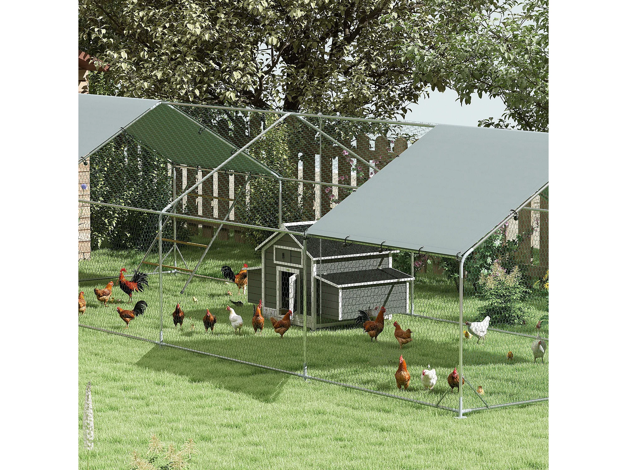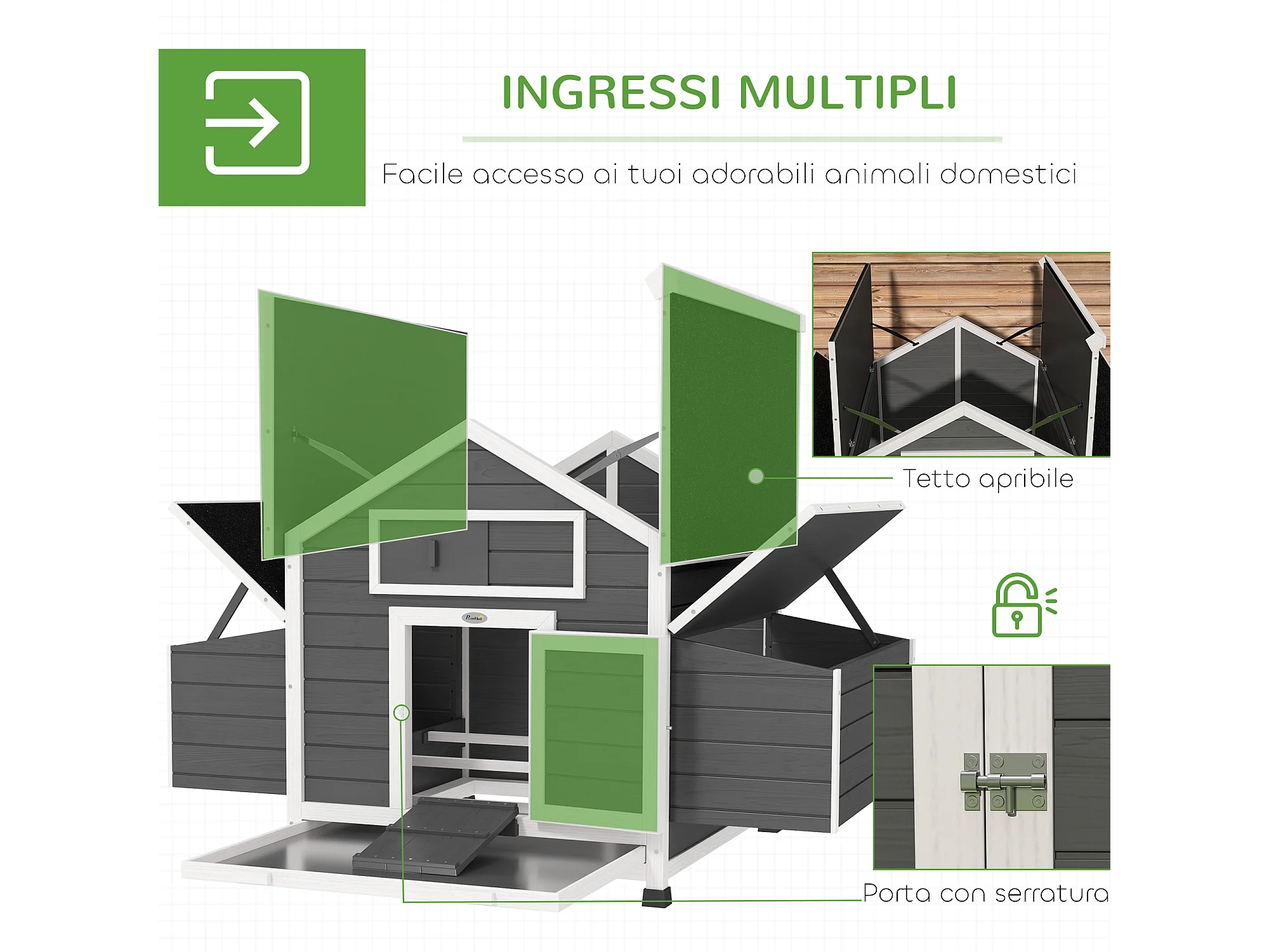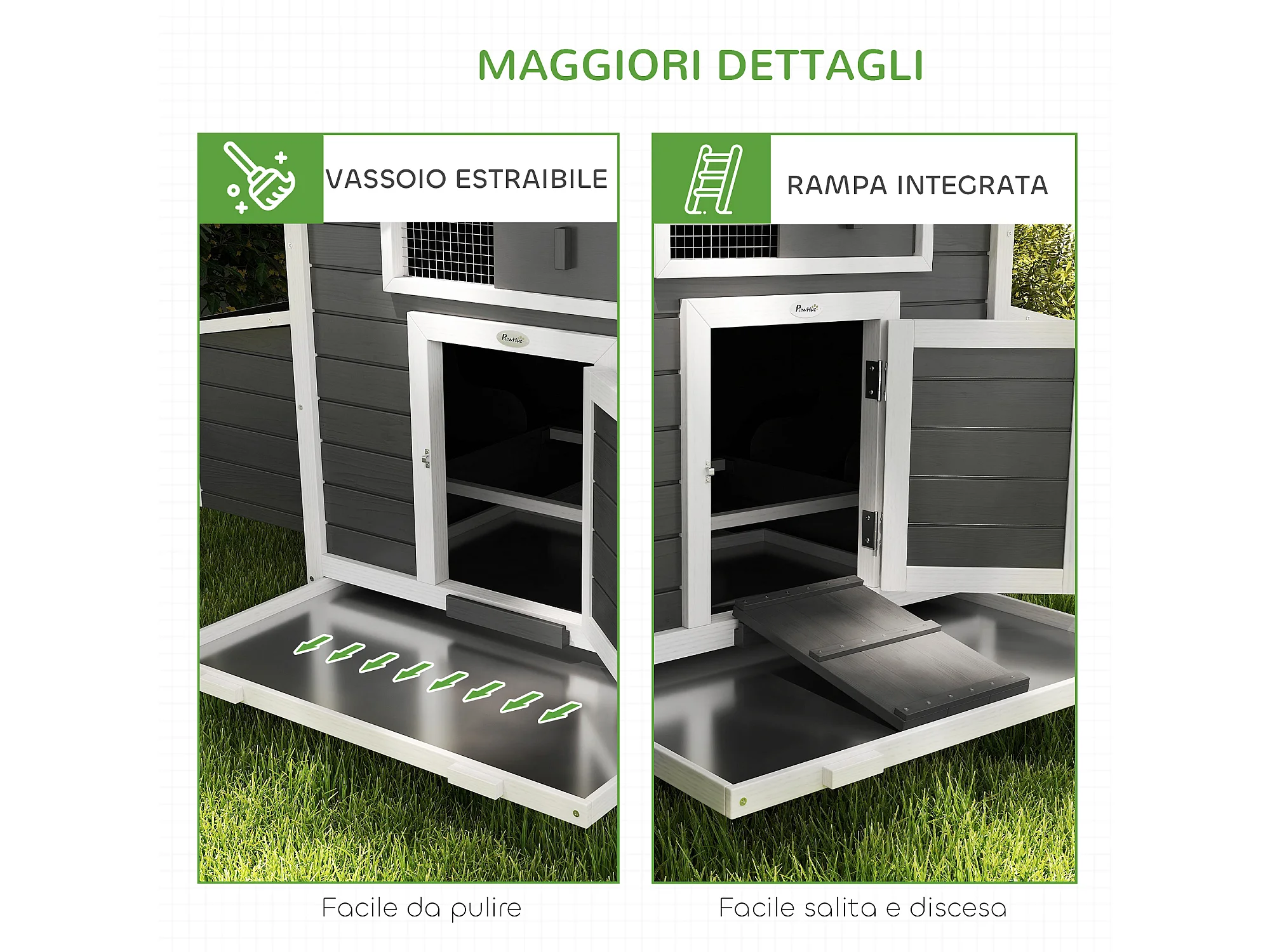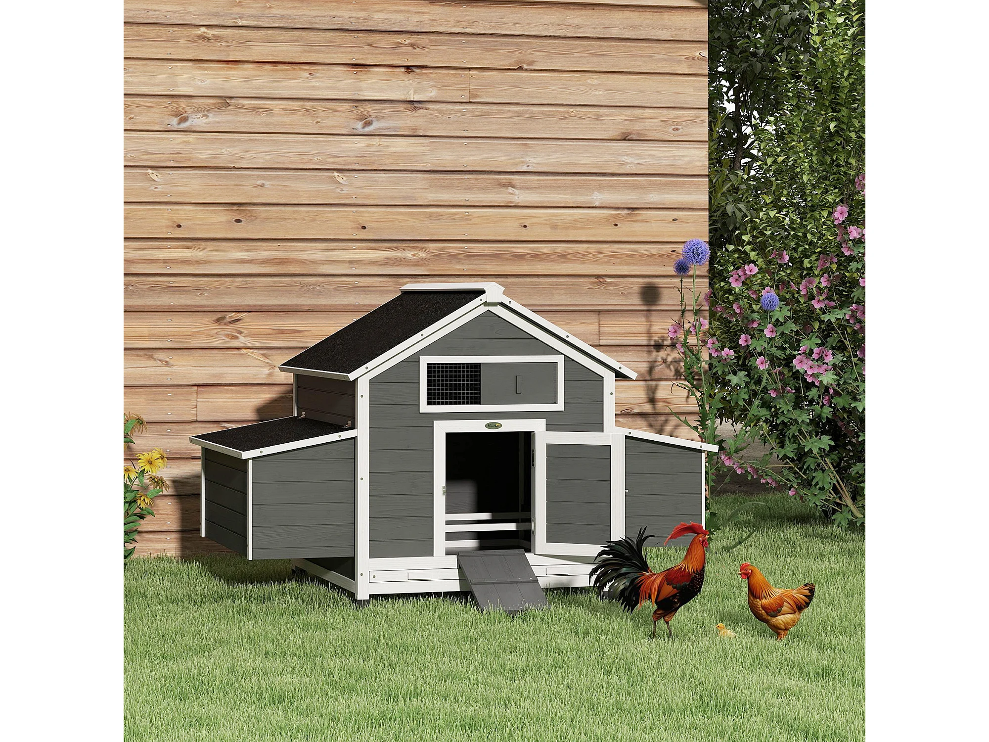 Pollaio da esterno con 2 nidi di cova in legno grigio