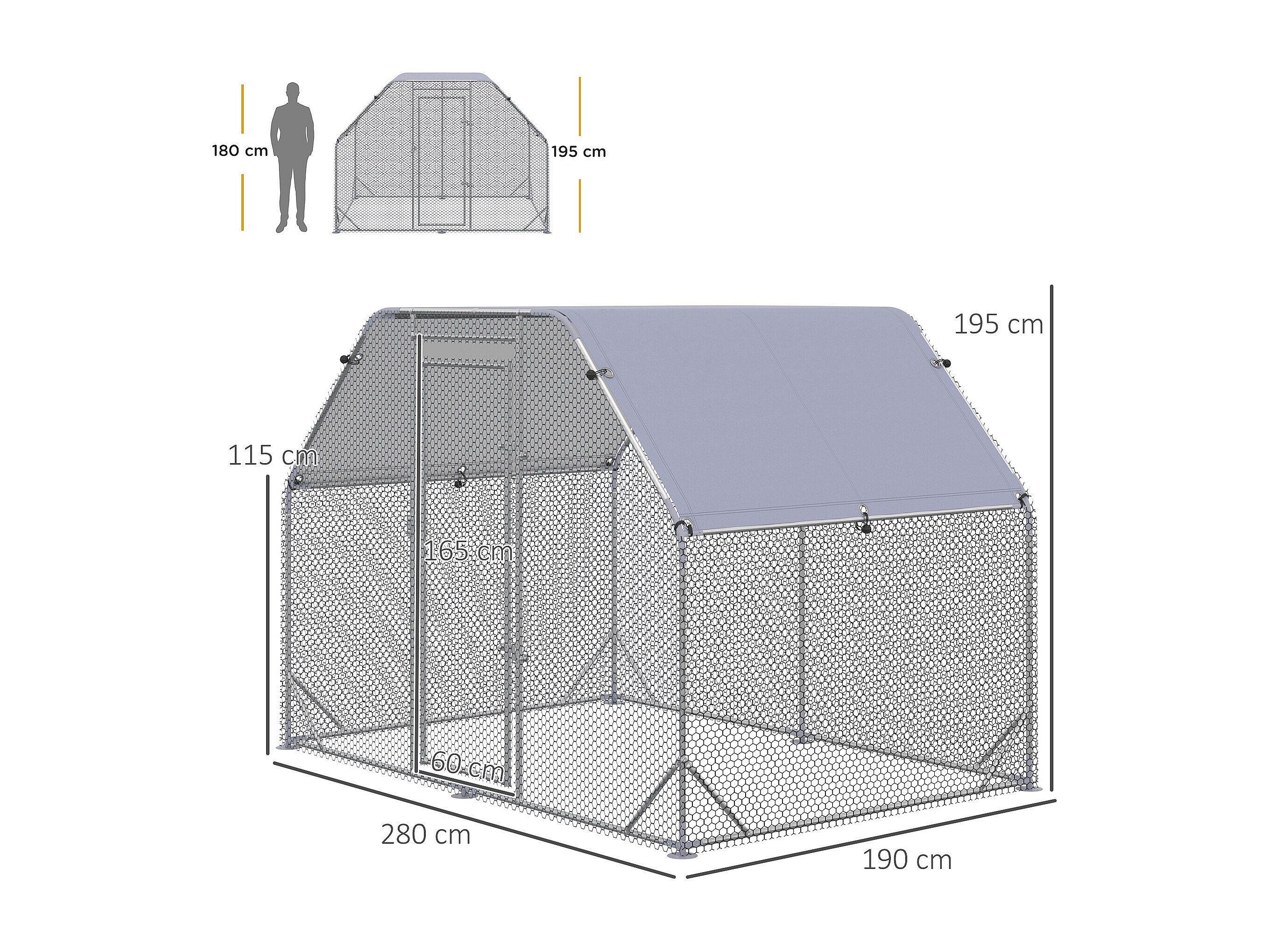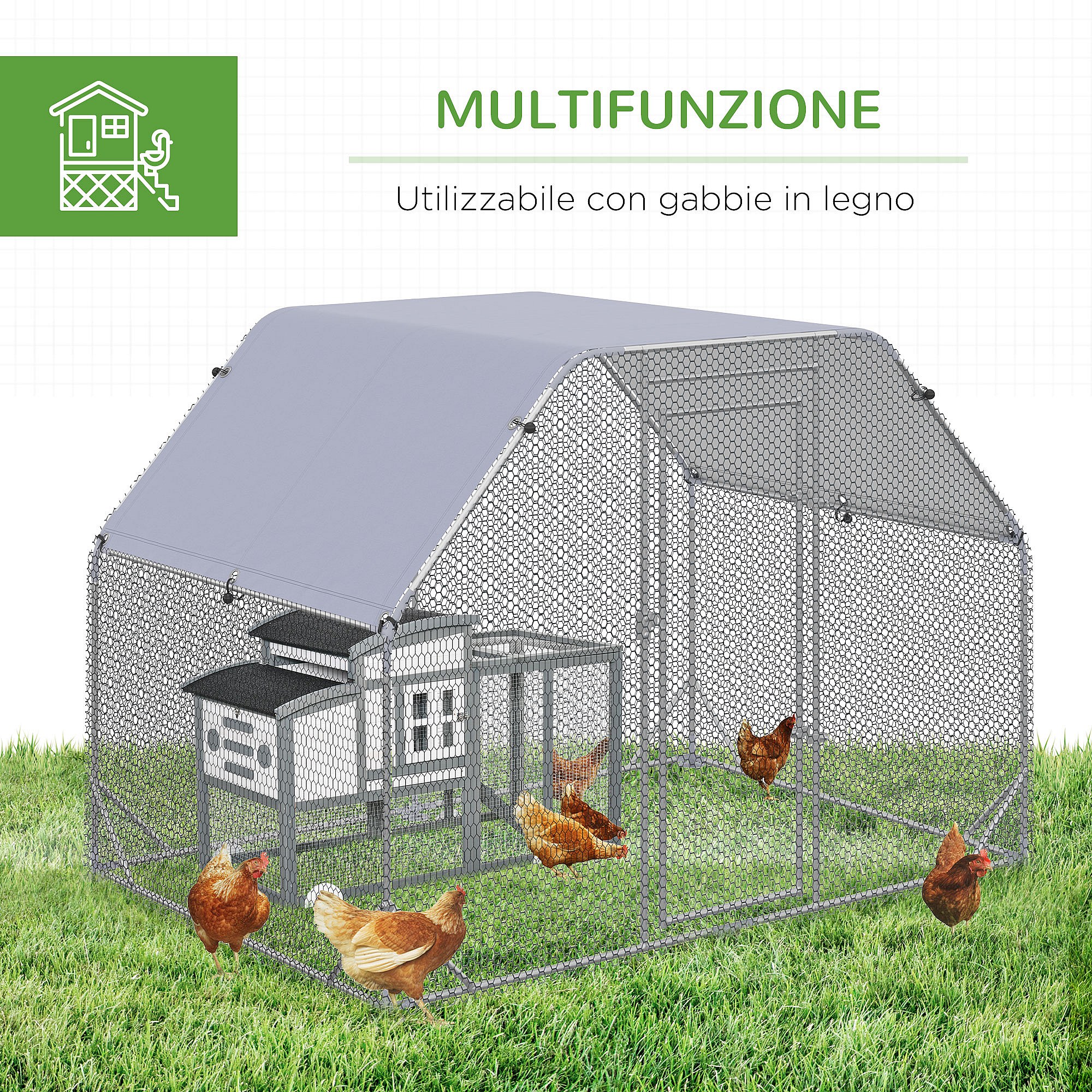 Pollaio da giardino 4-6 polli recinto per galline coperto 280x190x195cm