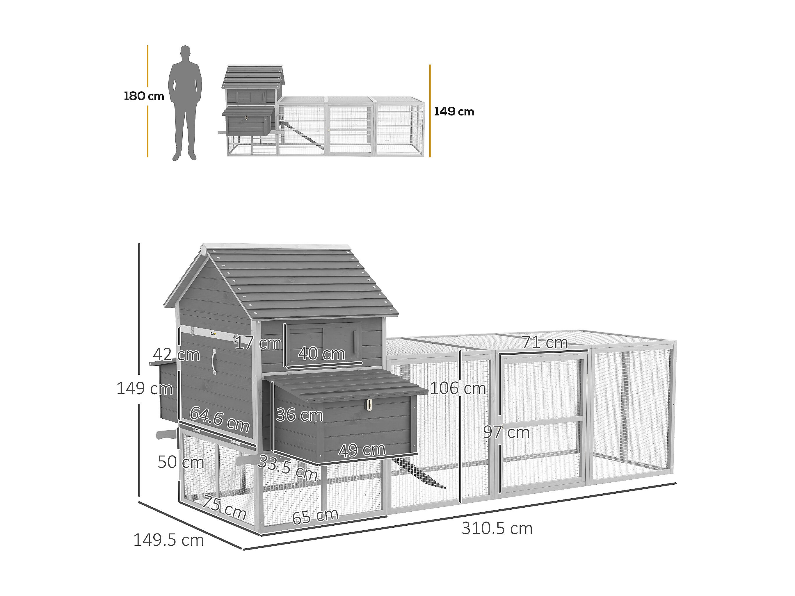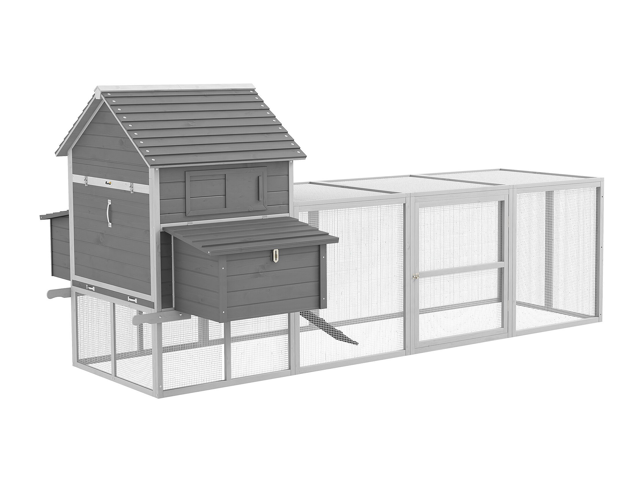 Pollaio da giardino con casetta per galline, rampa e area aperta grigio