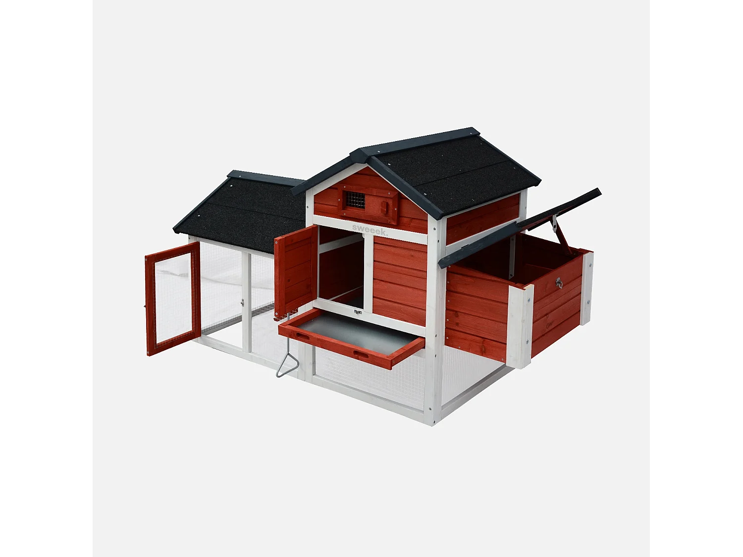 Pollaio in legno con recinto per 3 galline, rosso