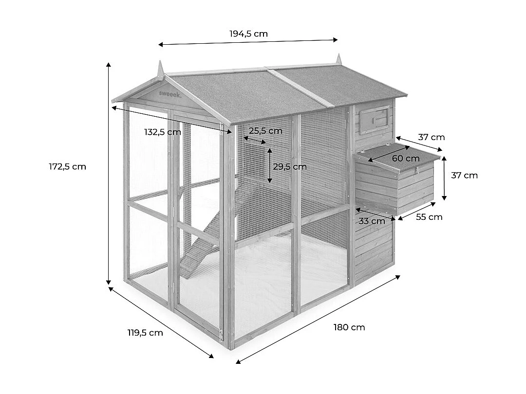 Pollaio in legno con recinto per 6-8 galline, marrone naturale