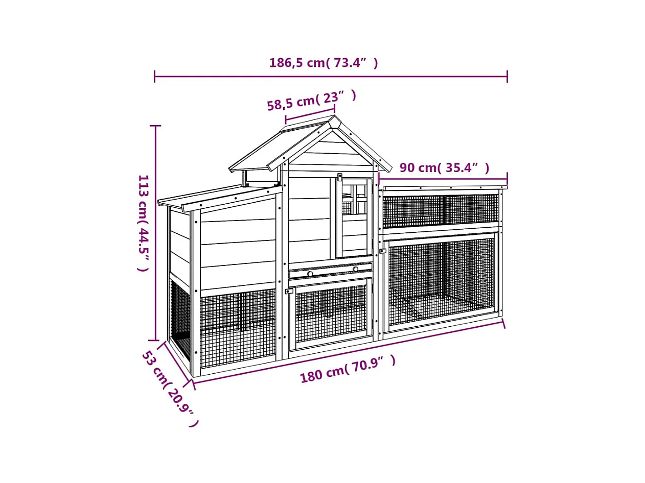 Pollaio marrone 186,5x58,5x113 cm in legno di pino massello