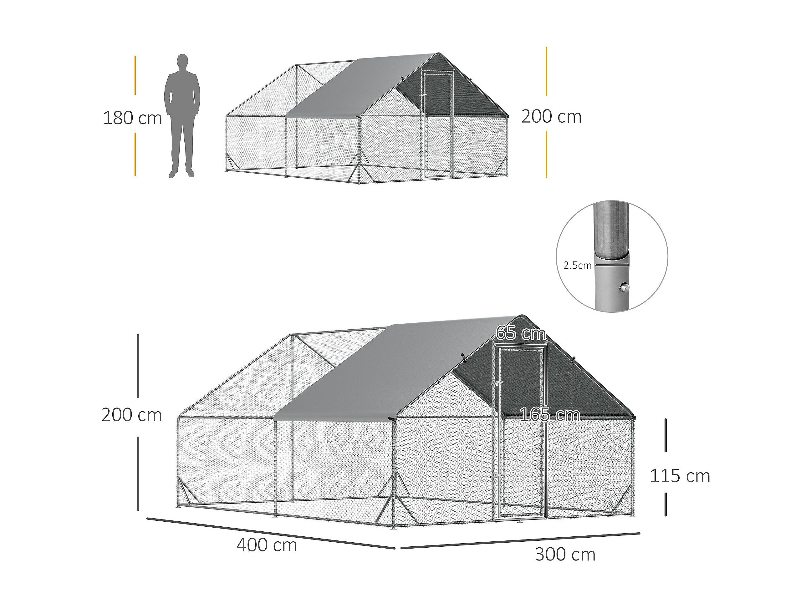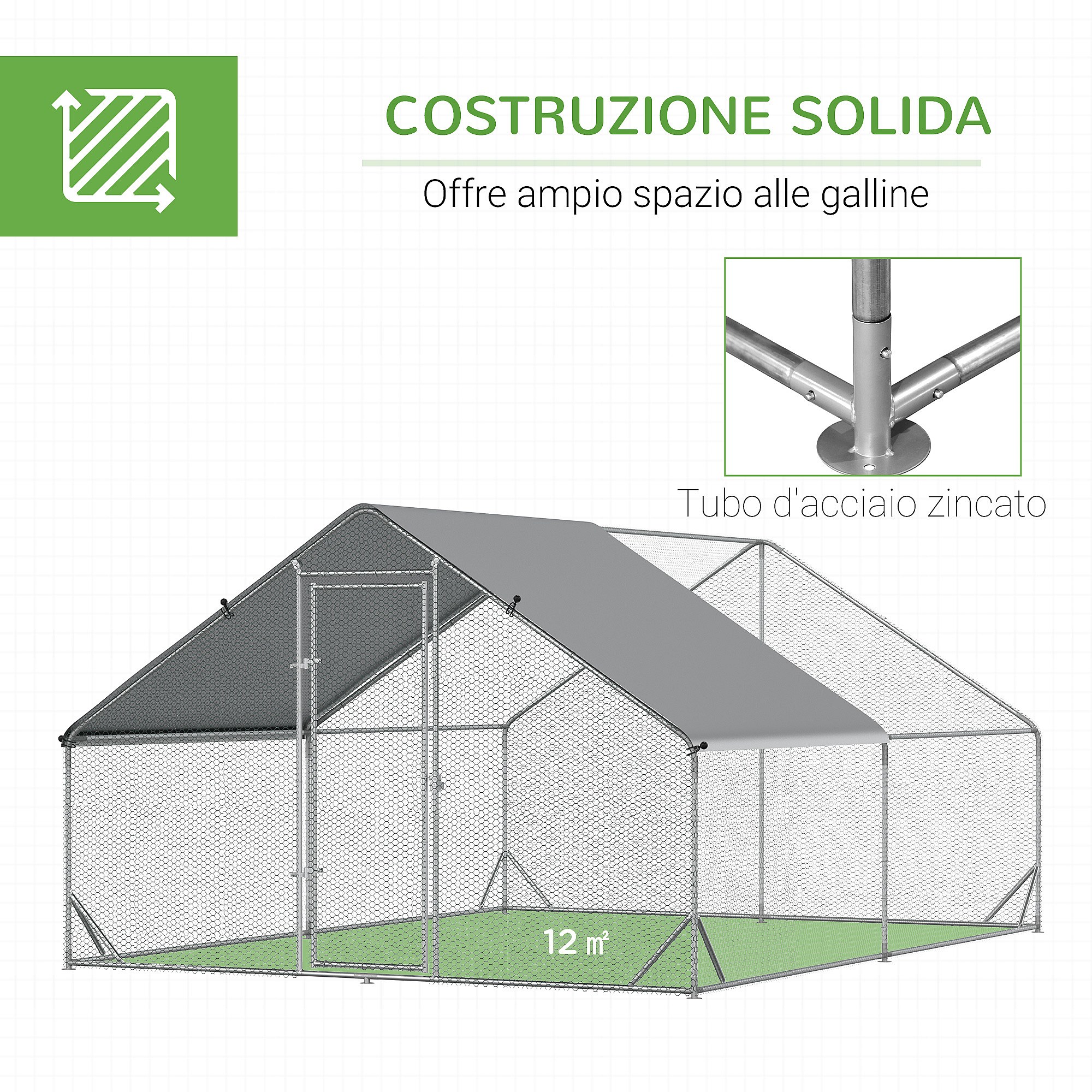 Pollaio per galline da giardino con telaio zincato 3x4x2m impermeabile