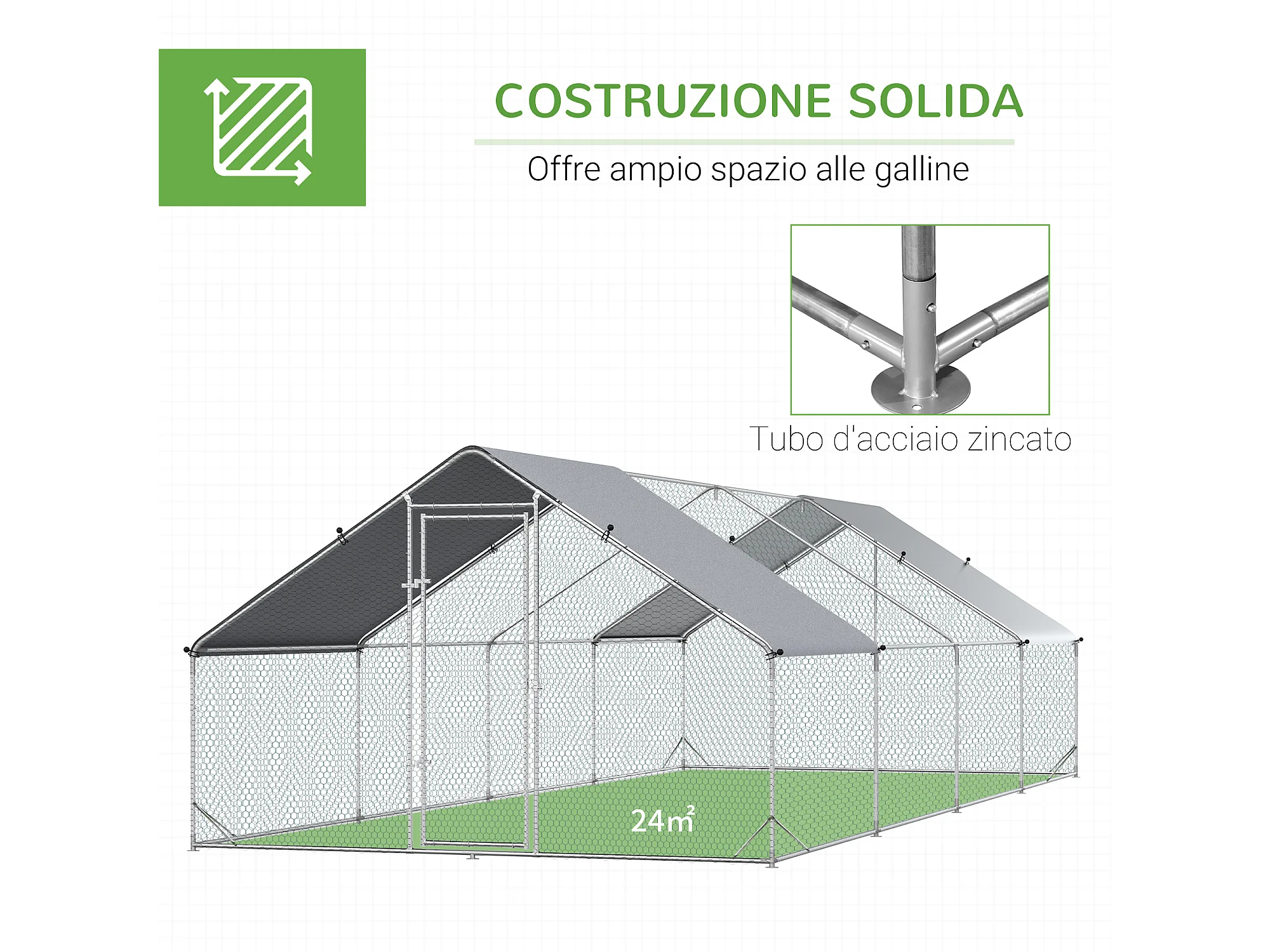 Pollaio per galline da giardino con telaio zincato 3x8x2m impermeabile