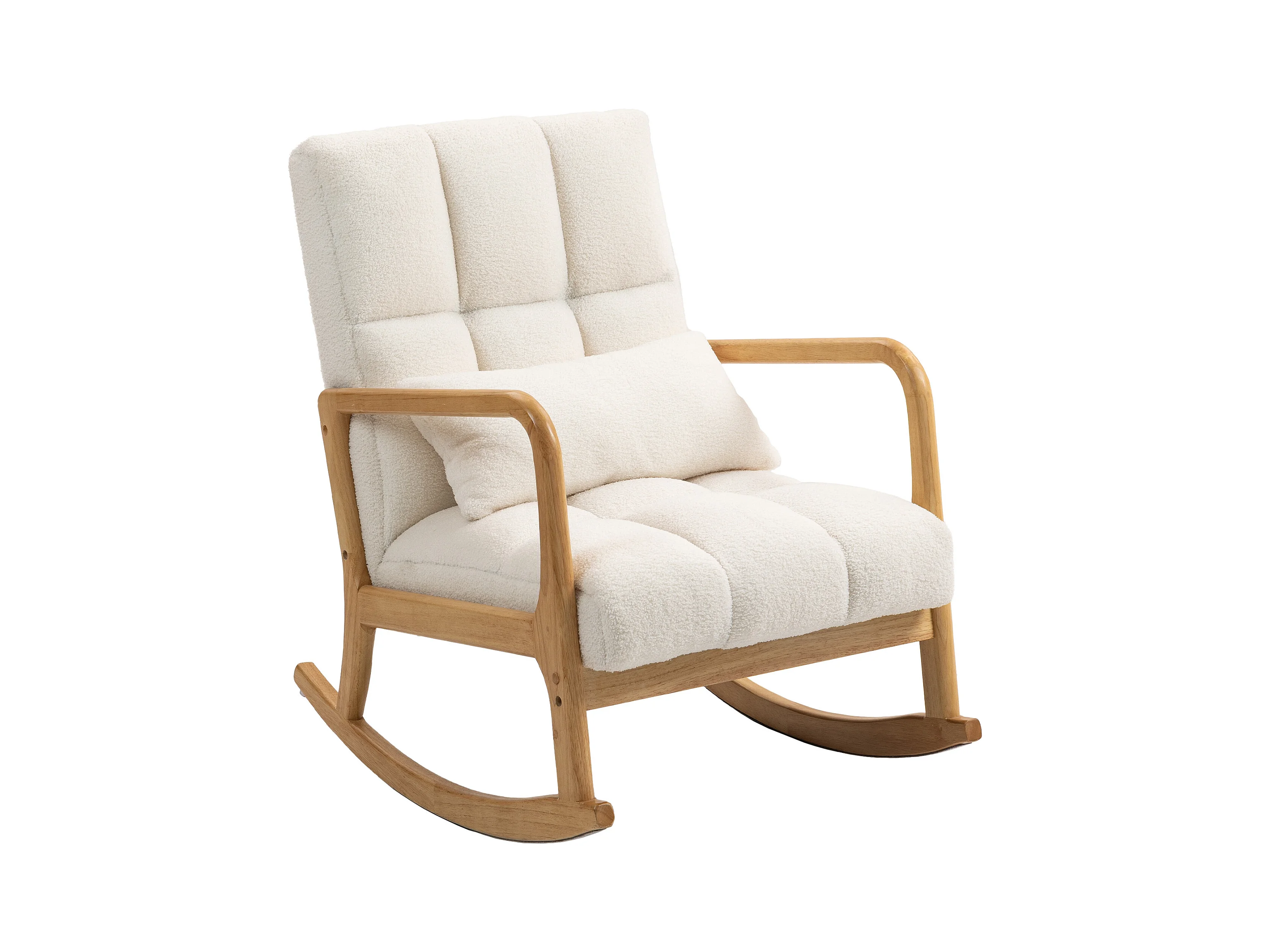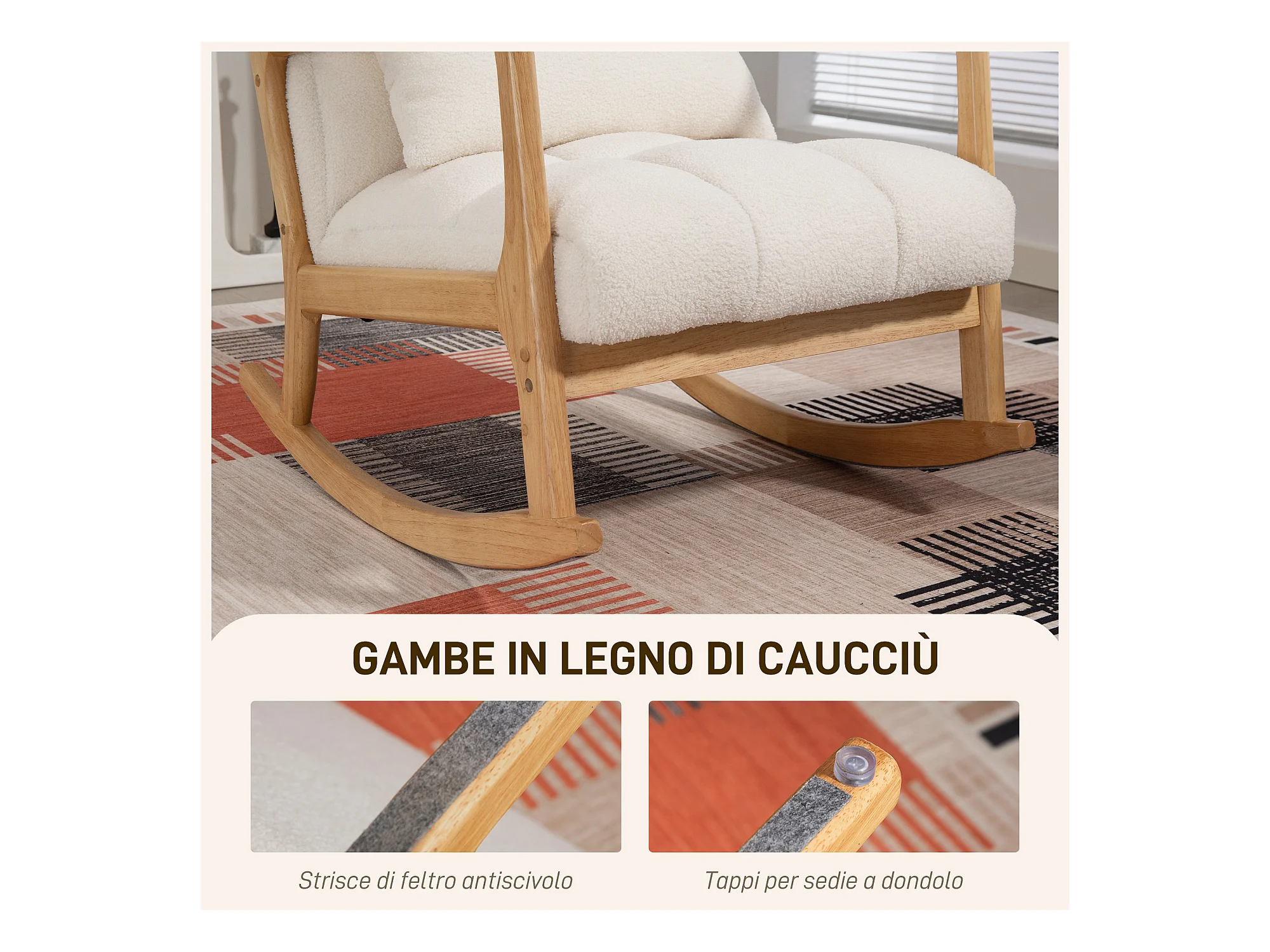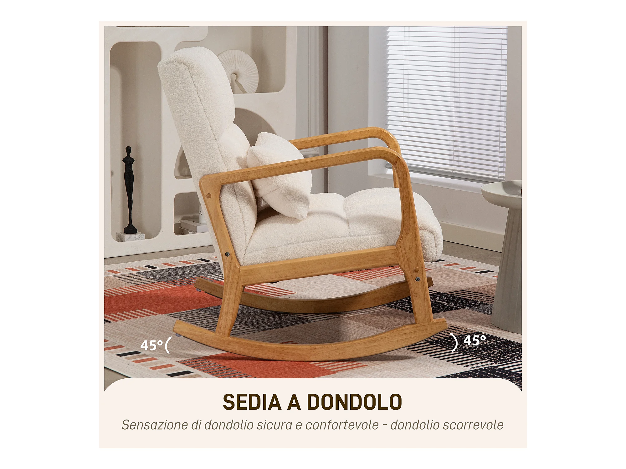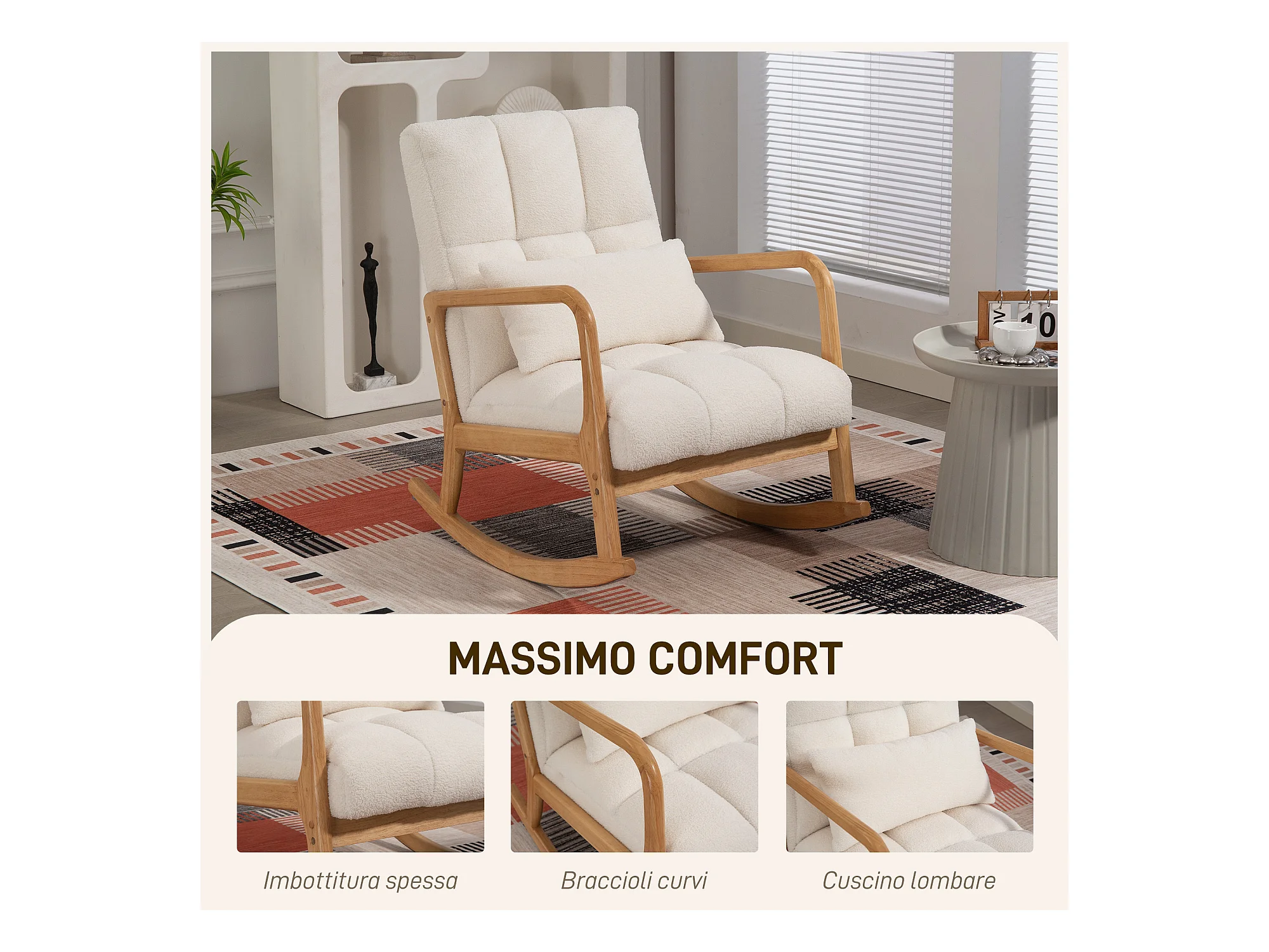 Poltrona a dondolo con cuscino lombare in tessuto sherpa bianco