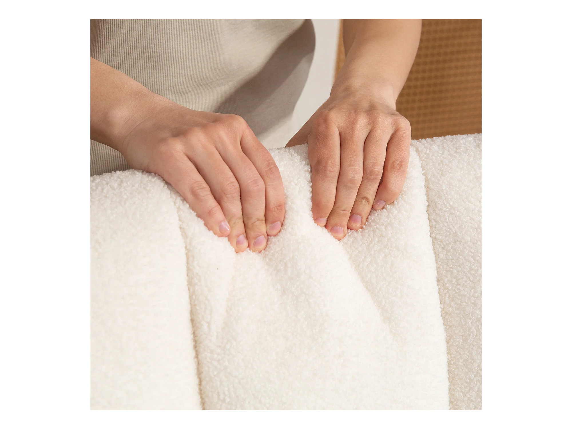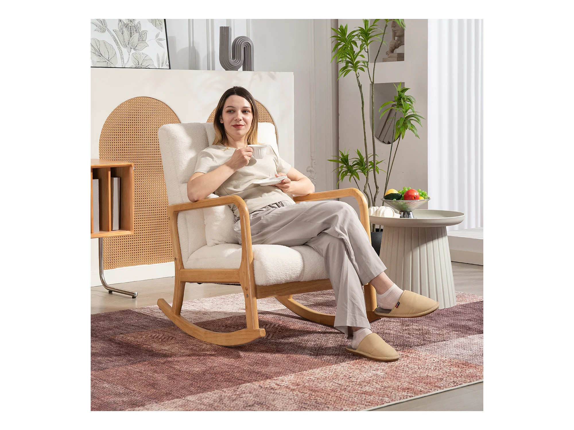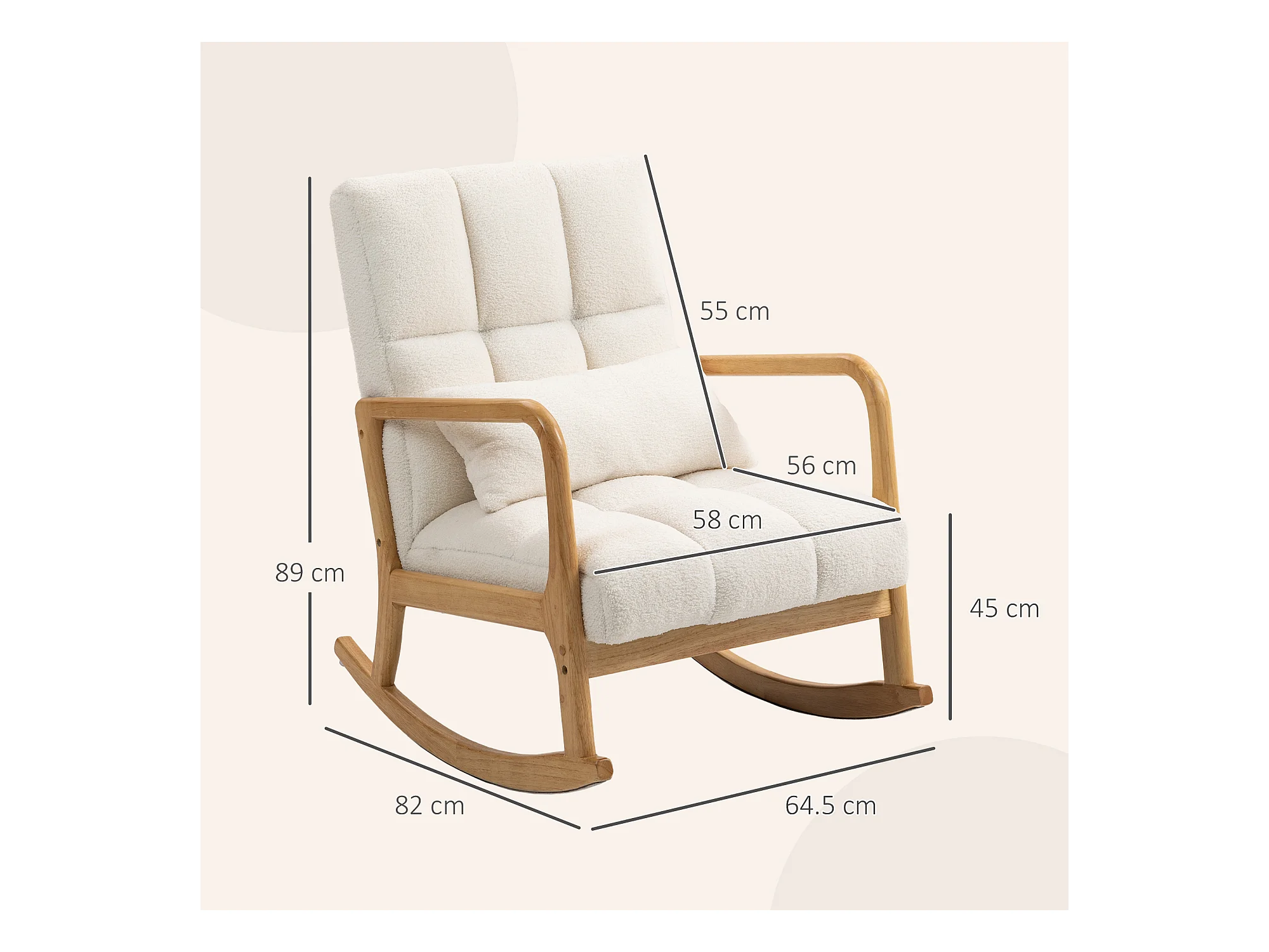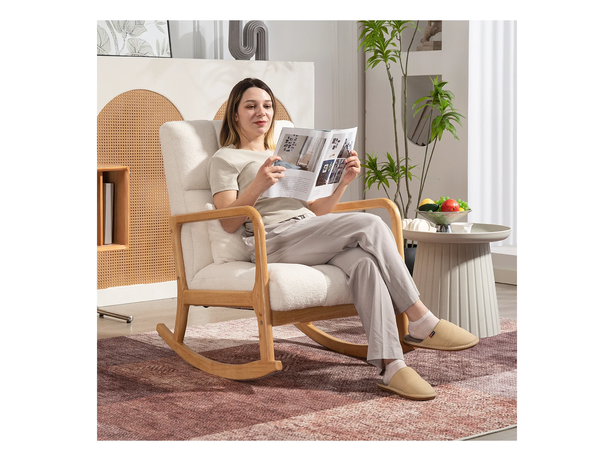 Poltrona a dondolo con cuscino lombare in tessuto sherpa bianco