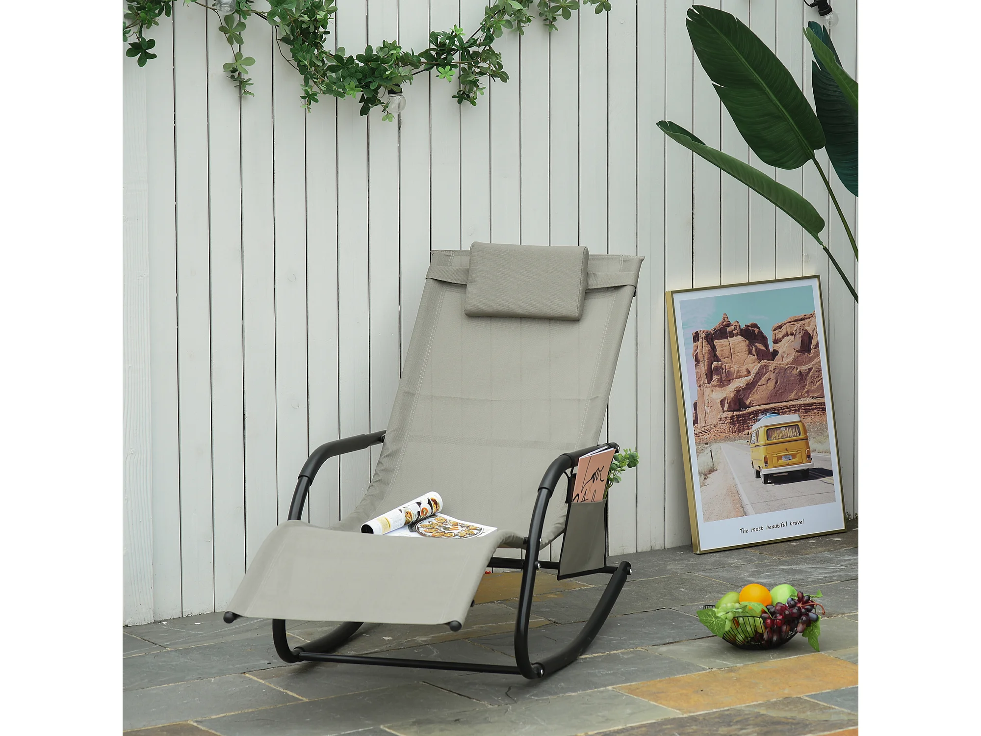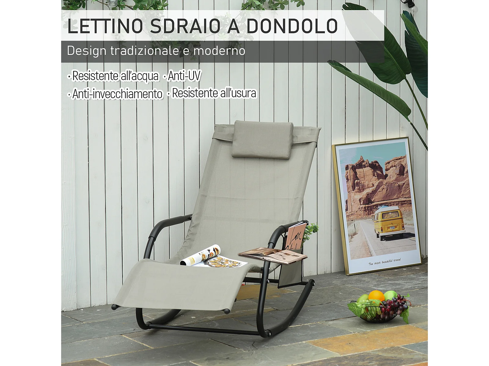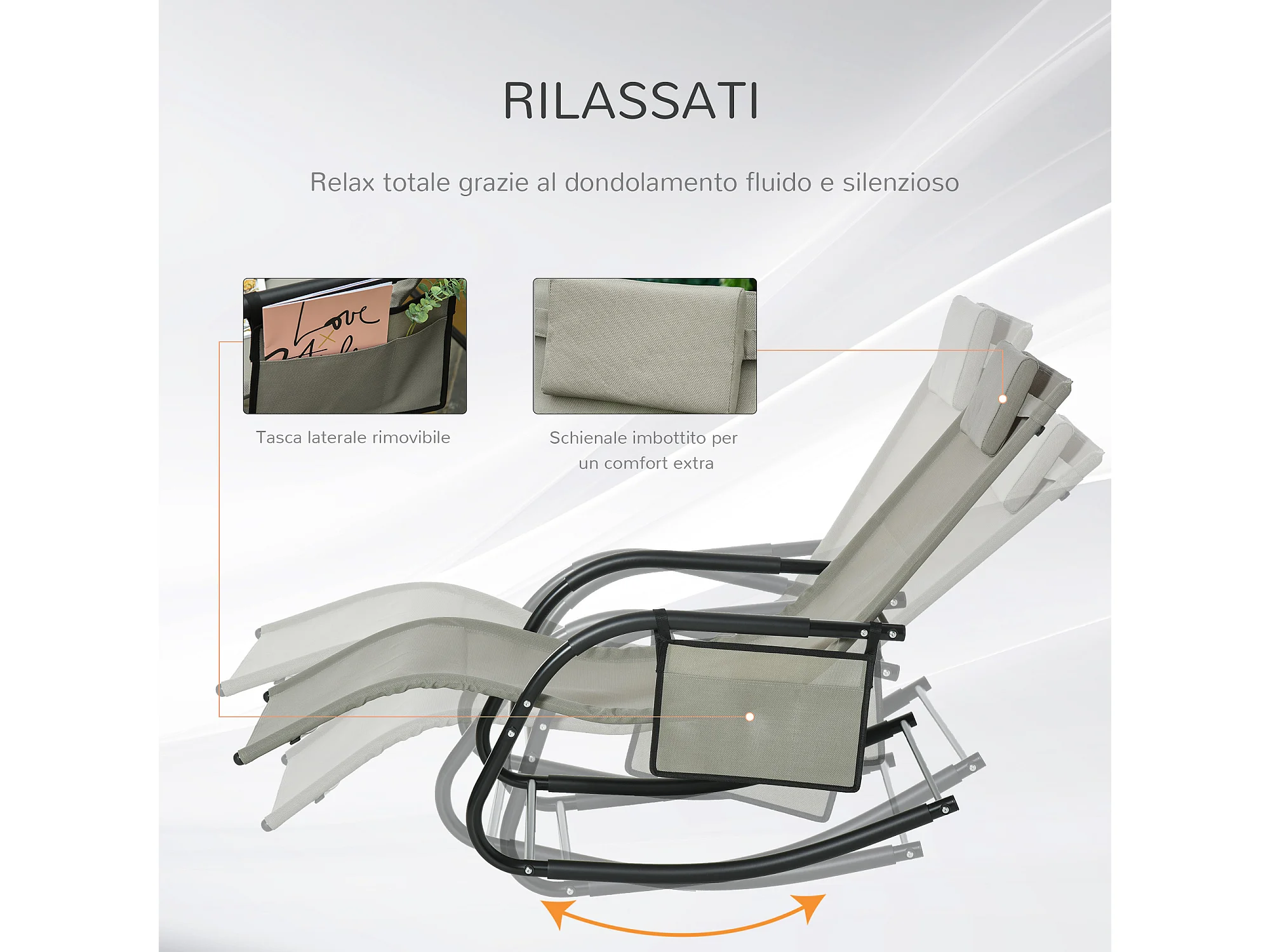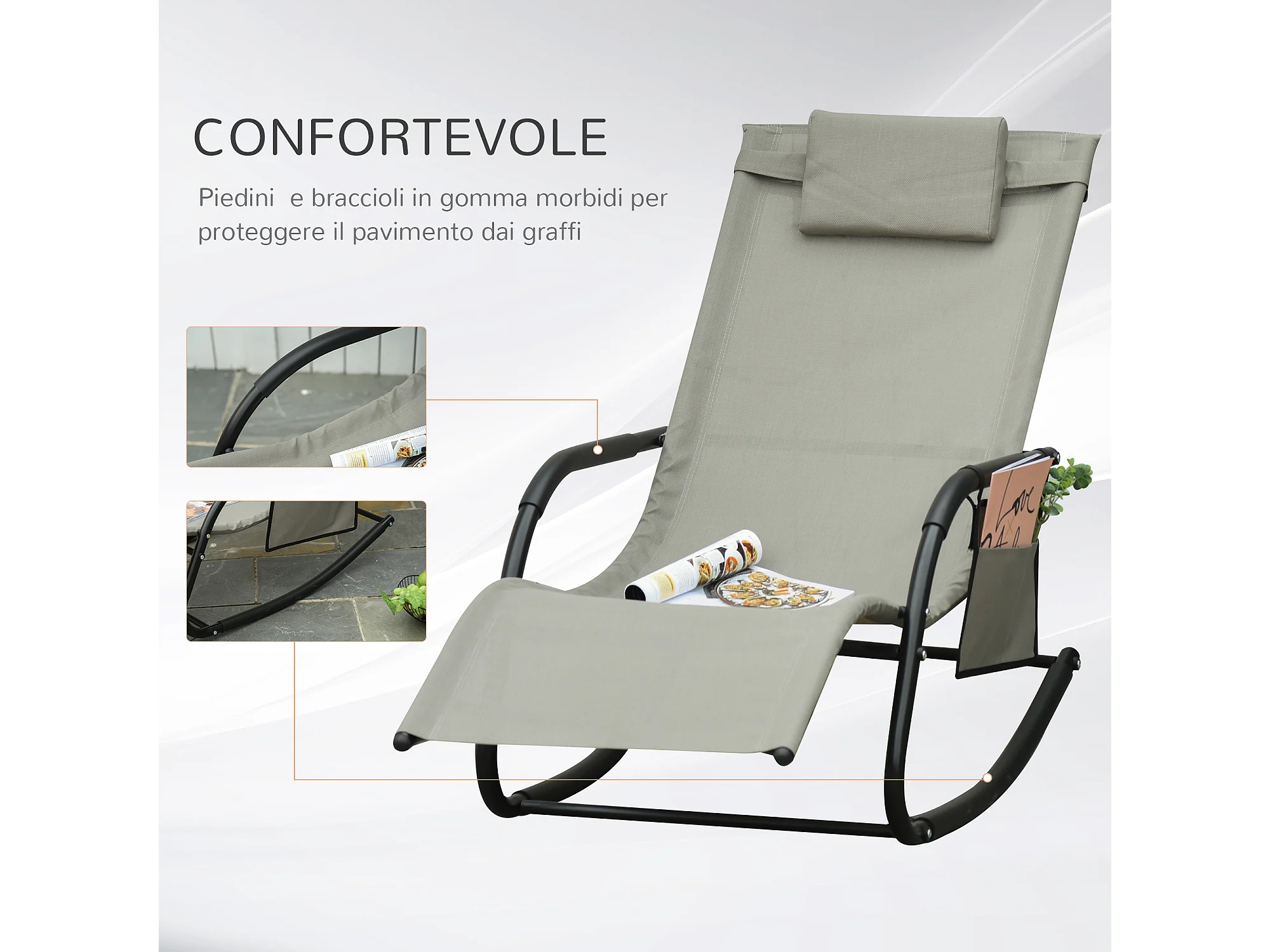 Poltrona a dondolo da giardino con poggiatesta e tasca