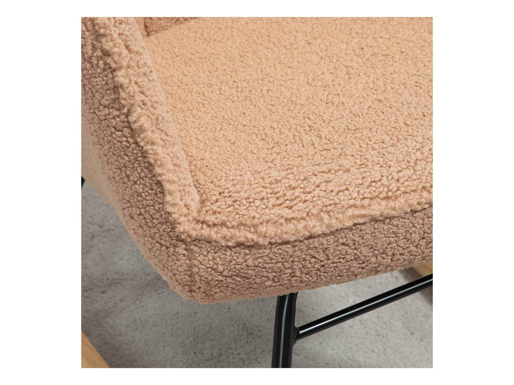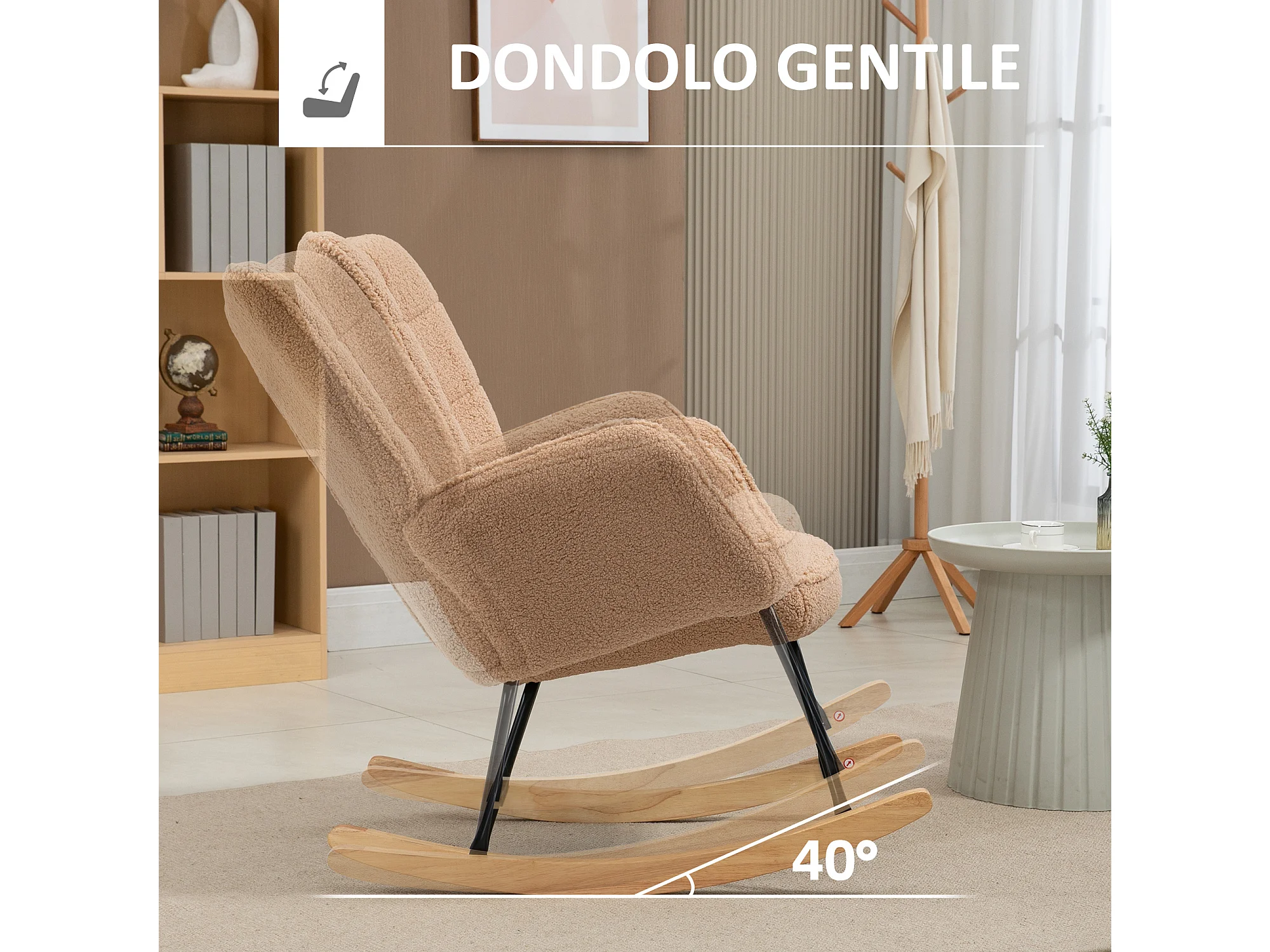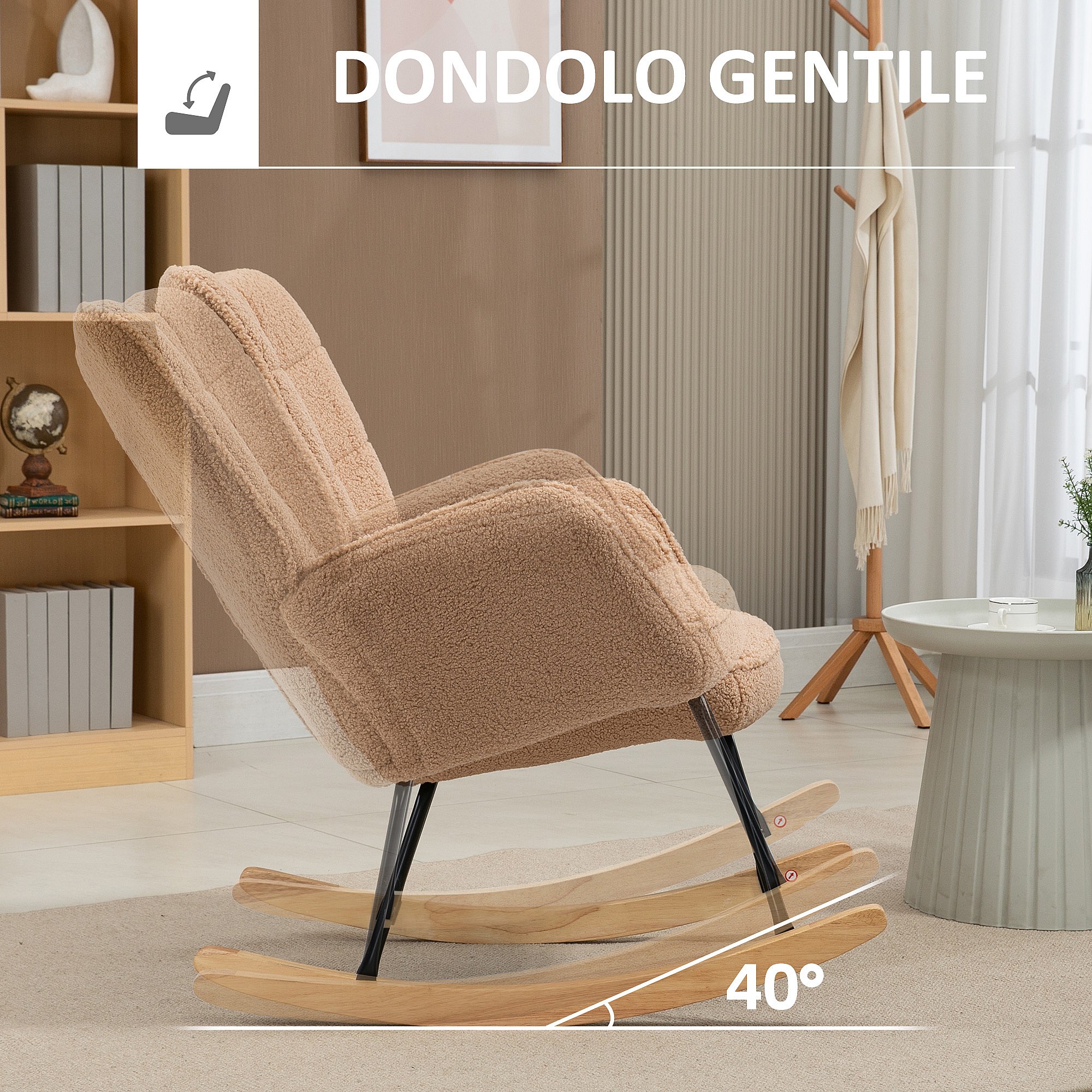 Poltrona a dondolo imbottita bouclé in legno e acciaio marrone