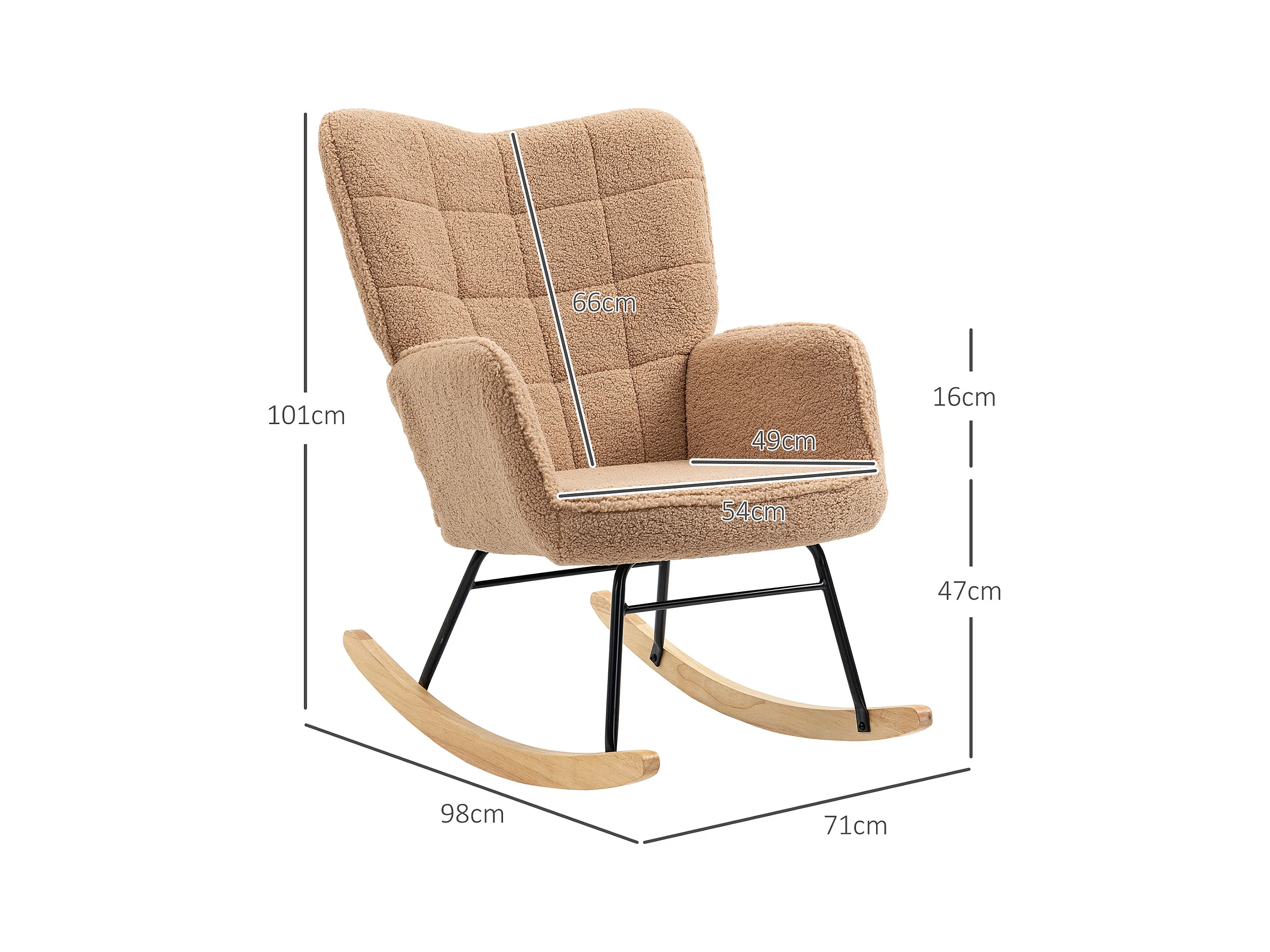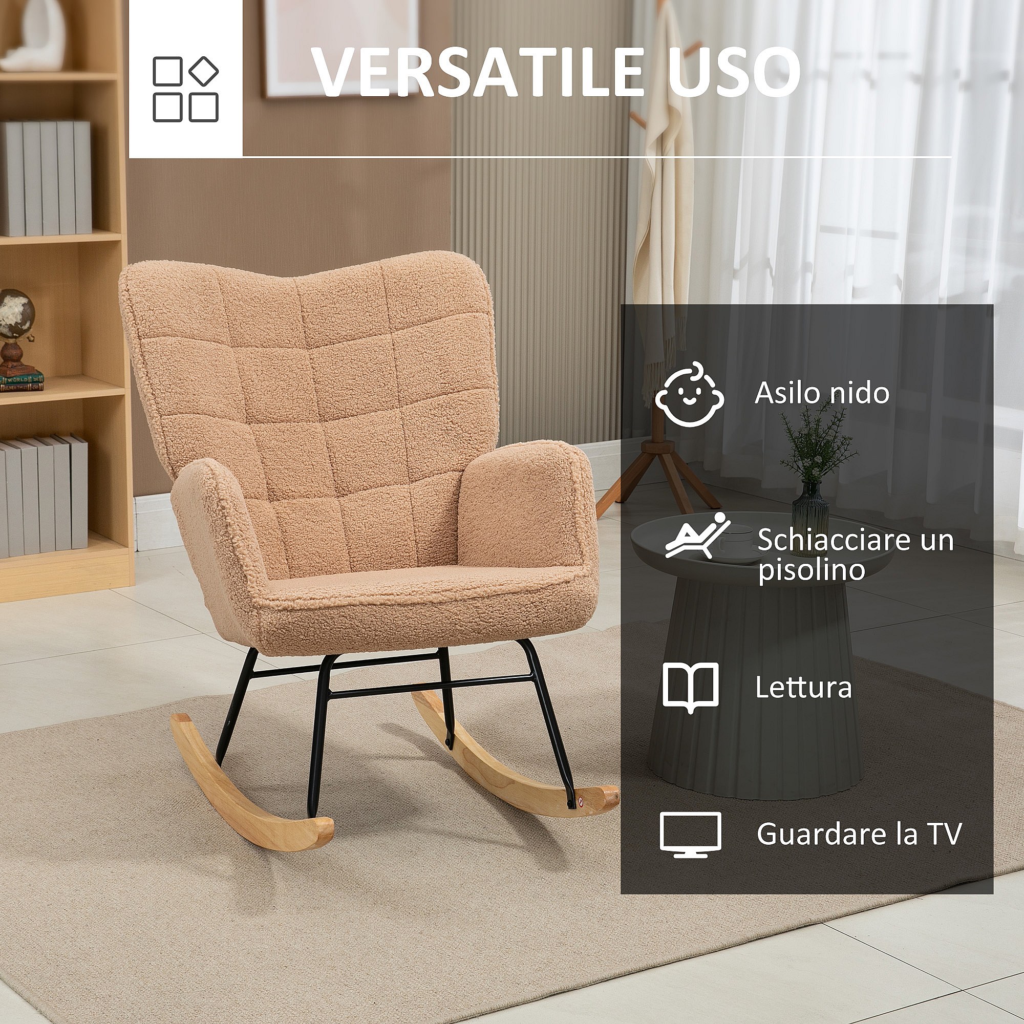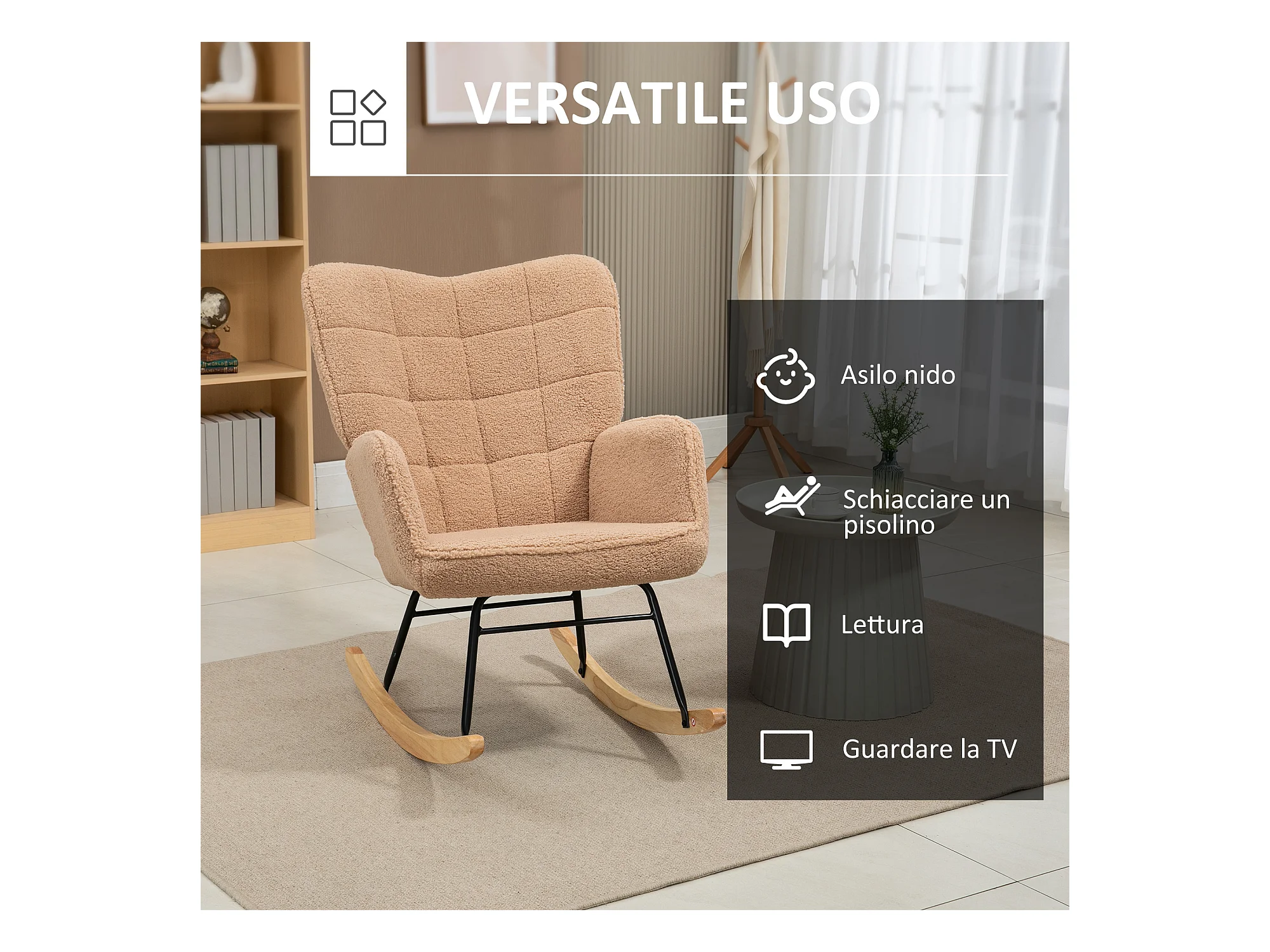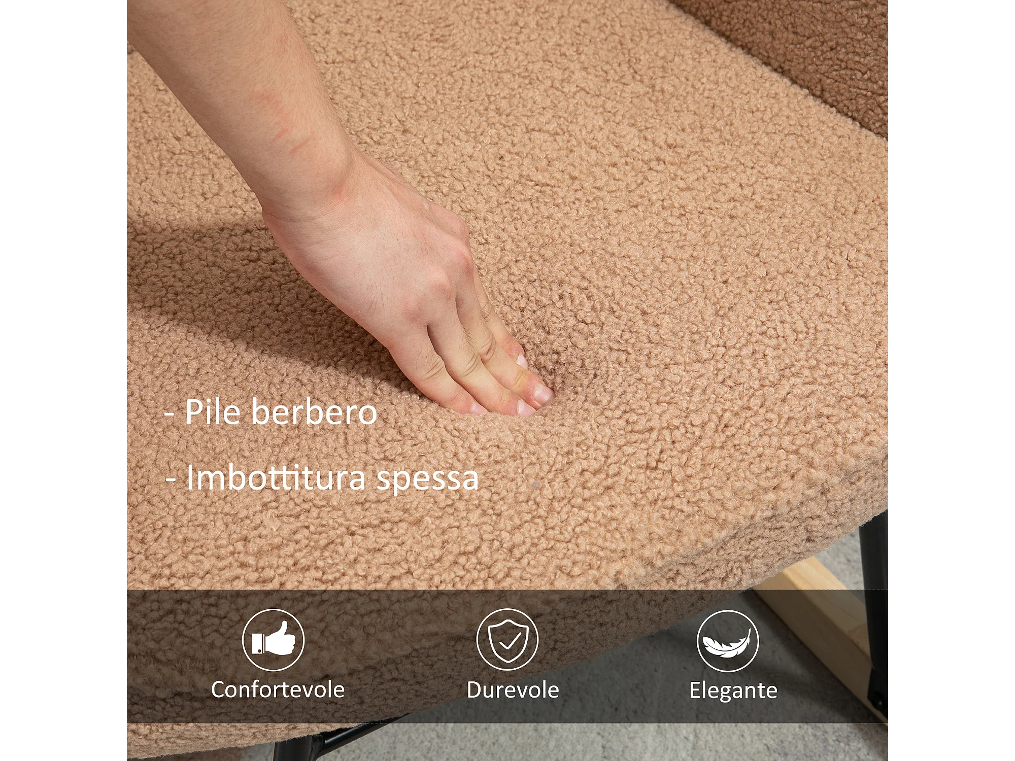 Poltrona a dondolo imbottita bouclé in legno e acciaio marrone
