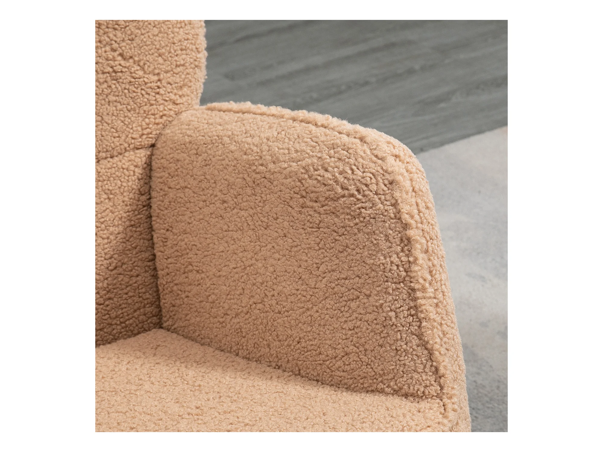 Sedia a dondolo in velluto bouclé marrone, sedia a dondolo con braccioli