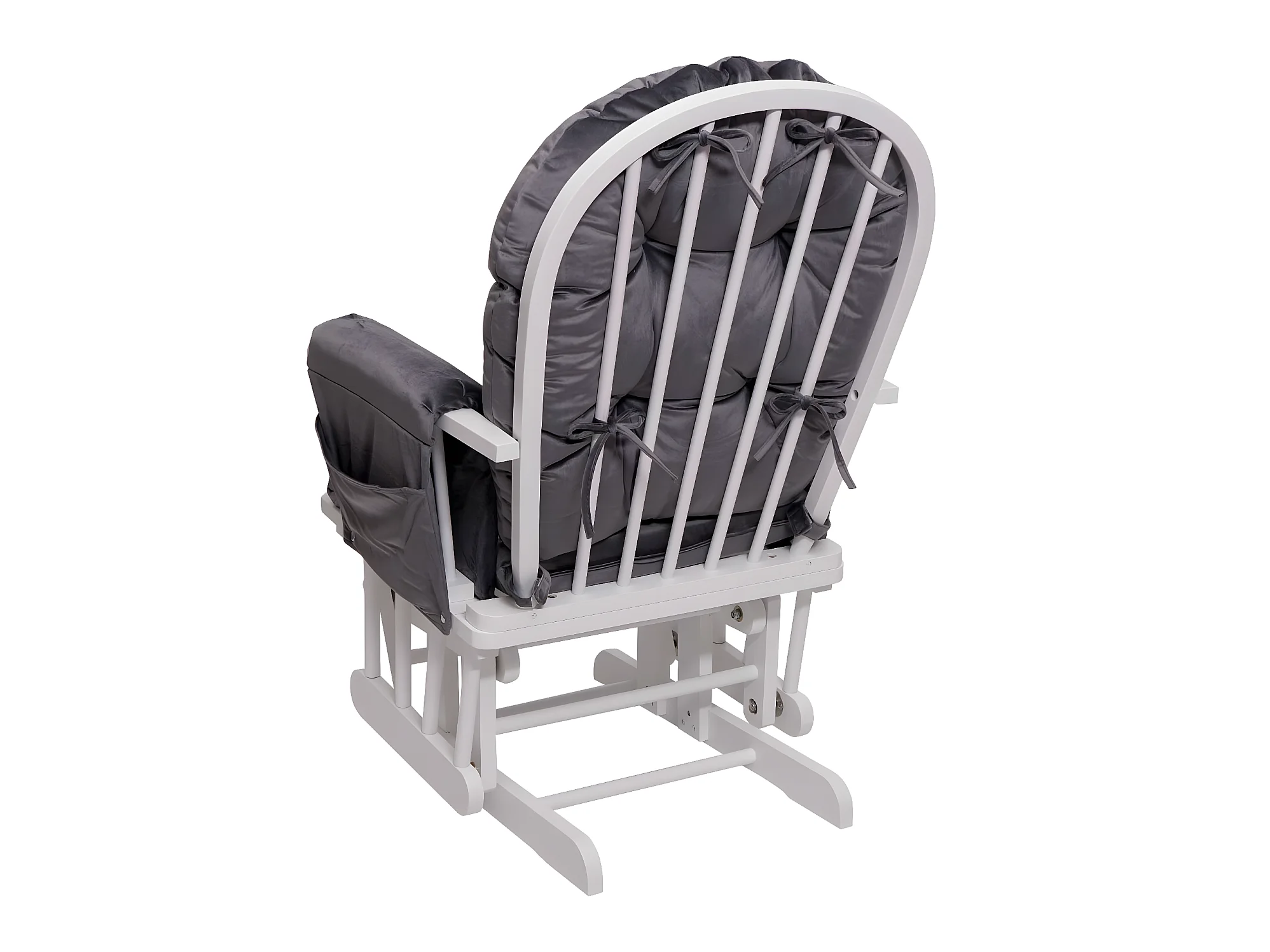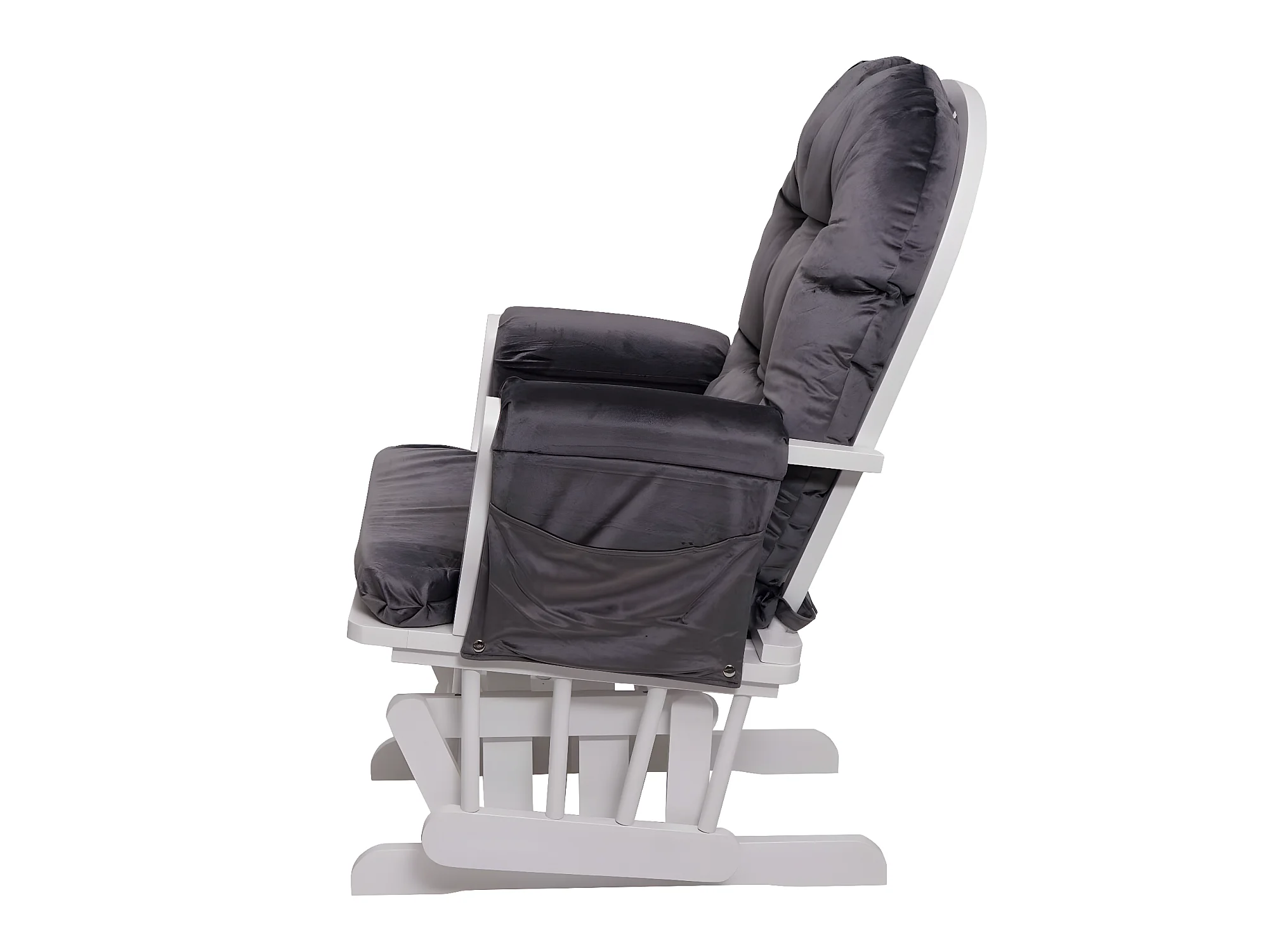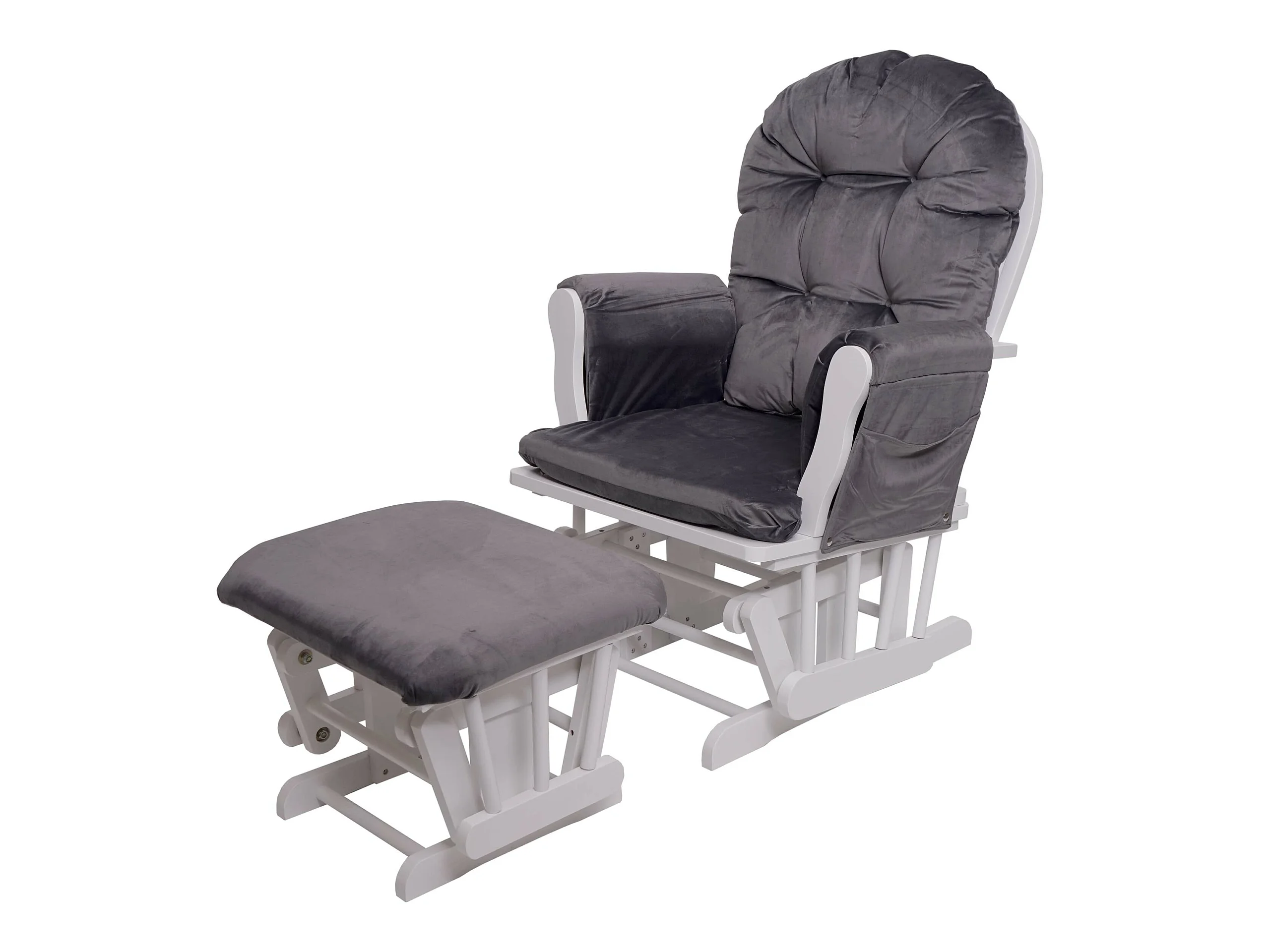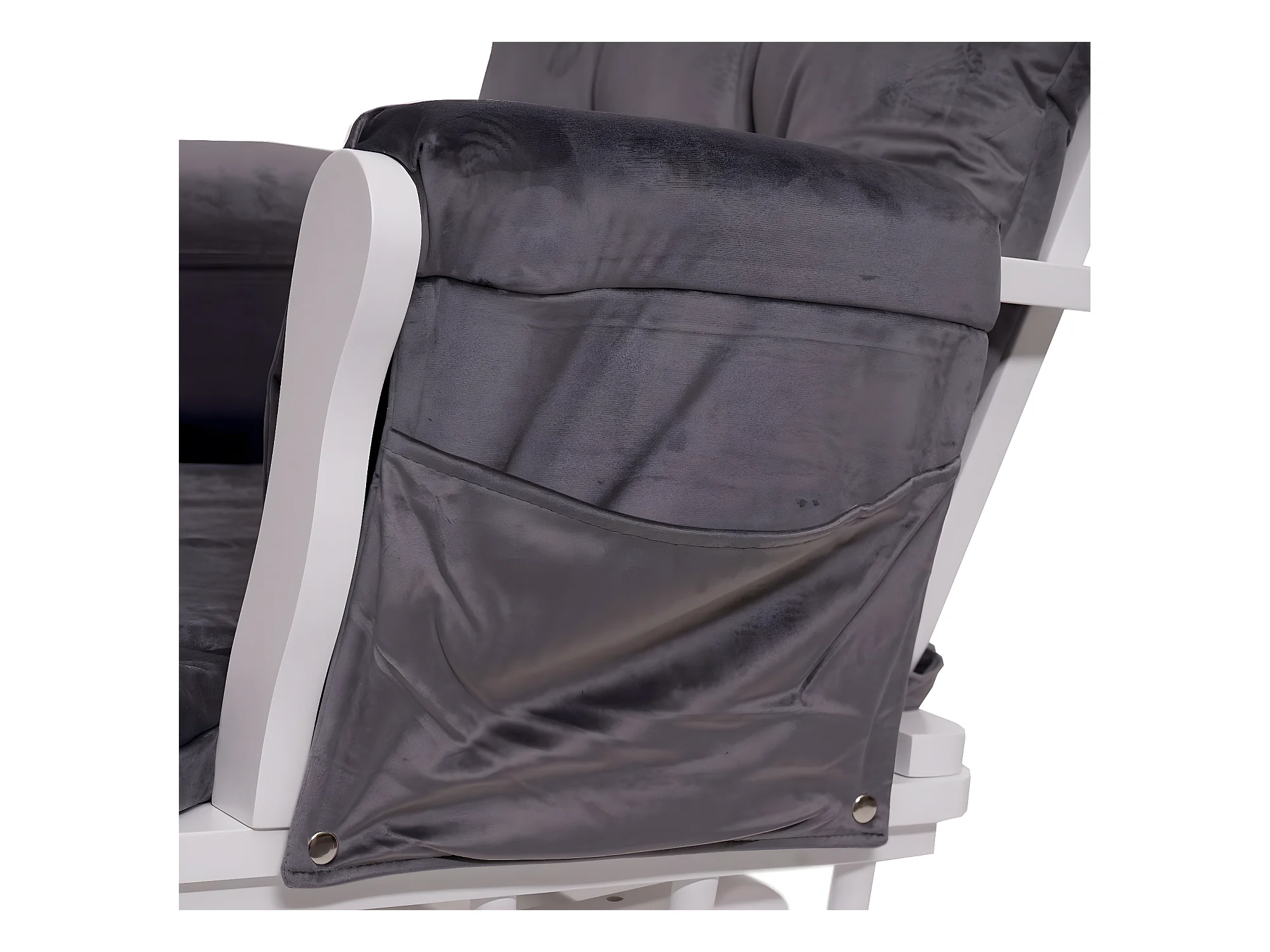 Poltrona a dondolo MCW-C76 legno della gomma velluto con poggiapiedi bianco grigio