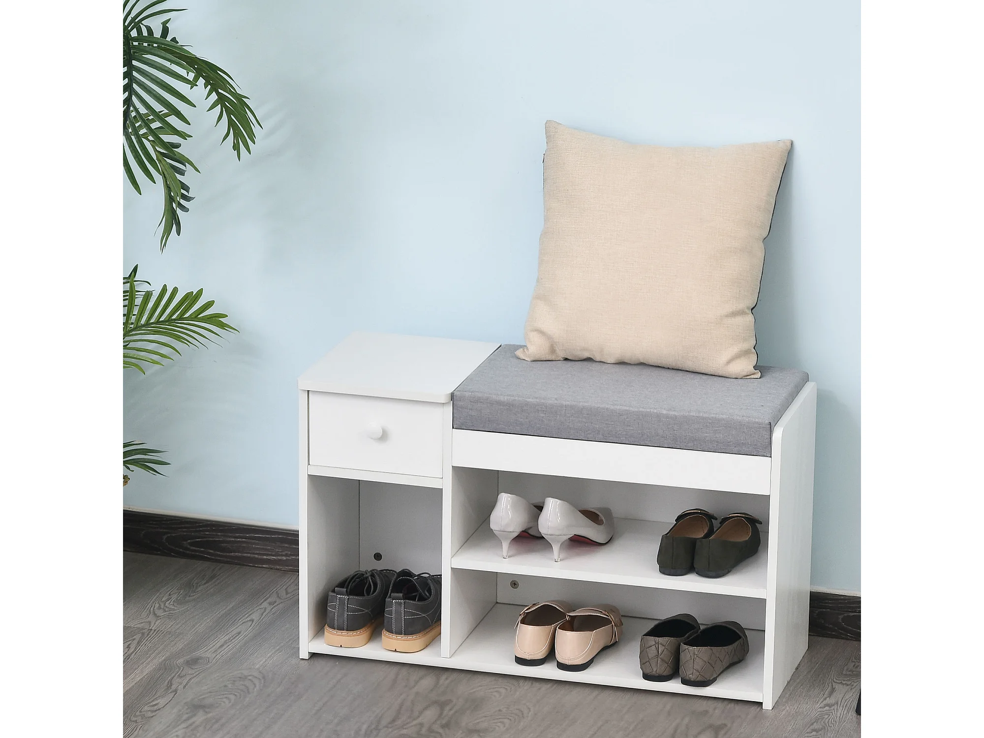 Panca scarpiera salvaspazio con cuscino per 8 paia di scarpe bianco