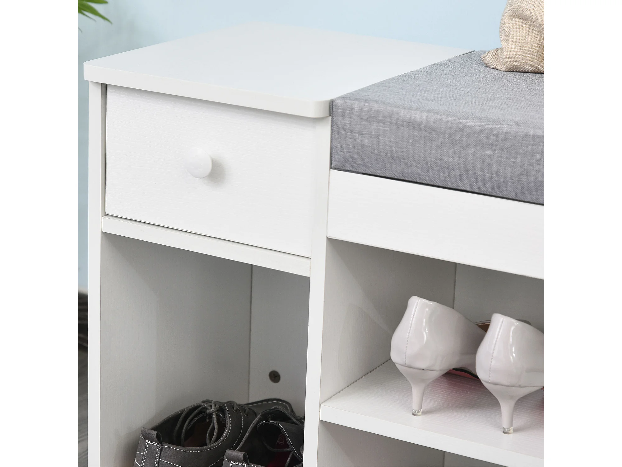 Panca scarpiera con ripiano interno regolabile bianco e grigio