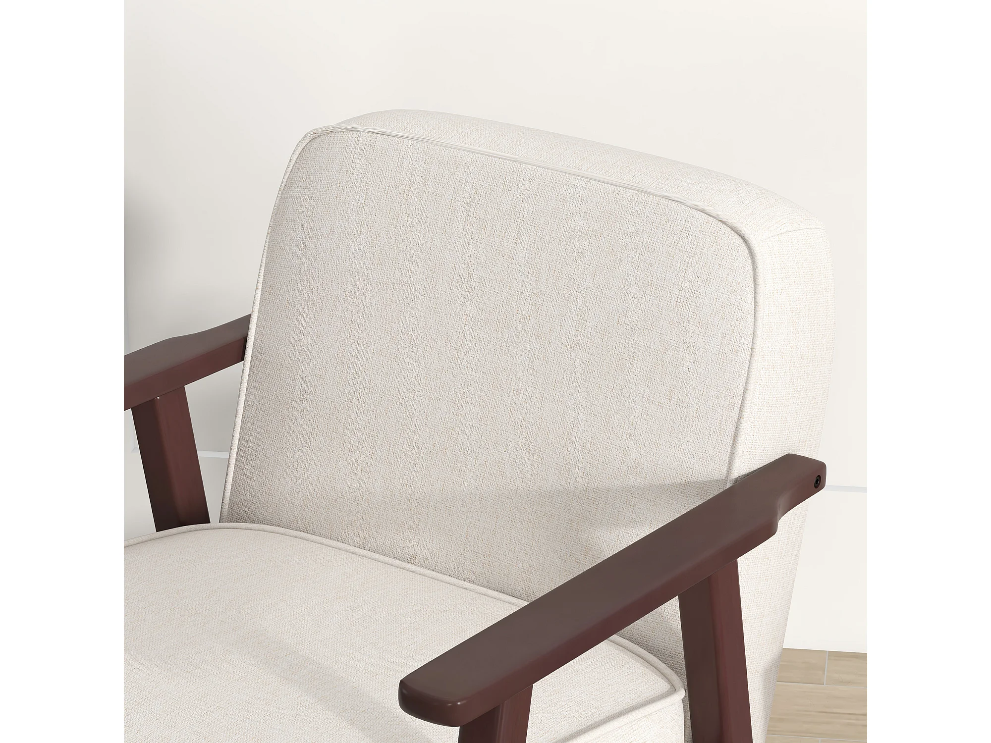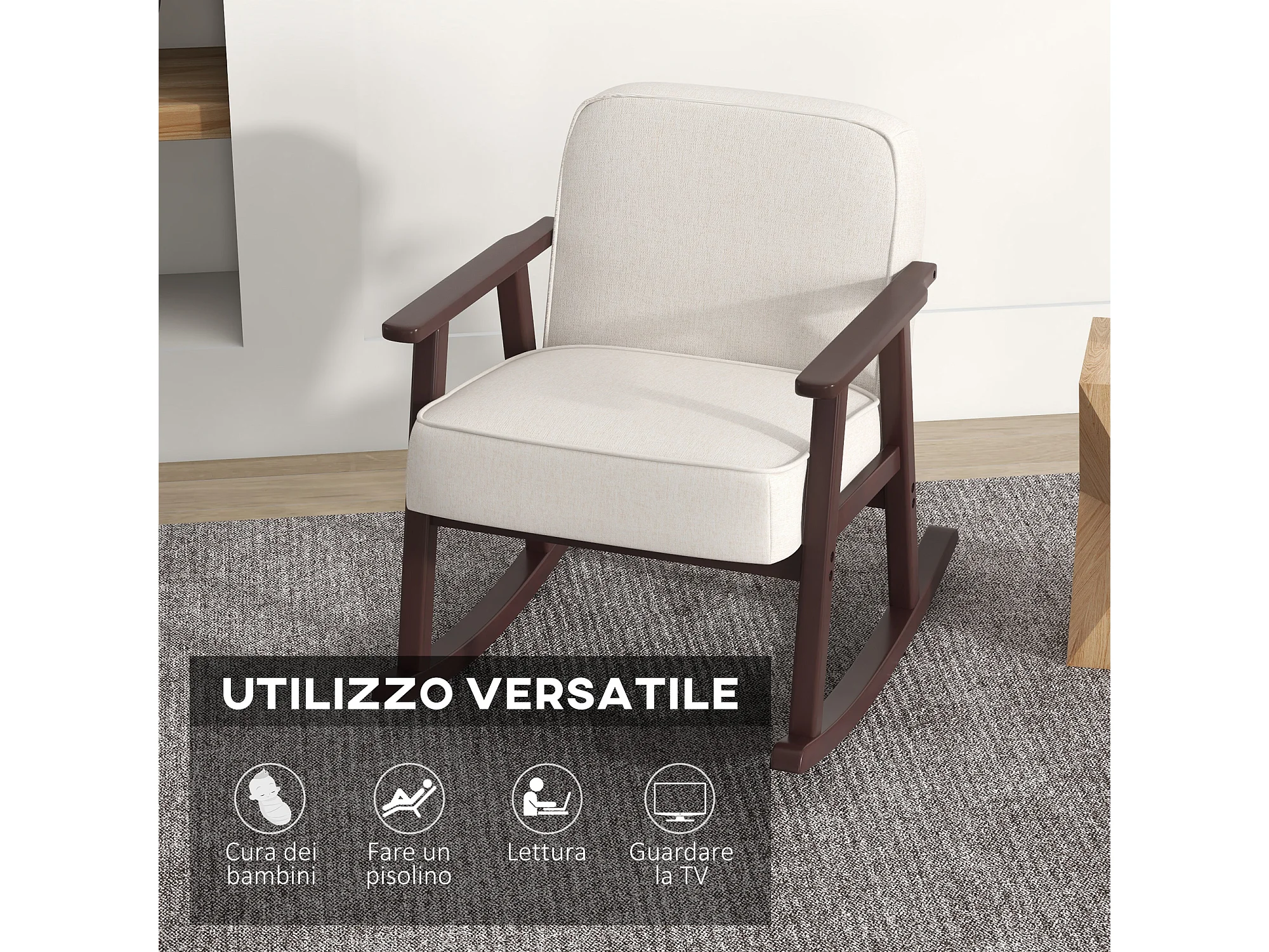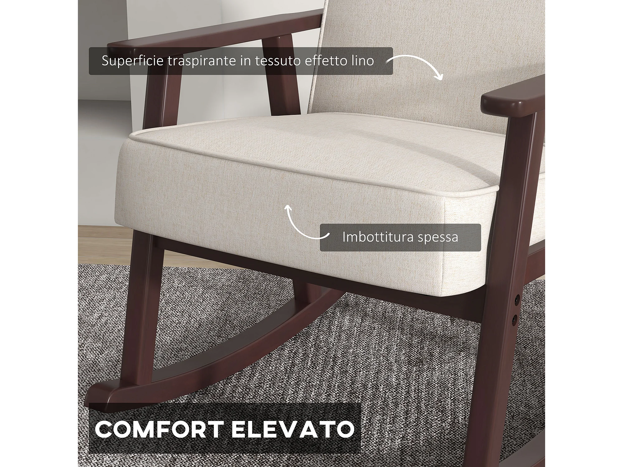 Poltrona Gambe a Dondolo in Legno di Hevea Crema in Tessuto