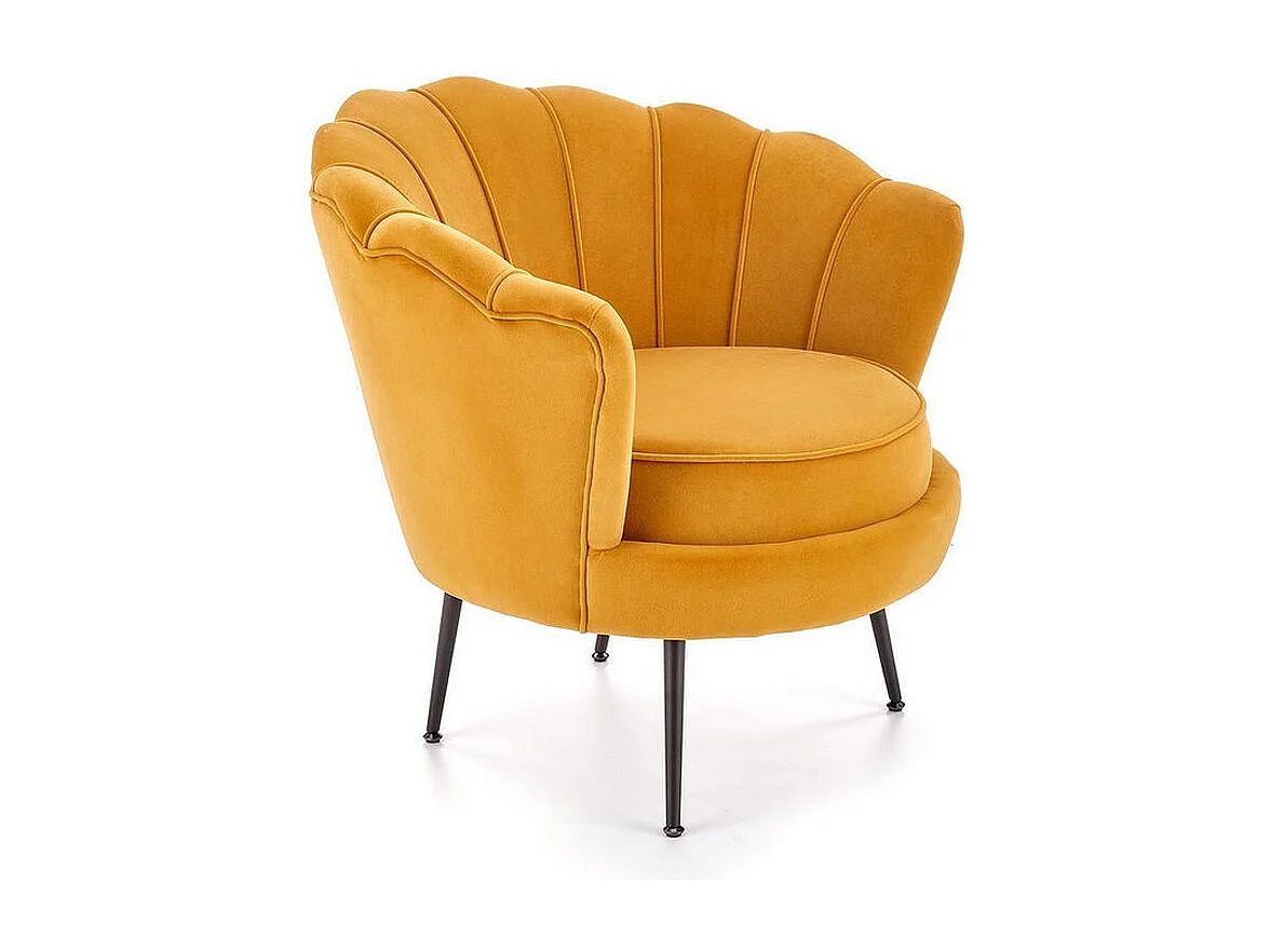 Poltrona a guscio in velluto giallo senape con gambe in metallo nero CAPRICA 2