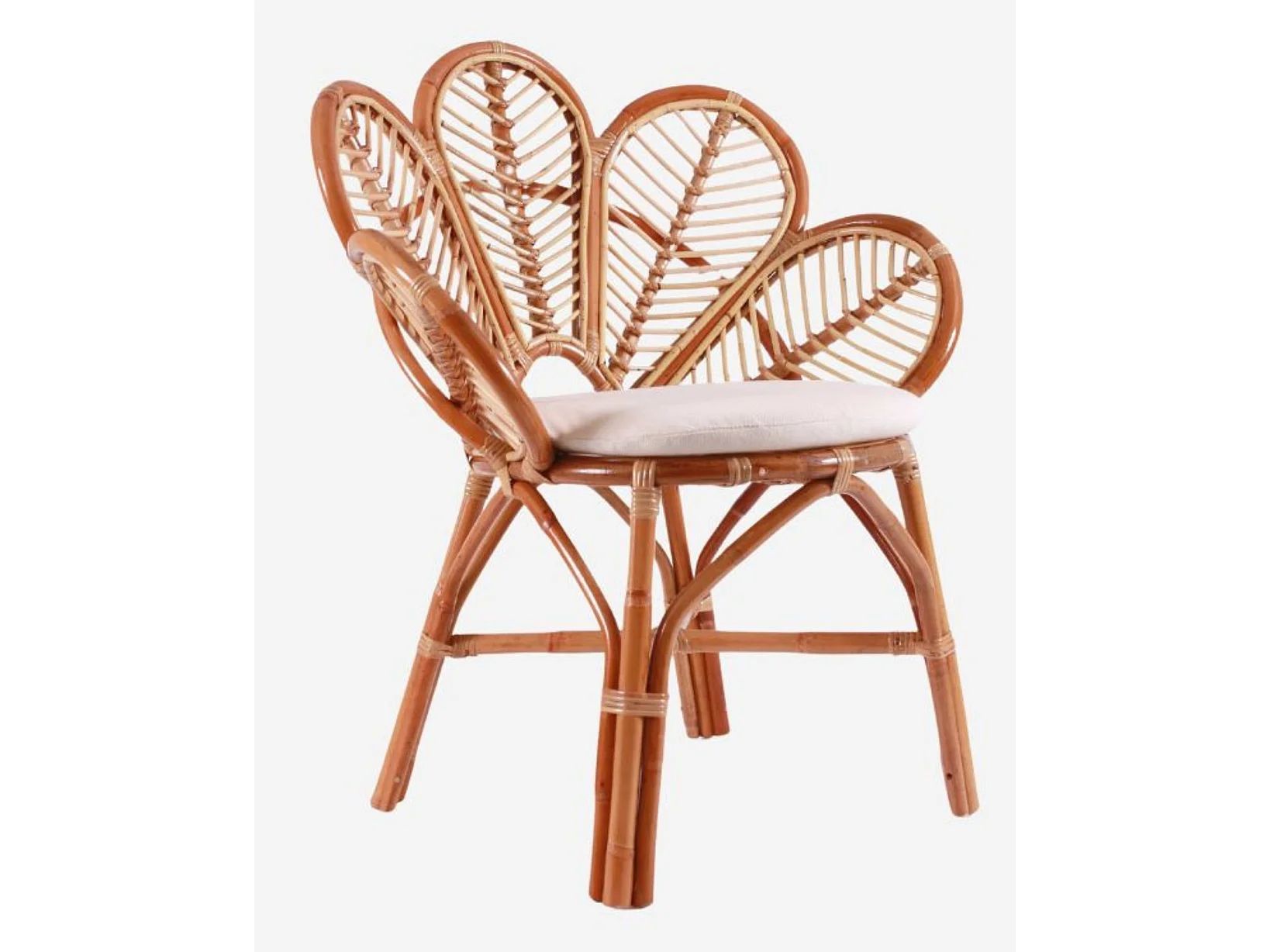 Poltrona in rattan naturale con cuscino bianco - Eloa