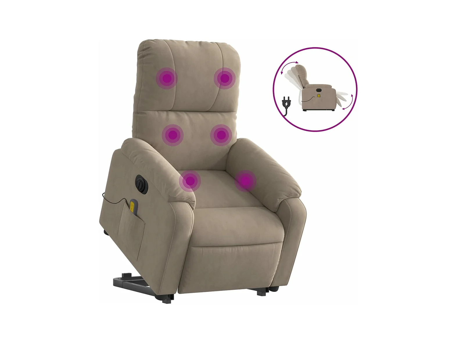 Poltrona a Rialzo Reclinabile Massaggiante Tortora Microfibra