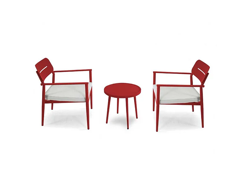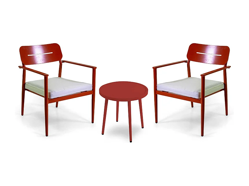 Poltrona alluminio Ibiza 2 pezzi con tavolino tondo rosso terracotta