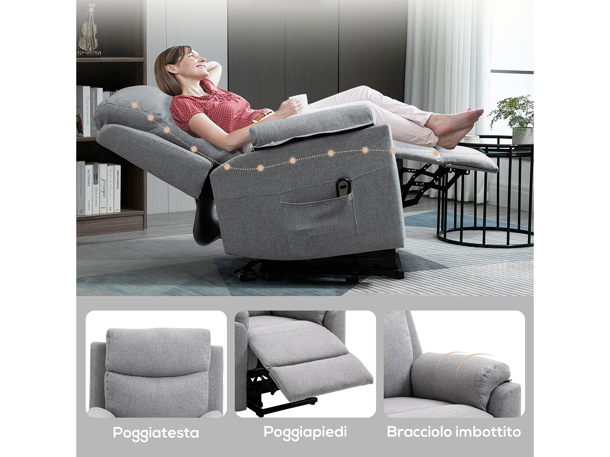 Poltrona massaggiante alzapersona con telecomando e poggiapiedi