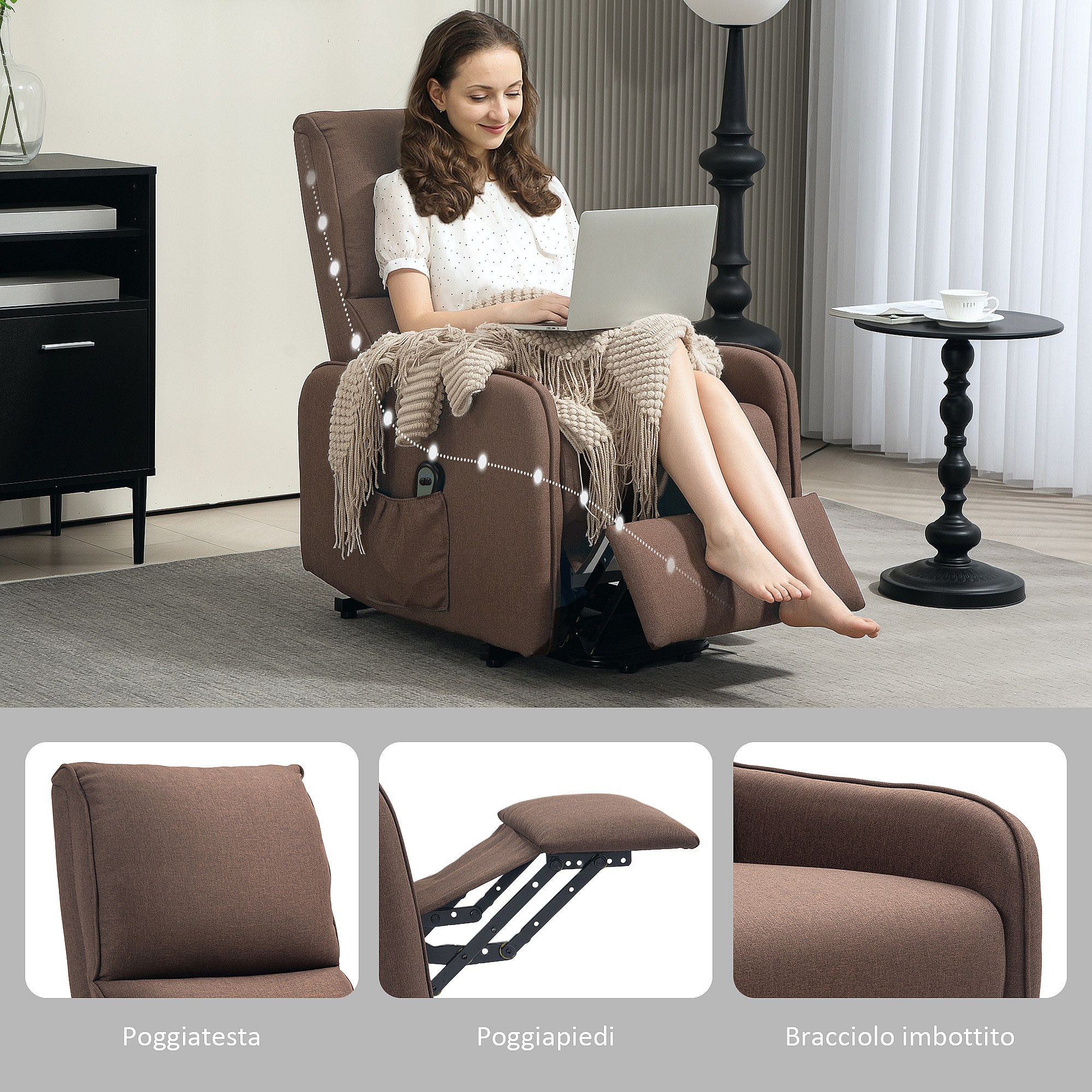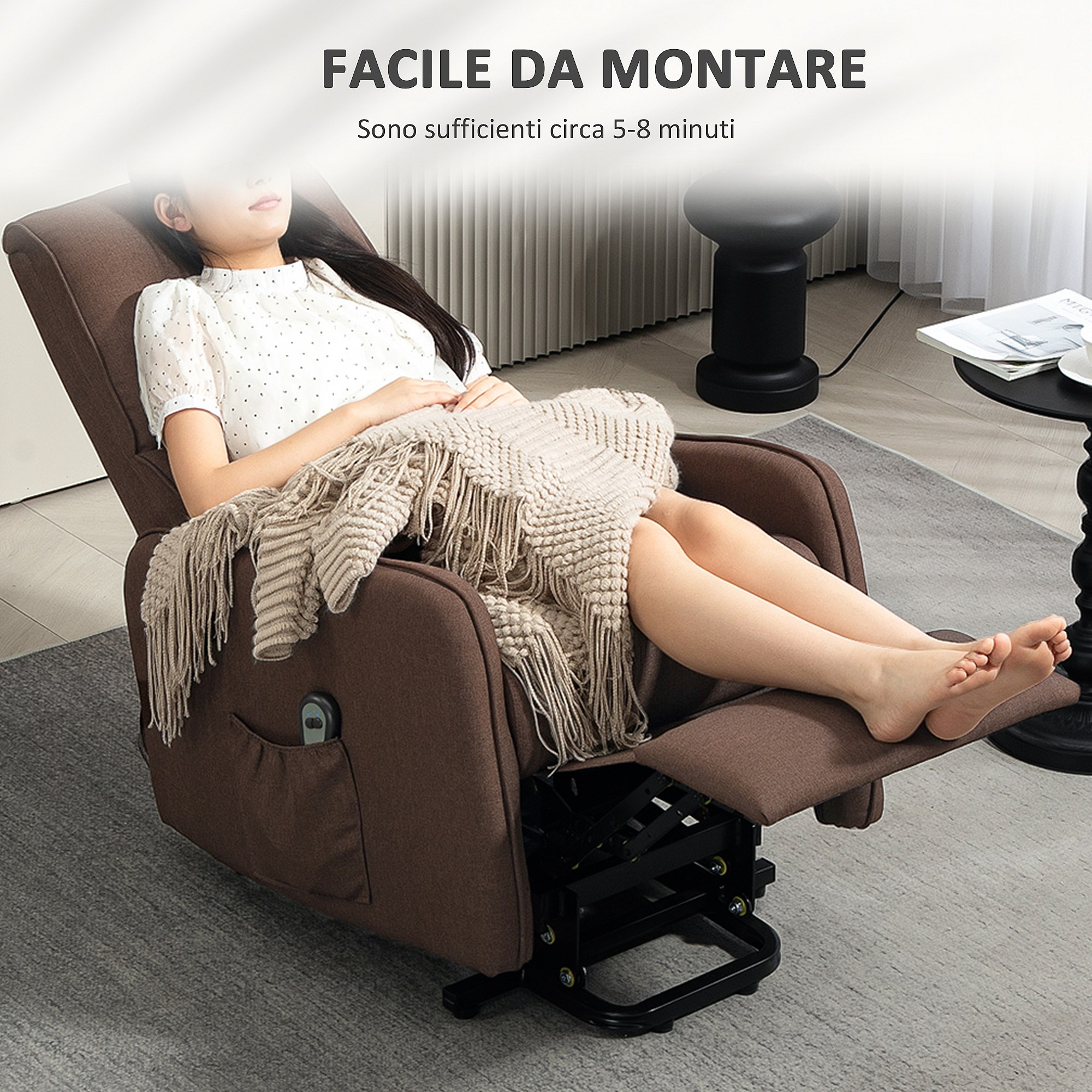 Poltrona alzapersona elettrica e reclinabile con telecomando marrone